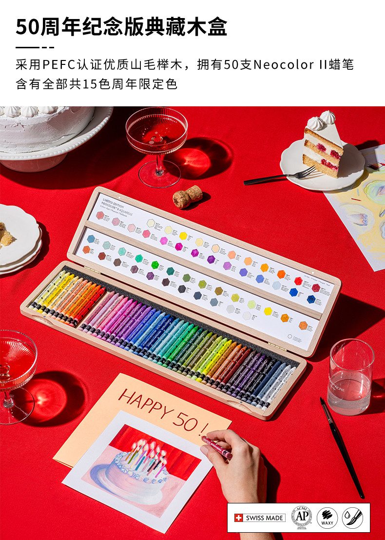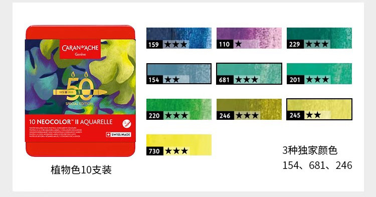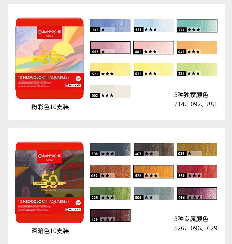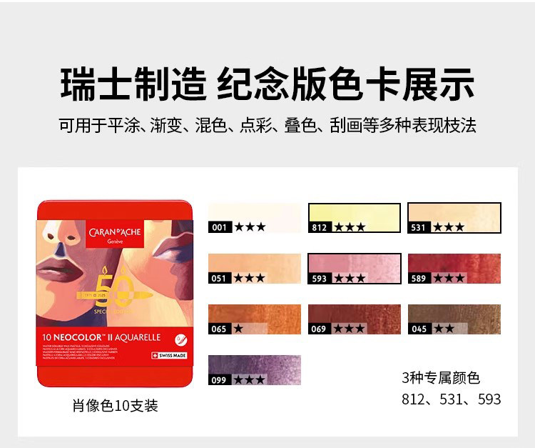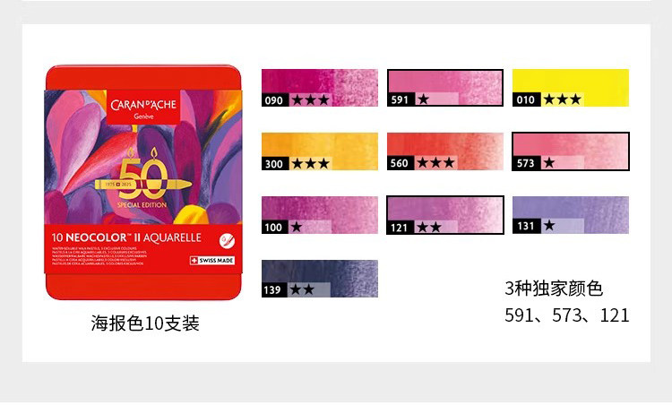 [Neocolorⅱ50Th Anniversary Limited Edition]Caran D'Ache Water-Soluble Crayons Professional Grade Imported Children's Art Student Painting Pens Toddler Oil Pastel Set