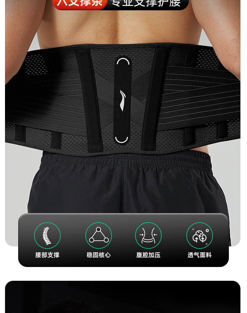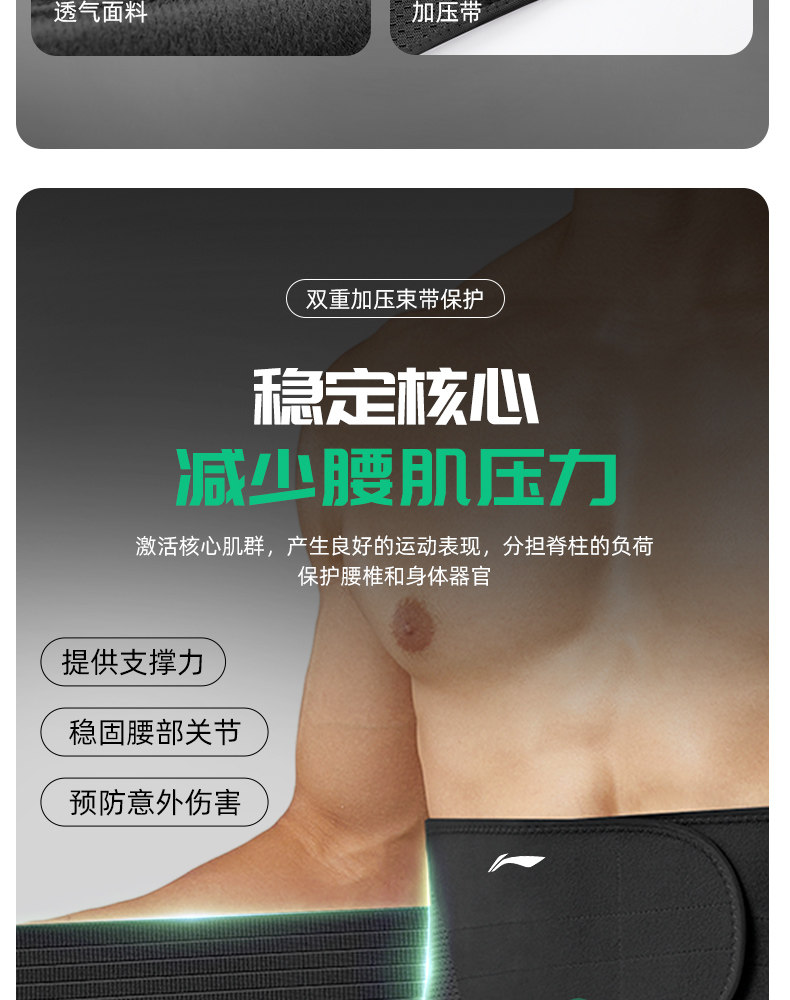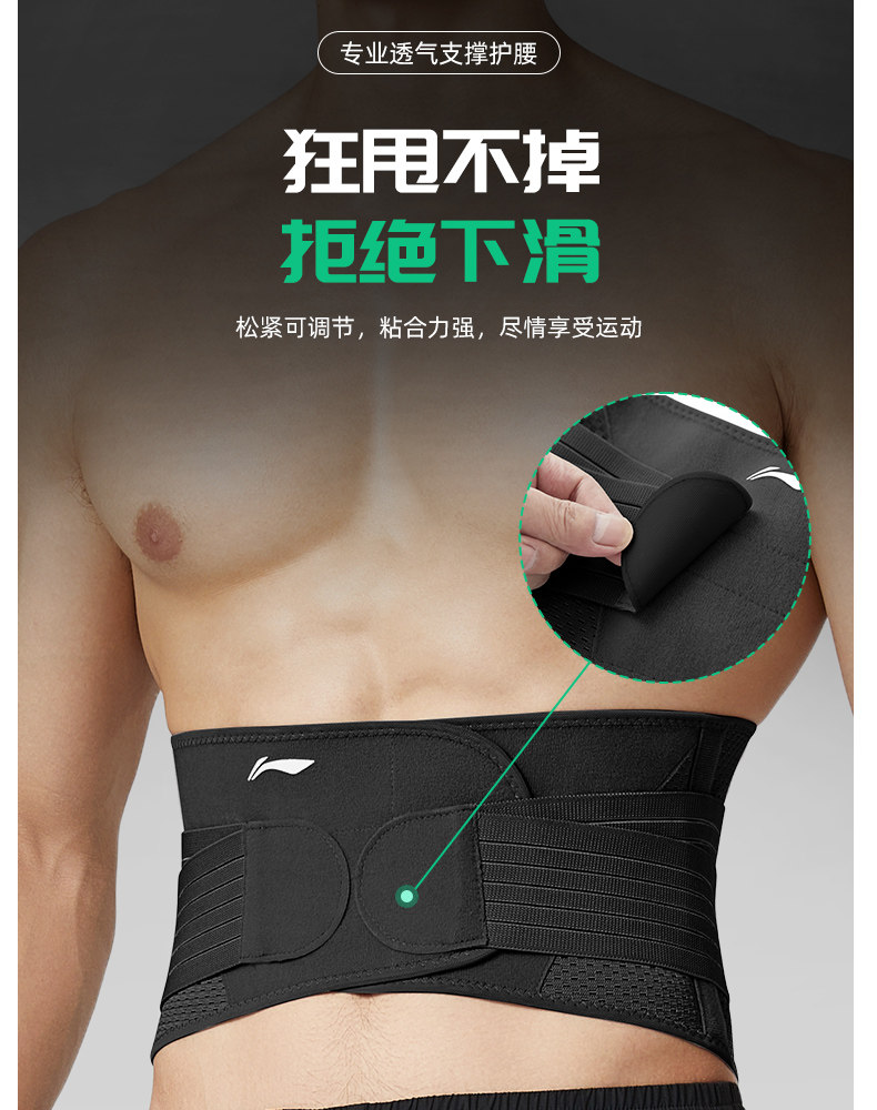 Li-Ning Sports Waist Support Belt for Men, Specialized for Training, Fitness, Running, Waist Belt for Lumbar Disc Strain, Basketball, Badminton