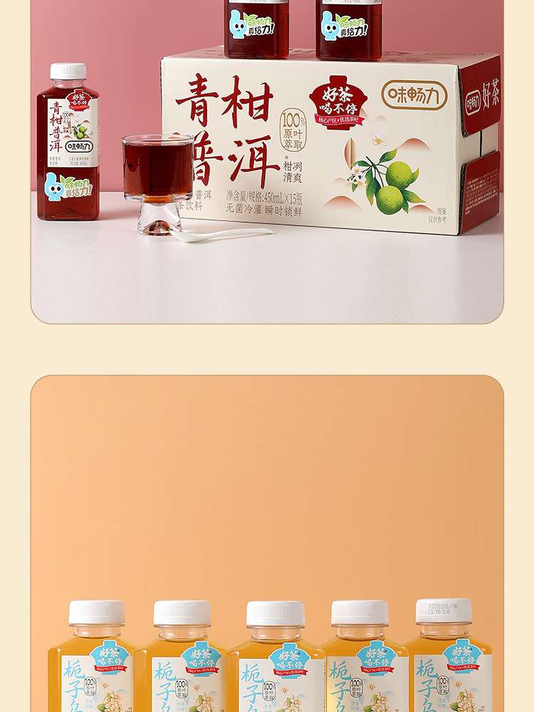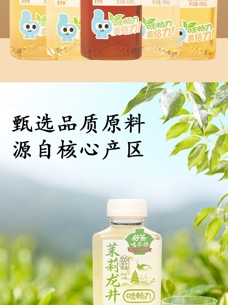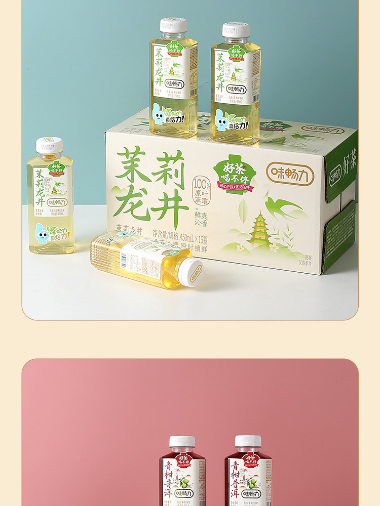 Weichangli Sugar-Free Tea Drink Jasmine Longjing Oolong Pu'Er Tea 450ml*15 Bottles Whole Box 0 Sugar 0 Fat 0 Calories