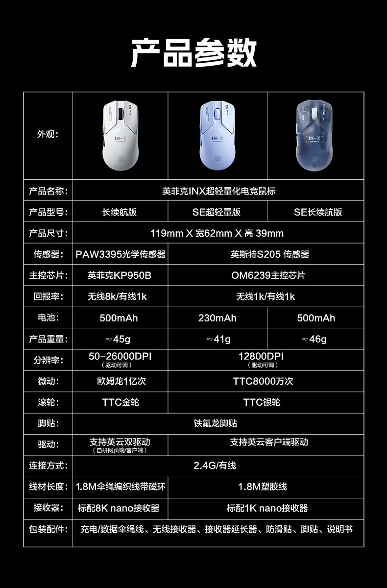 Inphic Inx Ultra-Lightweight Wireless Mouse Wired Dual-Mode Gaming Desktop Computer Notebook 3395