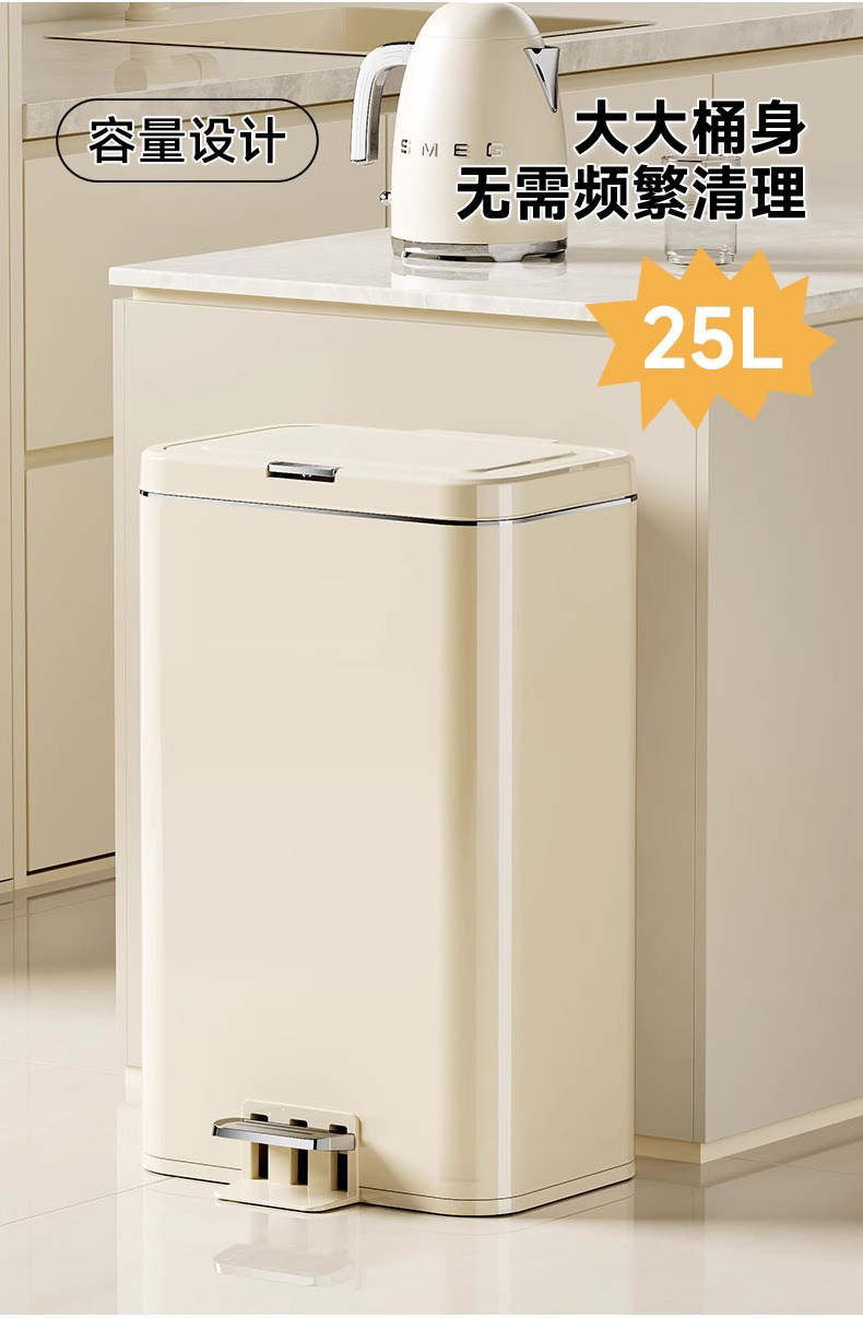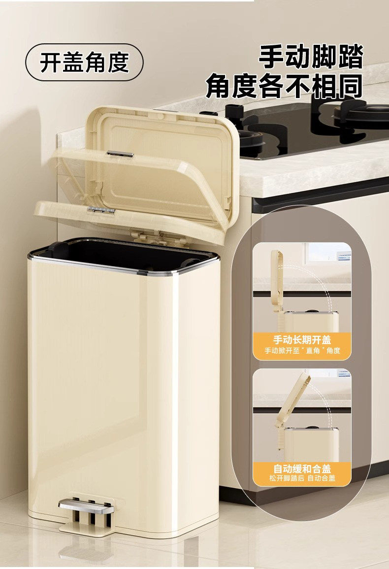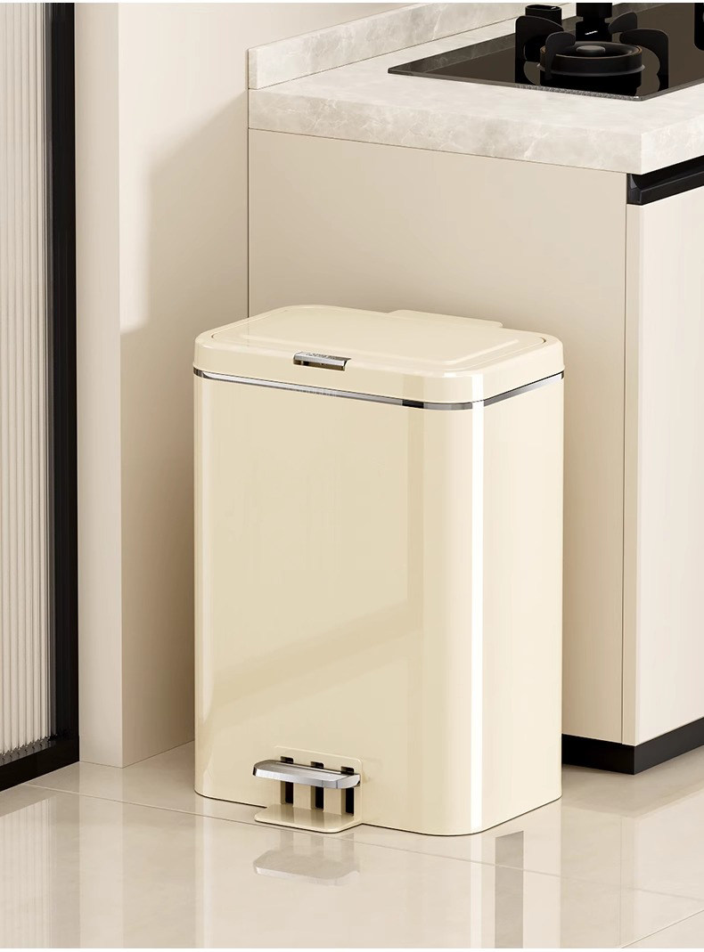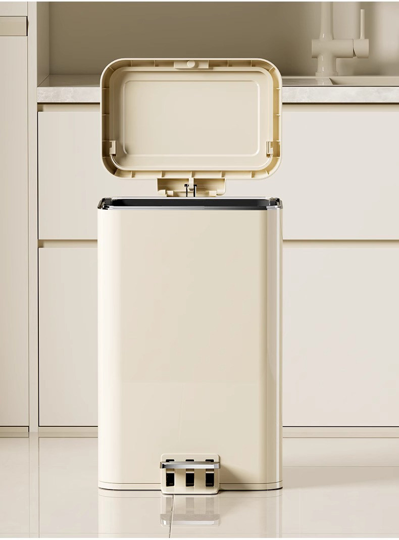 Cream-Colored Trash Can for Home Use in Living Room, Bedroom, Bathroom, Toilet, Hand-Press and Foot-Pedal Type, Large Capacity, with Lid