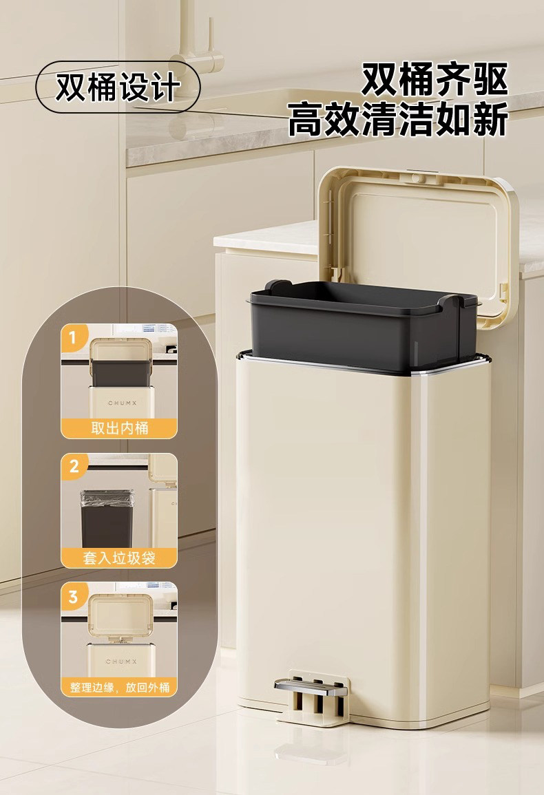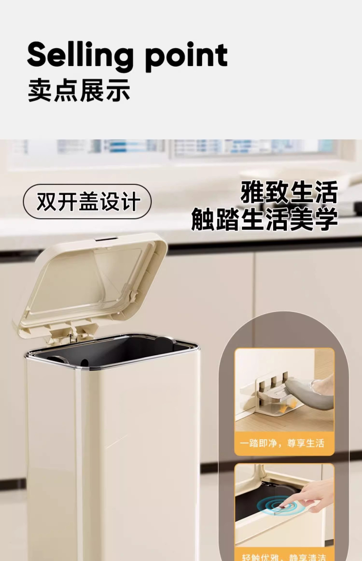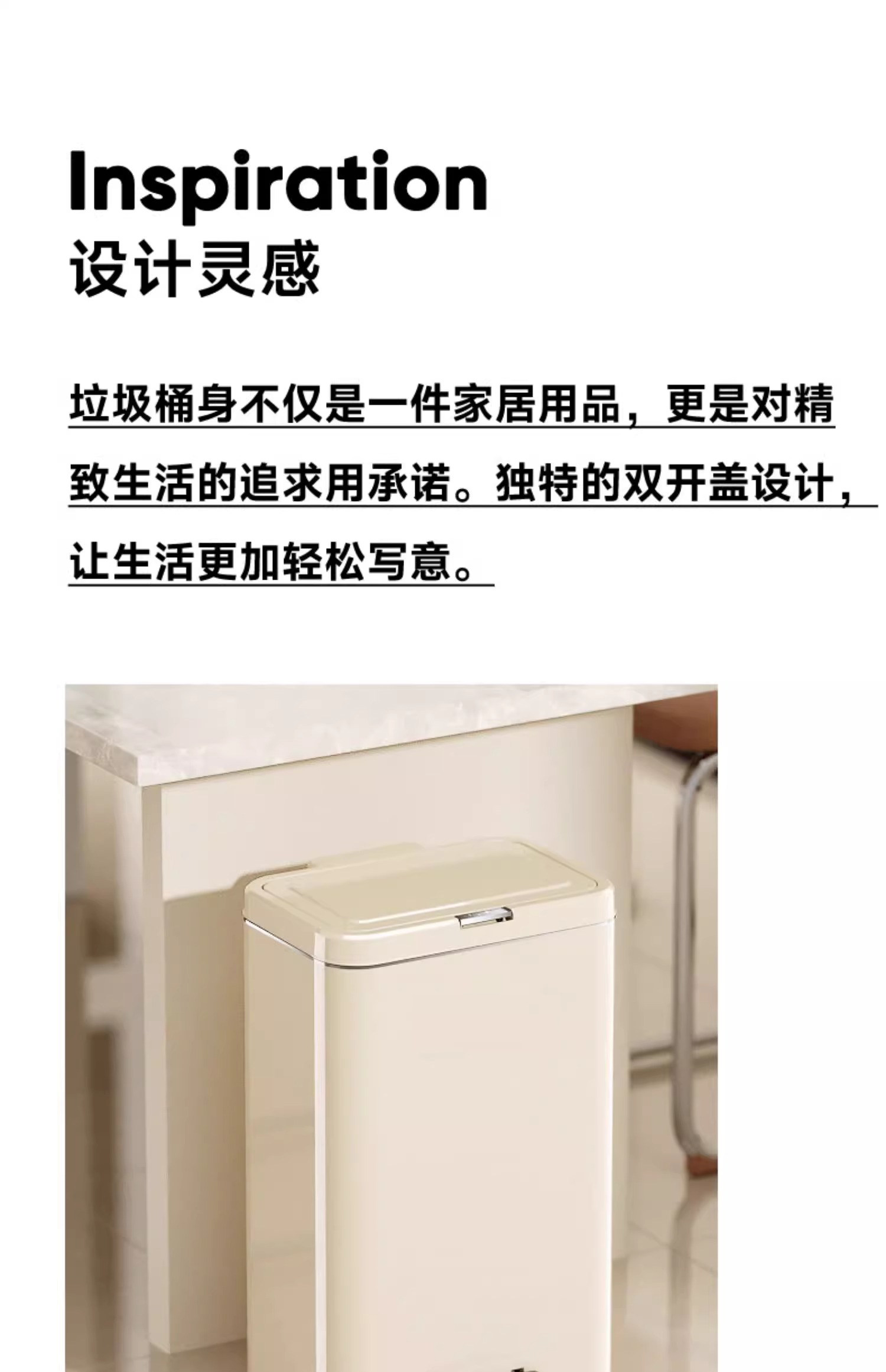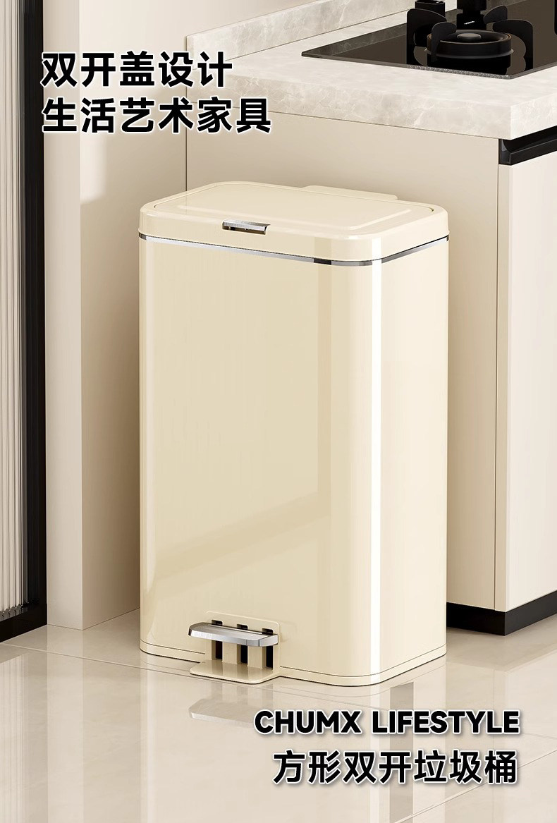 Cream-Colored Trash Can for Home Use in Living Room, Bedroom, Bathroom, Toilet, Hand-Press and Foot-Pedal Type, Large Capacity, with Lid