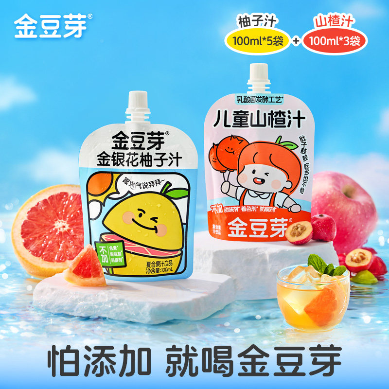5 Bags of Golden Bean Sprouts Honeysuckle and Pomelo Juice + 3 Bags of Hawthorn Juice for Children