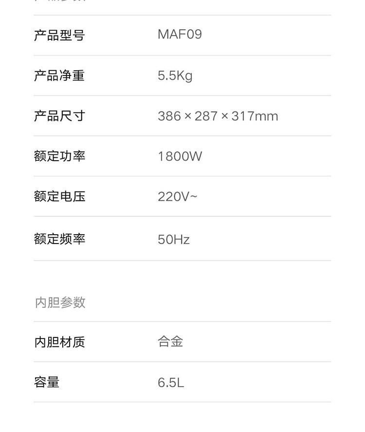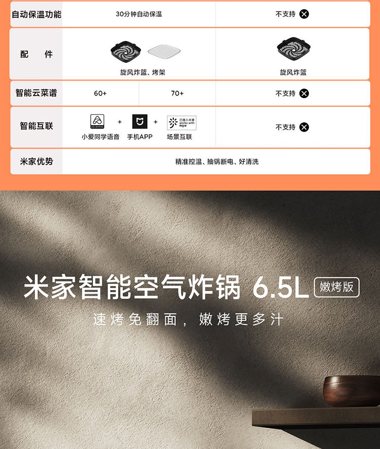 | Model | Mijia Smart Air Fryer 6.5L Tender Baked Version |