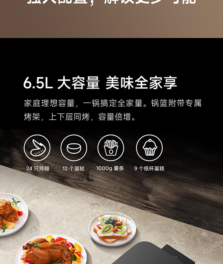 Xiaomi Mijia Smart Air Fryer 6.5L Tender Baked Version Home Large Capacity Visual Flip-Free High Temperature Skim
