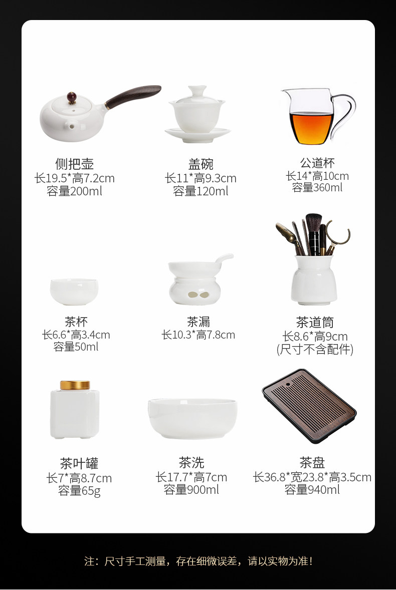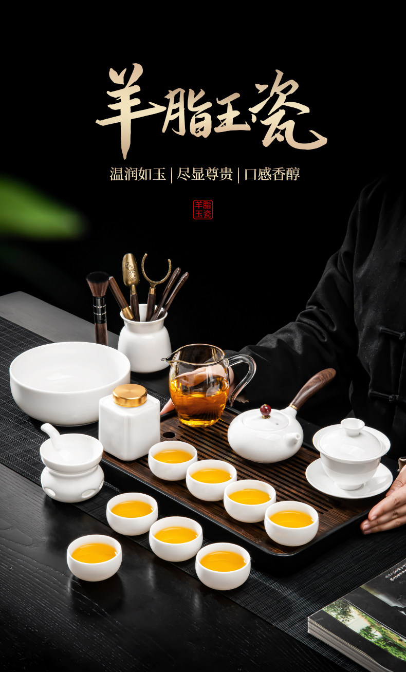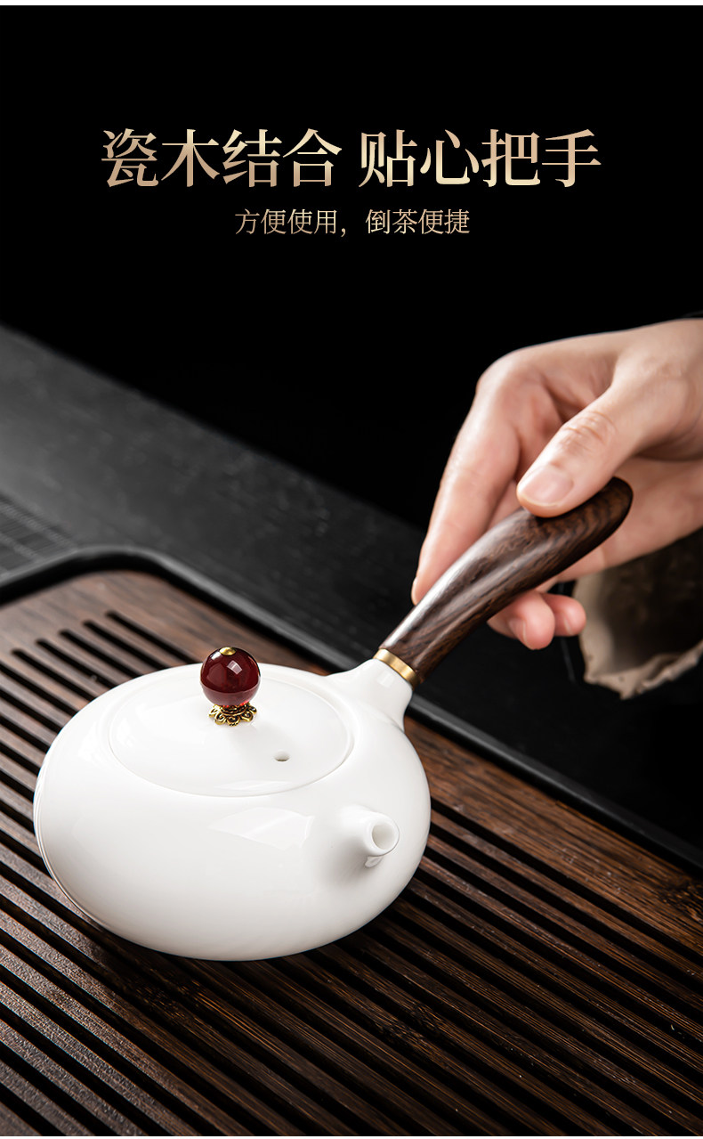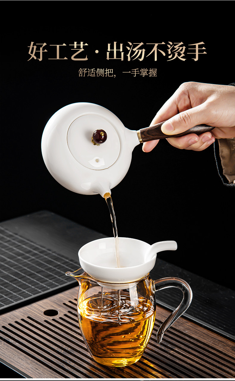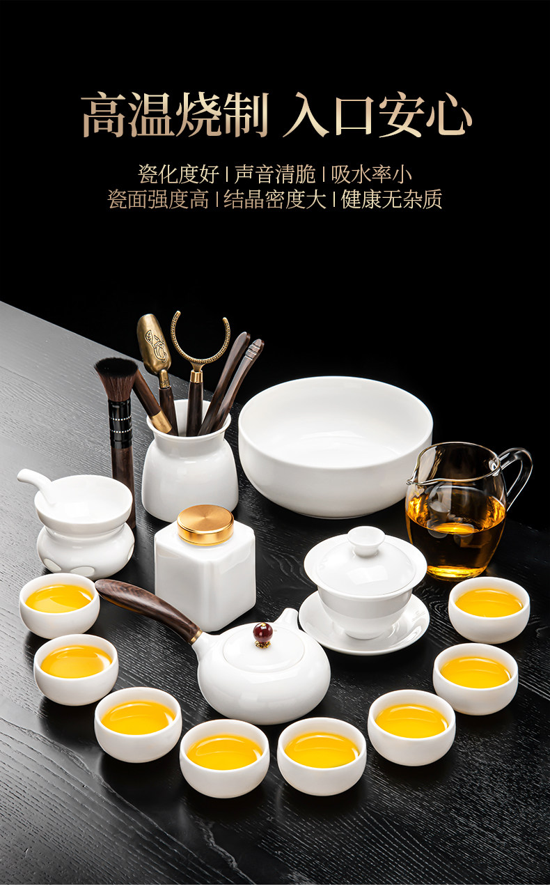 New Dehua White Jade Porcelain Kung Fu Tea Set for Home Use, Light Luxury High-End Side-Handle Teapot, Teacups, and Tea Tray