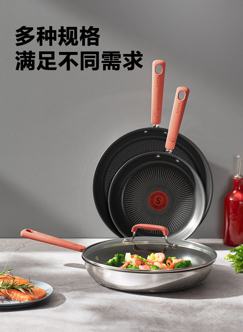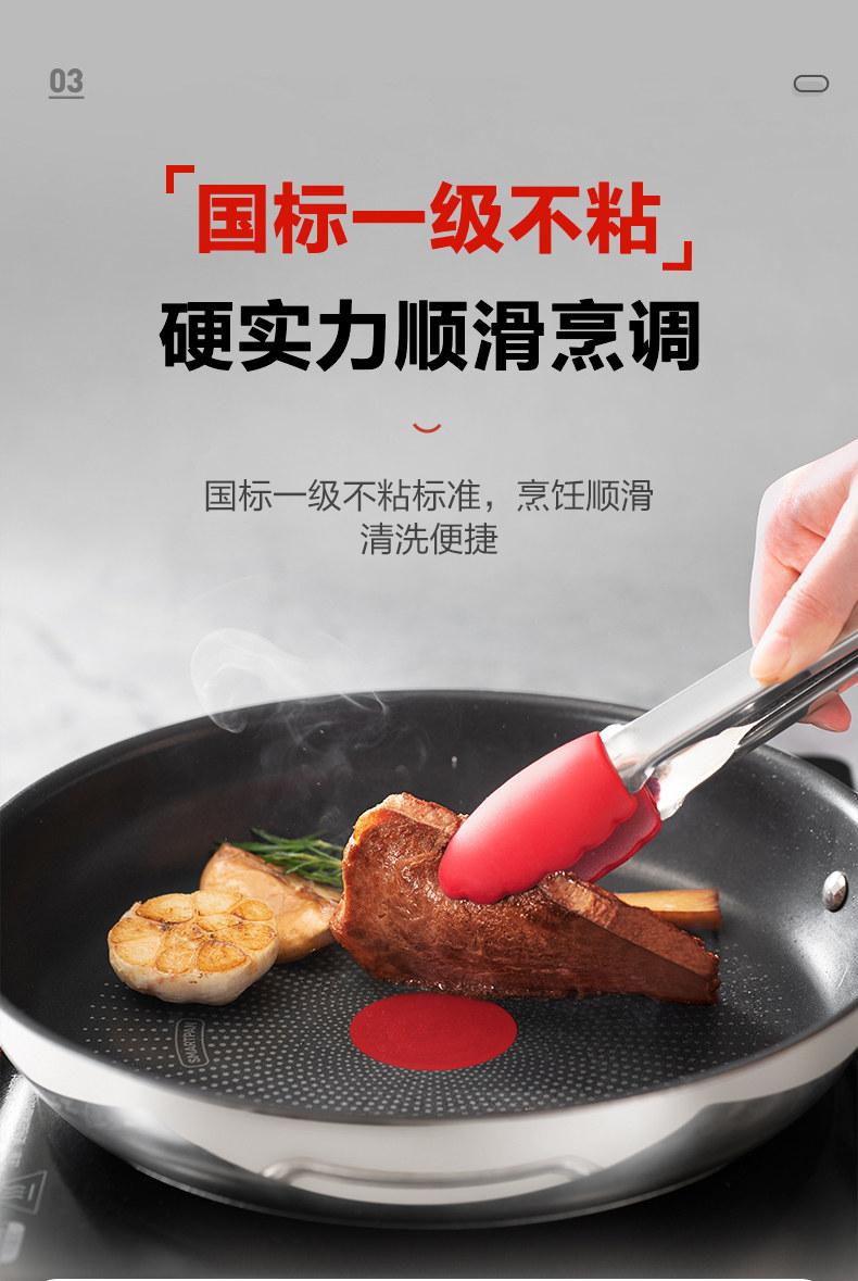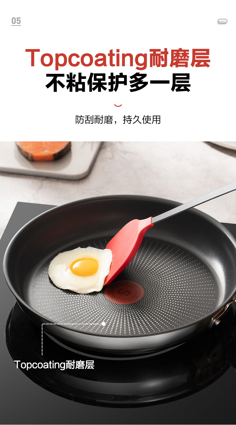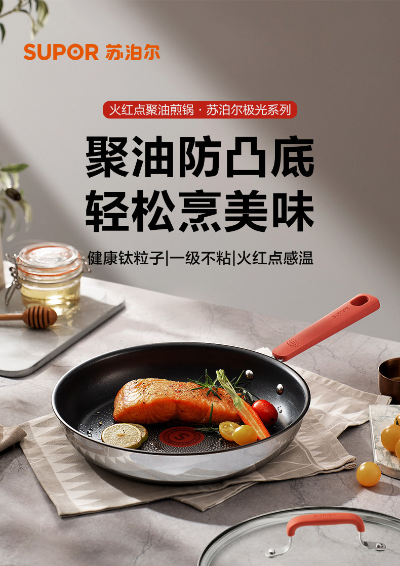 Supor Has a Titanium Non-Stick Frying Pan for Home Use, Steak Frying Pan, Stainless Steel Red Dot Oil-Collecting Pan, Special for Frying Eggs and Pancakes