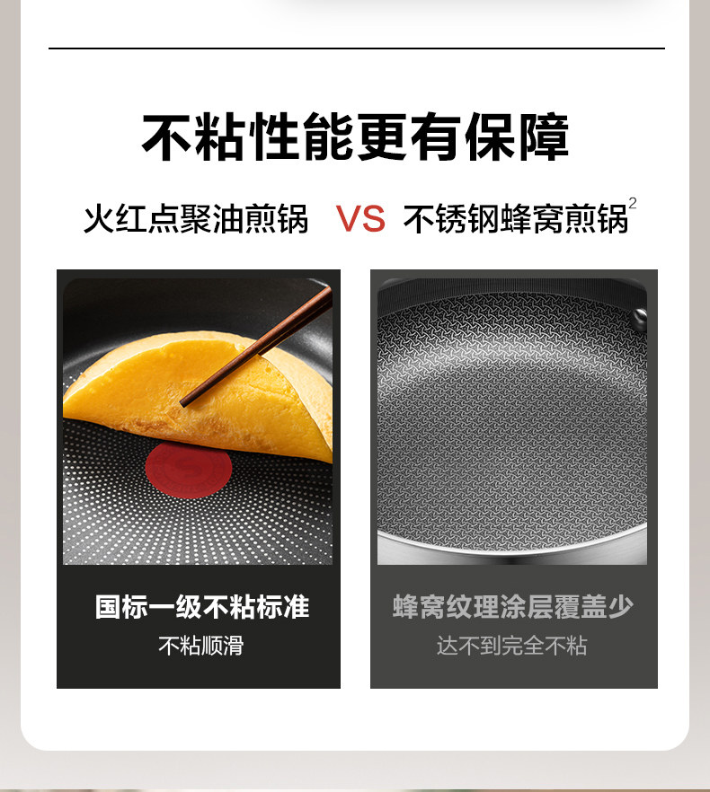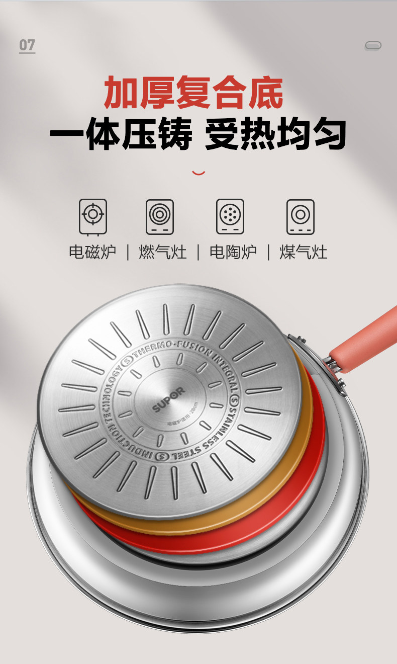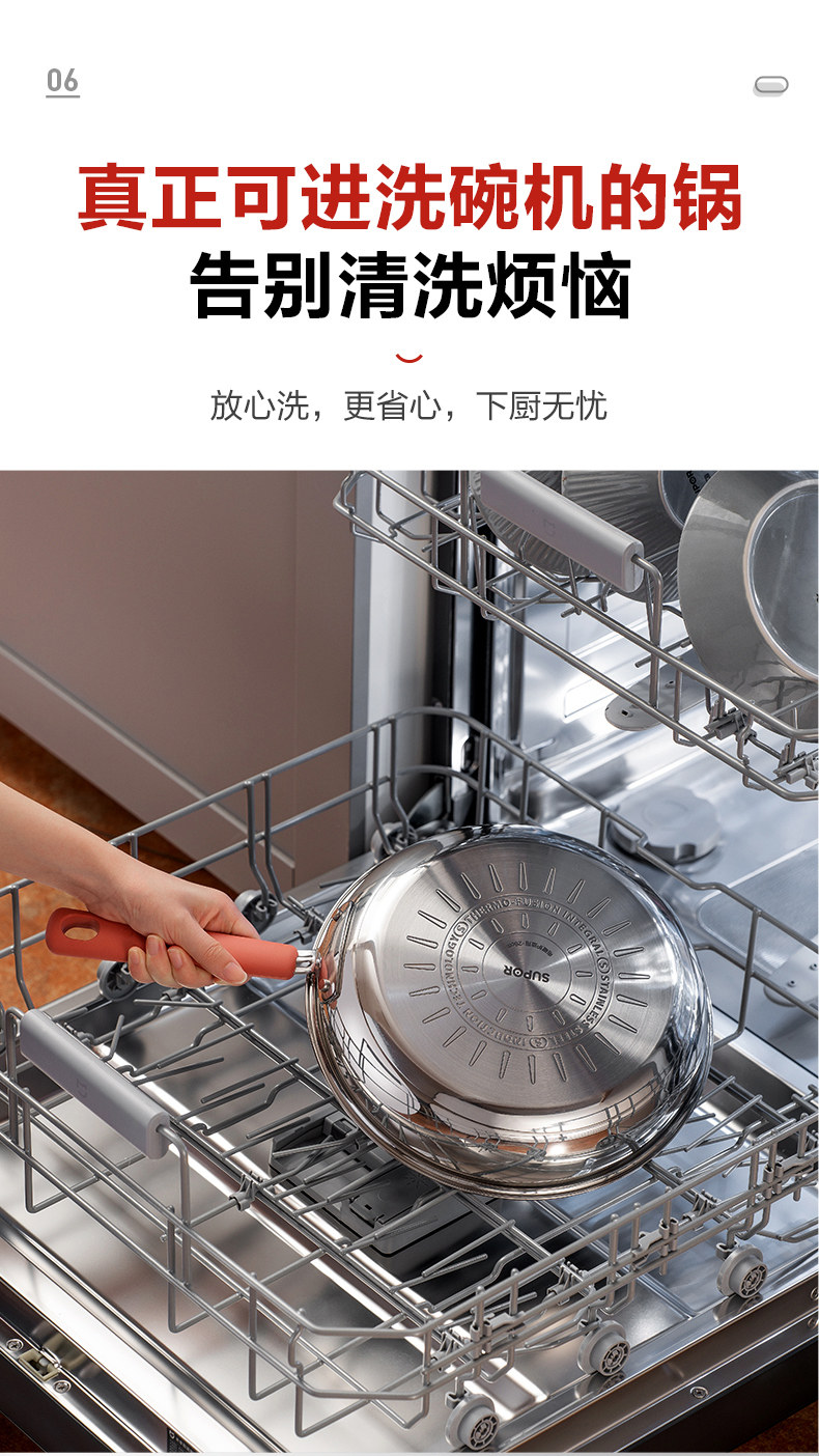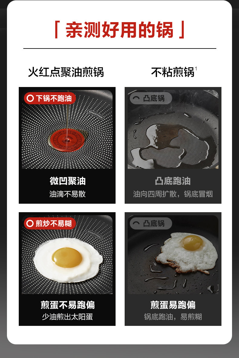 Supor Has a Titanium Non-Stick Frying Pan for Home Use, Steak Frying Pan, Stainless Steel Red Dot Oil-Collecting Pan, Special for Frying Eggs and Pancakes