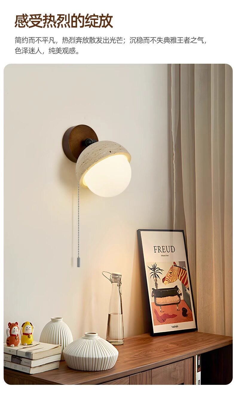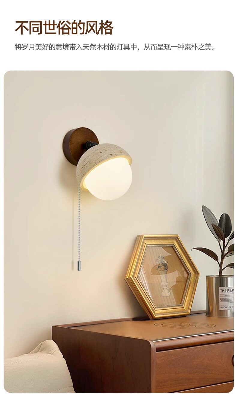 Vintage Wabi-Sabi Style Yellow Cave Stone Wall Lamp Retro Cream Bedroom Bedside Wall Light Living Room Staircase Corridor Aisle Lighting Fixture