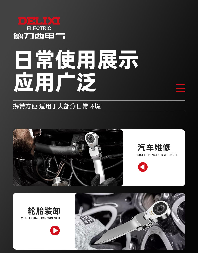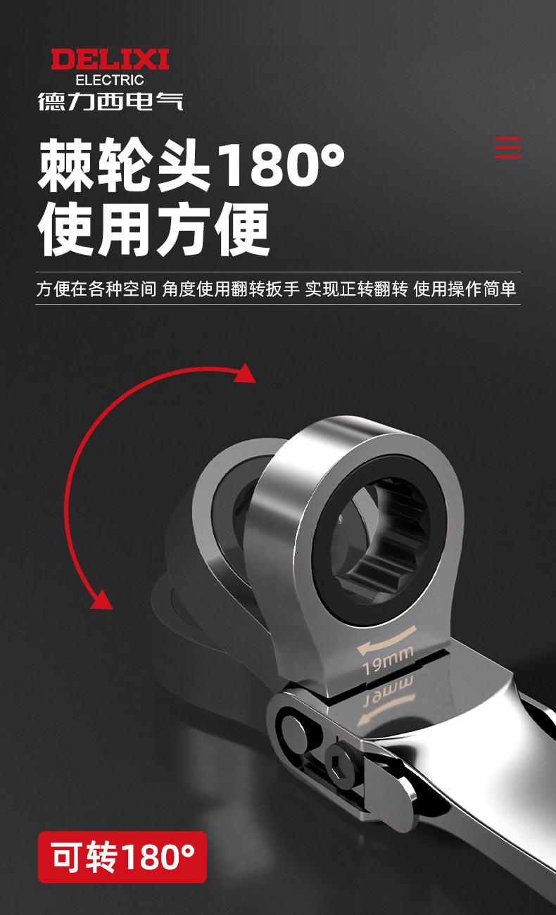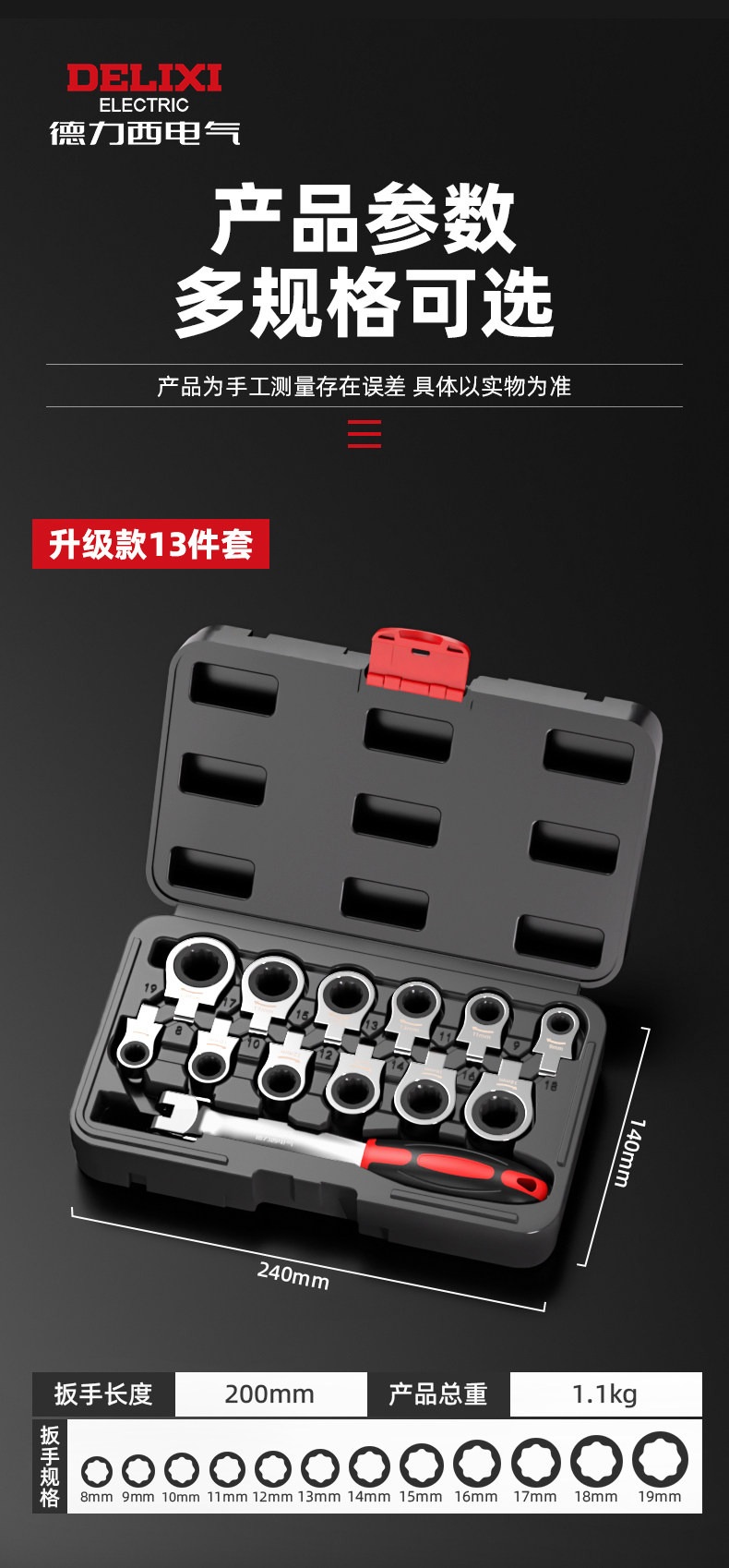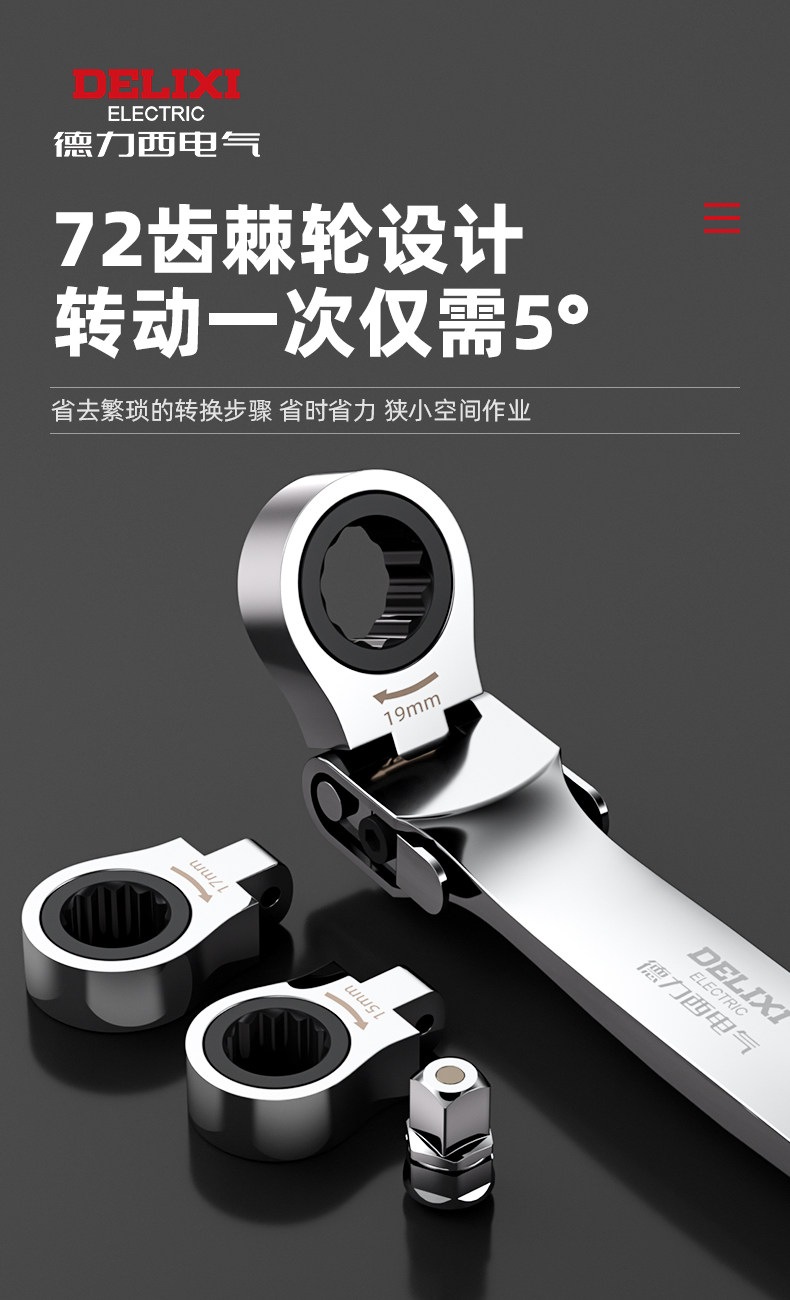 Delixi Electric Adjustable Ratchet Wrench, Quick Wrench, Multi-Functional Star-Shaped Open-End Wrench, Auto Repair Universal Adjustable Wrench