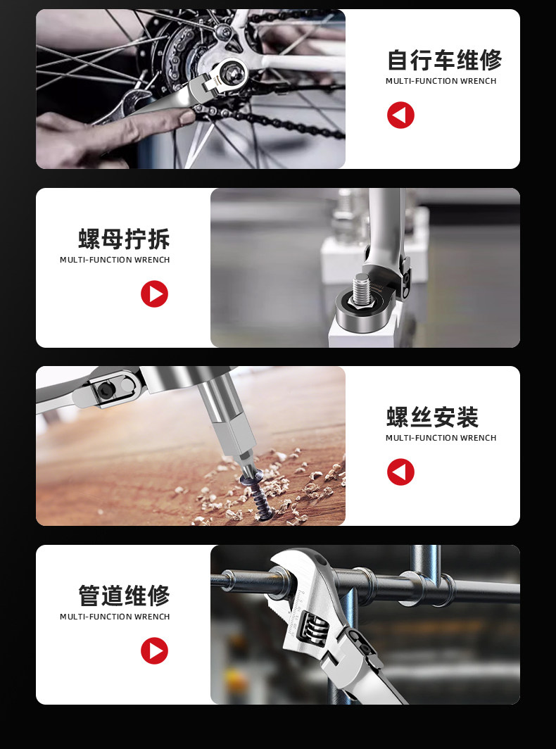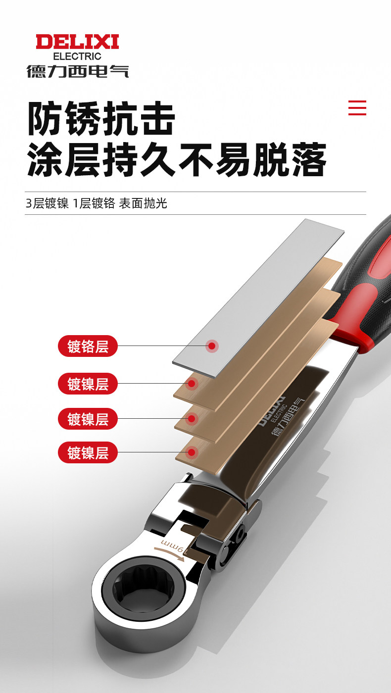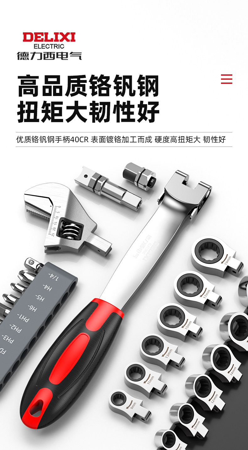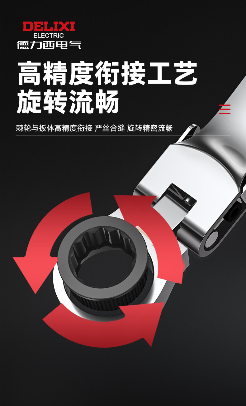 Delixi Electric Adjustable Ratchet Wrench, Quick Wrench, Multi-Functional Star-Shaped Open-End Wrench, Auto Repair Universal Adjustable Wrench