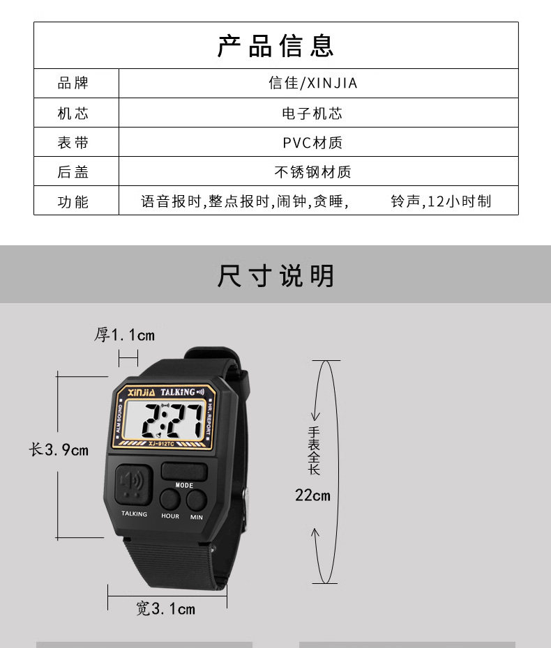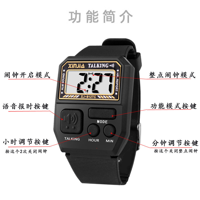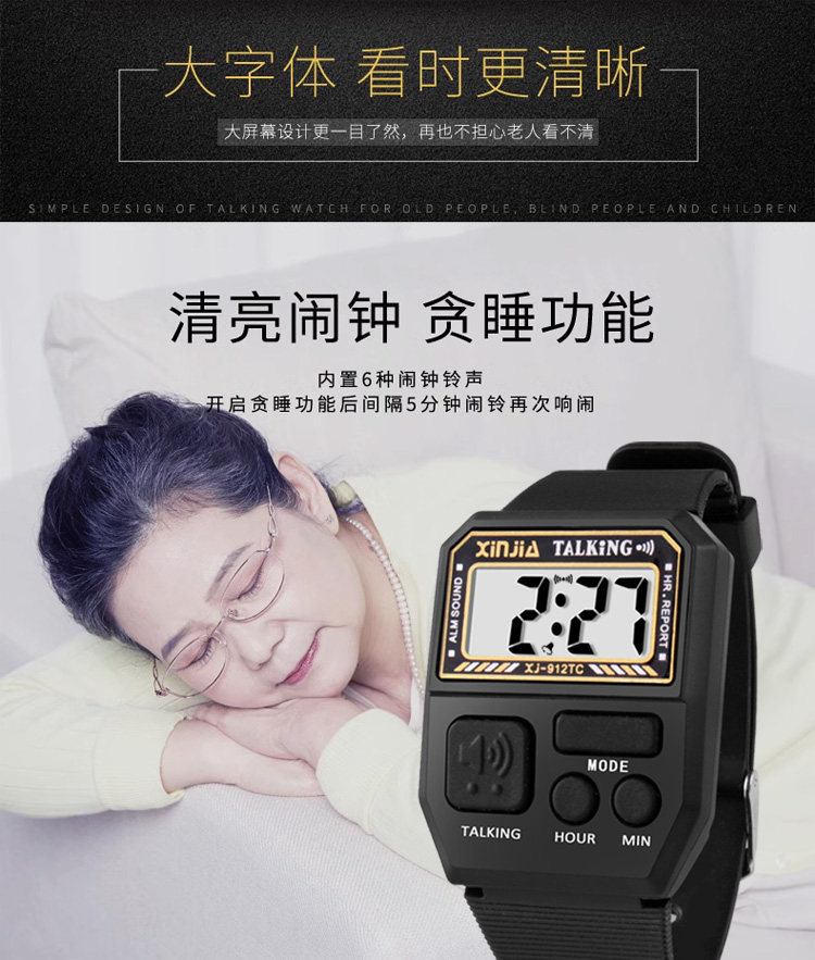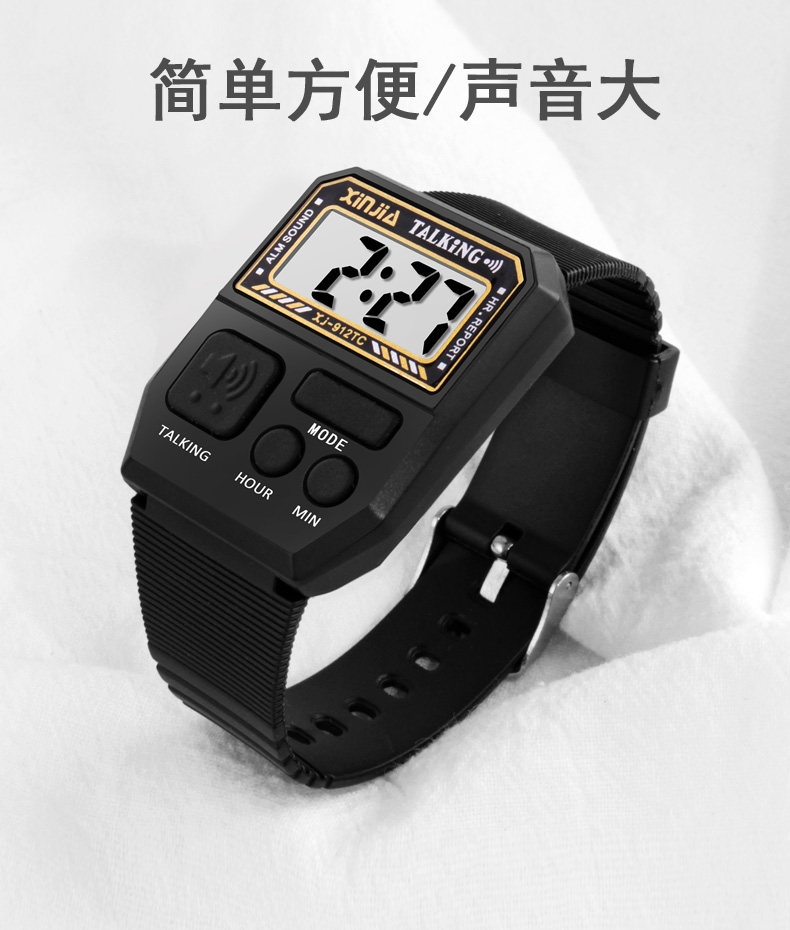 Voice Time-Telling Watch, Blind People's Watch, Loud Talking Watch, Middle-Aged and Elderly Square-Shaped Electronic Watch for the Elderly