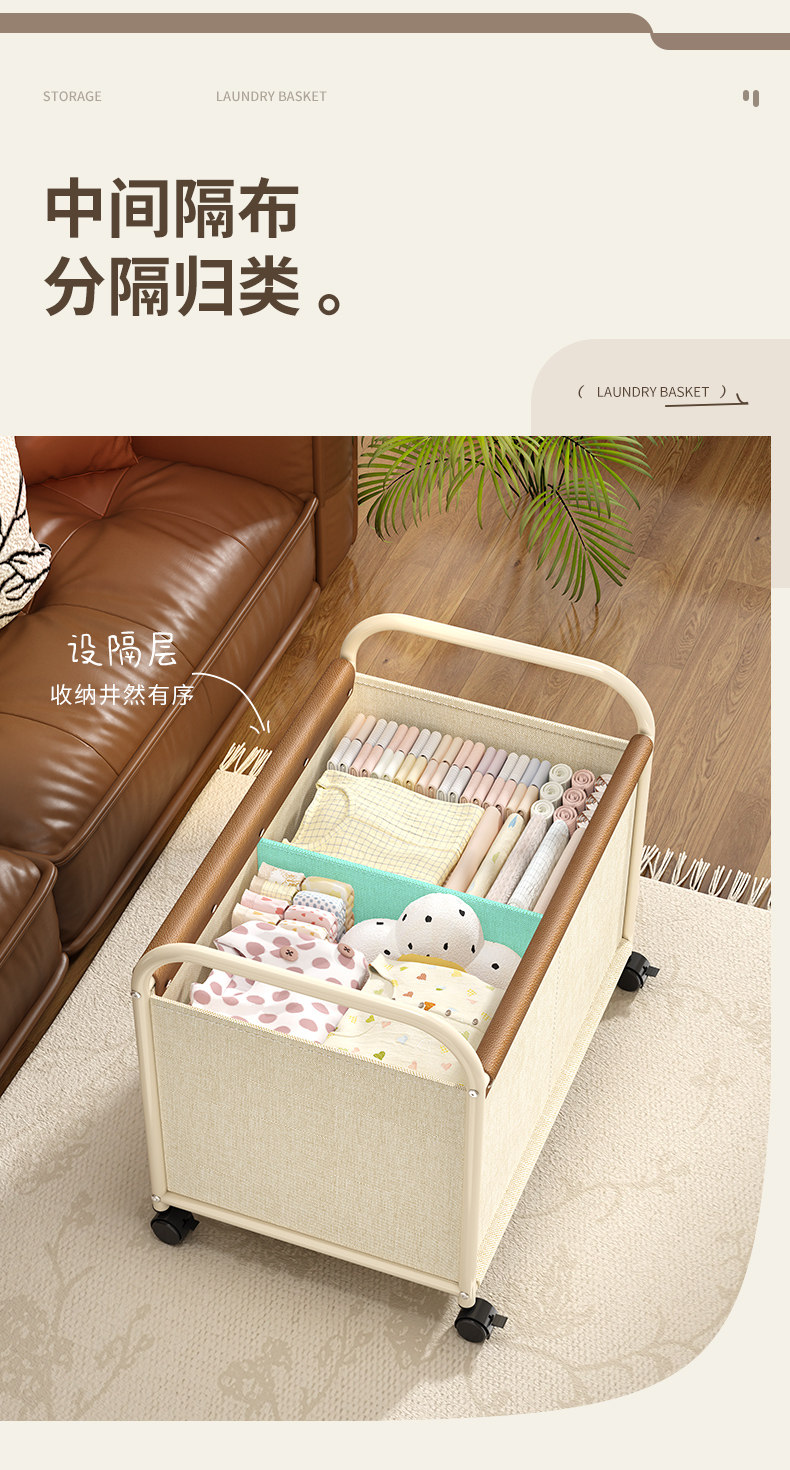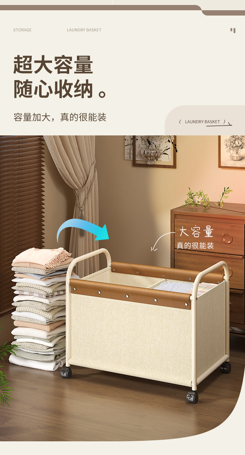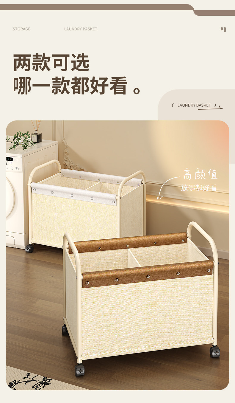 Dirty Clothes Basket for Home Use, High-Looking Laundry Basket with Wheels, Divided Dirty Clothes Storage Bin, Large Capacity Laundry Basket