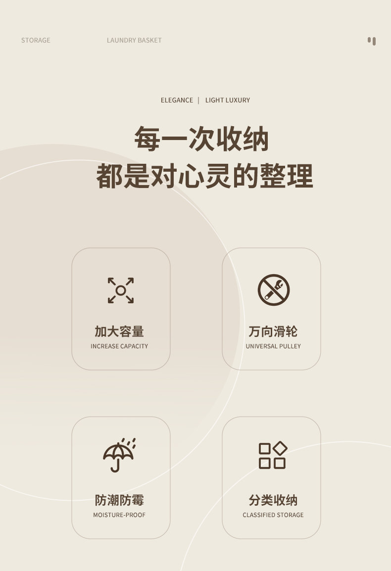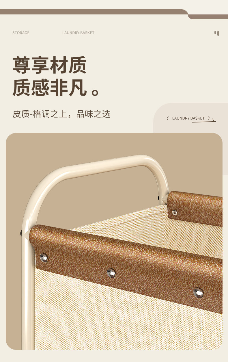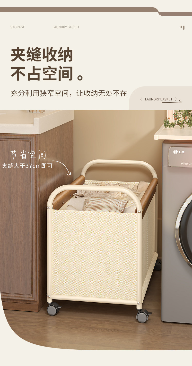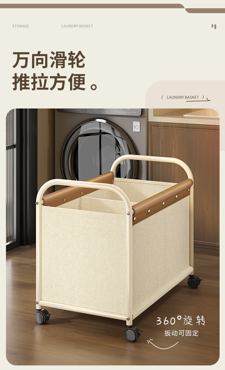 Dirty Clothes Basket for Home Use, High-Looking Laundry Basket with Wheels, Divided Dirty Clothes Storage Bin, Large Capacity Laundry Basket