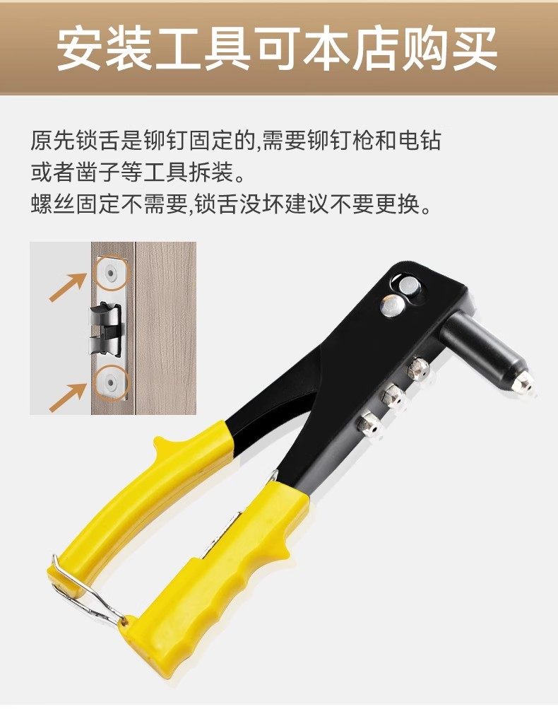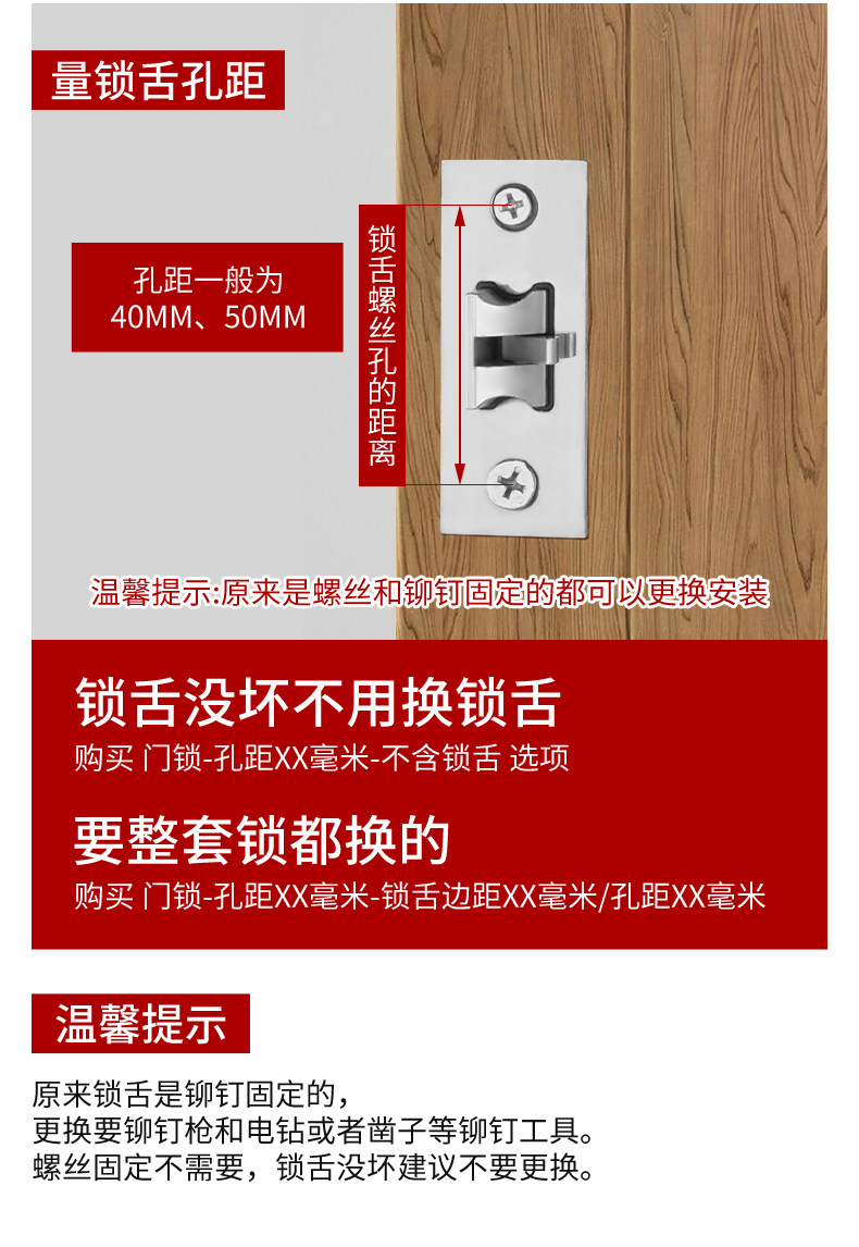 | Color Classification | Purchase Instructions,Special Offer[Hole Spacing 110 mm]Not Equipped with Lock Tongue,Special Offer[Hole Spacing 125 mm]Not Equipped with Lock Tongue,Special Offer[Hole Spacing 130 mm]Not Equipped with Lock Tongue,[Hole Spacing 110]Not Equipped with Lock Tongue,[Hole Spacing 125]Not Equipped with Lock Tongue,[Hole Spacing 130]Not Equipped with Lock Tongue,Adjustable Hole Spacing Door Lock[Hole Spacing 105-200 mm]Not Equipped with Lock Tongue,Special Offer[Hole Spacing 110 mm]+30 Lock Tongue,Special Offer[Hole Spacing 110 mm]+35 Lock Tongue,Special Offer[Hole Spacing 110 mm]+40 Lock Tongue,Special Offer[Hole Spacing 125 mm]+30 Lock Tongue,Special Offer[Hole Spacing 125 mm]+35 Lock Tongue,Special Offer[Hole Spacing 125 mm]+40 Lock Tongue,Special Offer[Hole Spacing 130 mm]+30 Lock Tongue,Special Offer[Hole Spacing 130 mm]+35 Lock Tongue,Special Offer[Hole Spacing 130 mm]+40 Lock Tongue,[Hole Spacing 110]With Margin 30/Hole Spacing 40,[Hole Spacing 110]With Margin 35/Hole Spacing 40,[Hole Spacing 110]With Margin 40/Hole Spacing 40,[Hole Spacing 110]With Margin 45/Hole Spacing 40,[Hole Spacing 110]With Margin 50/Hole Spacing 40,[Hole Spacing 110]With Margin 50/Hole Spacing 50,[Hole Spacing 125]With Margin 30/Hole Spacing 40,[Hole Spacing 125]With Margin 35/Hole Spacing 40,[Hole Spacing 125]With Margin 40/Hole Spacing 40,[Hole Spacing 125]With Margin 45/Hole Spacing 40,[Hole Spacing 125]With Margin 50/Hole Spacing 40,[Hole Spacing 125]With Margin 50/Hole Spacing 50,[Hole Spacing 130]With Margin 30/Hole Spacing 40,[Hole Spacing 130]With Margin 35/Hole Spacing 40,[Hole Spacing 130]With Margin 40/Hole Spacing 40,[Hole Spacing 130]With Margin 45/Hole Spacing 40,[Hole Spacing 130]With Margin 50/Hole Spacing 40,[Hole Spacing 130]With Margin 50/Hole Spacing 50,Adjustable Hole Spacing Door Lock[With 30mm Margin Lock Tongue],Adjustable Hole Spacing Door Lock[With 35mm Margin Lock Tongue],Adjustable Hole Spacing Door Lock[With 40mm Margin Lock Tongue],Adjustable Hole Spacing Door Lock[With 45mm Margin Lock Tongue],Adjustable Hole Spacing Door Lock[With 50mm Margin Lock Tongue],[Rivet Removal and Installation Tool Kit]Rivet Gun + Hammer + Chisel + Screwdriver,[Rivet Gun]Rivet Gun + 6 Rivets,Concave Door Lock-110 Hole Spacing[Not Equipped with Lock Tongue],Concave Door Lock-125 Hole Spacing[Not Equipped with Lock Tongue],Concave Door Lock-110 Hole Spacing[Default Equipped with 50 Lock Tongue]For melissabow Sizes, Please Contact Customer Service,Concave Door Lock-125 Hole Spacing[Default Equipped with 50 Lock Tongue]For melissabow Sizes, Please Contact Customer Service |