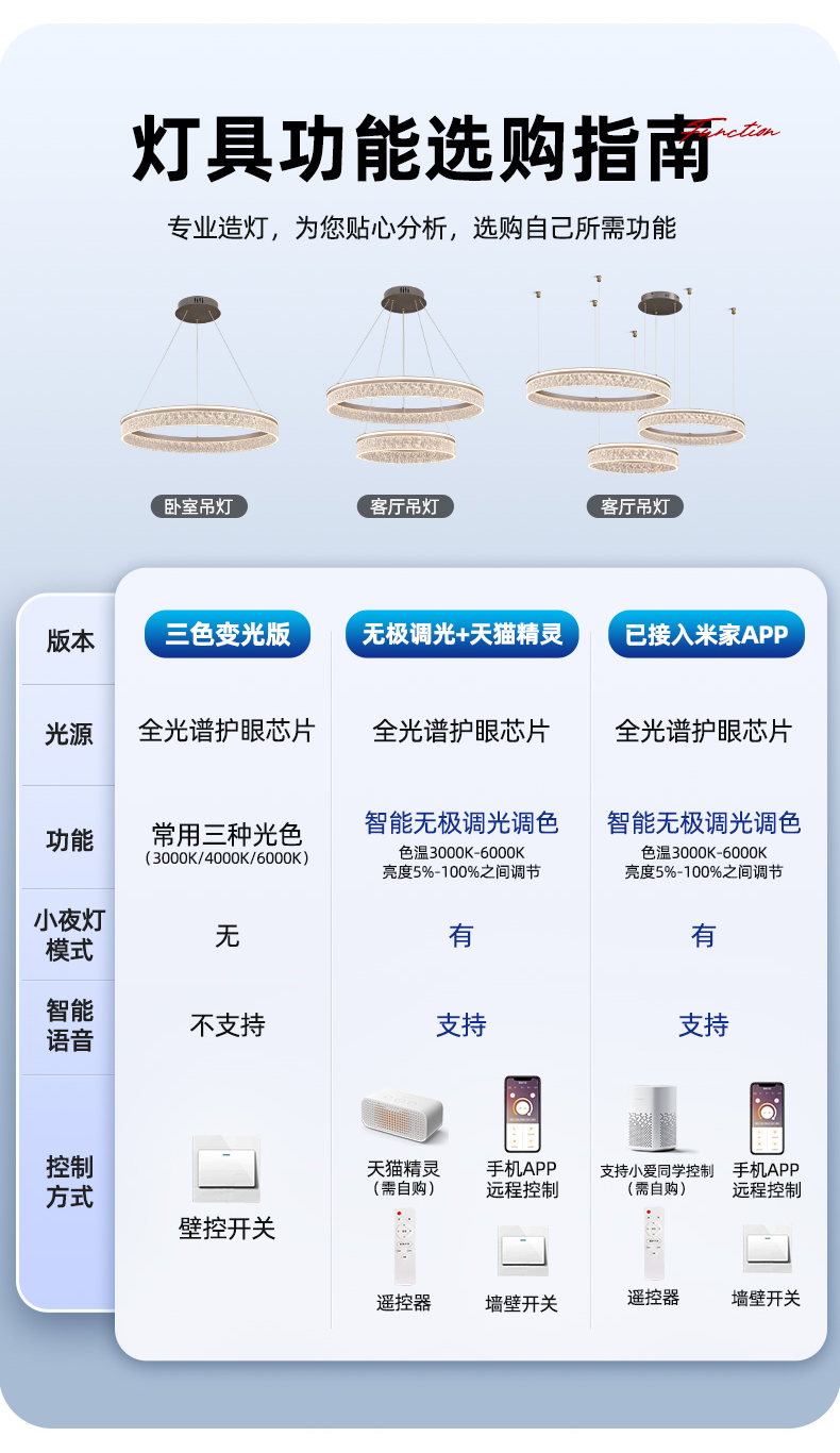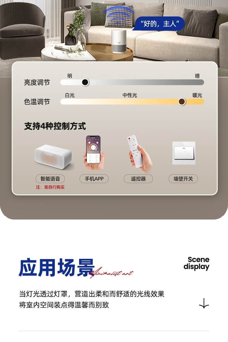| Control Method | Three-Color Dimming/Wall Control,Wiji Remote Control / Tmall Genie,Infinite Remote Control/Connected to Mijia App |