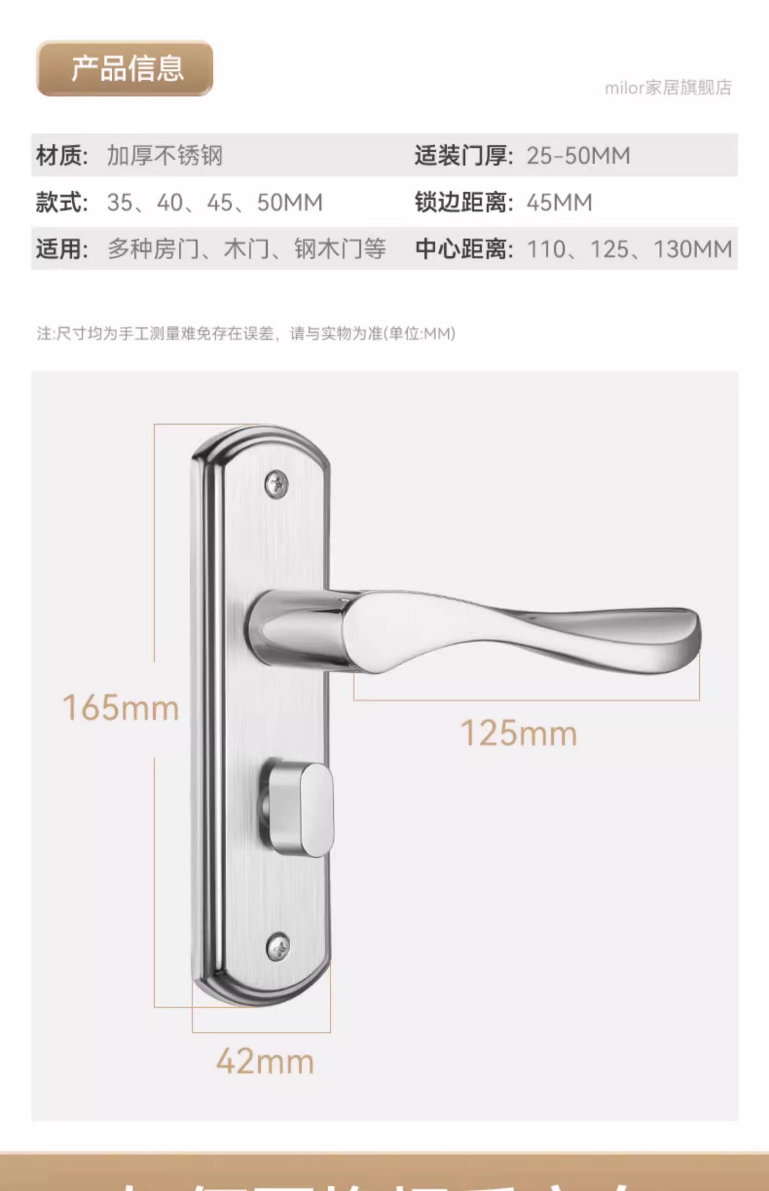 | Color Classification | Purchase Notice,Special Offer[Hole Spacing 110mm]Not Equipped with Lock Tongue,Special Offer[Hole Spacing 125mm]Not Equipped with Lock Tongue,Special Offer[Hole Spacing 130mm]Not Equipped with Lock Tongue,[Hole Spacing 110]Not Equipped with Lock Tongue,[Hole Spacing 125]Not Equipped with Lock Tongue,[Hole Spacing 130]Not Equipped with Lock Tongue,Adjustable Hole Spacing Door Lock[Hole Spacing 105-200 mm]Not Equipped with Lock Tongue,Special Offer[Hole Spacing 110mm]+30 Lock Tongue,Special Offer[Hole Spacing 110mm]+35 Lock Tongue,Special Offer[Hole Spacing 110mm]+40 Lock Tongue,Special Offer[Hole Spacing 125mm]+30 Lock Tongue,Special Offer[Hole Spacing 125mm]+35 Lock Tongue,Special Offer[Hole Spacing 125mm]+40 Lock Tongue,Special Offer[Hole Spacing 130mm]+30 Lock Tongue,Special Offer[Hole Spacing 130mm]+35 Lock Tongue,Special Offer[Hole Spacing 130mm]+40 Lock Tongue,[Hole Spacing 110]With Margin 30/Hole Spacing 40,[Hole Spacing 110]With Margin 35/Hole Spacing 40,[Hole Spacing 110]With Margin 40/Hole Spacing 40,[Hole Spacing 110]With Margin 45/Hole Spacing 40,[Hole Spacing 110]With Margin 50/Hole Spacing 40,[Hole Spacing 110]With Margin 50/Hole Spacing 50,[Hole Spacing 125]With Margin 30/Hole Spacing 40,[Hole Spacing 125]With Margin 35/Hole Spacing 40,[Hole Spacing 125]With Margin 40/Hole Spacing 40,[Hole Spacing 125]With Margin 45/Hole Spacing 40,[Hole Spacing 125]With Margin 50/Hole Spacing 40,[Hole Spacing 125]With Margin 50/Hole Spacing 50,[Hole Spacing 130]With Margin 30/Hole Spacing 40,[Hole Spacing 130]With Margin 35/Hole Spacing 40,[Hole Spacing 130]With Margin 40/Hole Spacing 40,[Hole Spacing 130]With Margin 45/Hole Spacing 40,[Hole Spacing 130]With Margin 50/Hole Spacing 40,[Hole Spacing 130]With Margin 50/Hole Spacing 50,Adjustable Hole Spacing Door Lock[With 30mm Edge Lock Tongue],Adjustable Hole Spacing Door Lock[With 35mm Edge Lock Tongue],Adjustable Hole Spacing Door Lock[With 40mm Edge Lock Tongue],Adjustable Hole Spacing Door Lock[With 45mm Edge Lock Tongue],Adjustable Hole Spacing Door Lock[With 50mm Edge Lock Tongue],[Disassembly and Assembly Rivet Tool Kit]Riveting Gun + Hammer + Chisel + Screwdriver,[Riveting Gun]Riveting Gun + 6 Rivets,Concave Door Lock-110 Hole Spacing[Not Equipped with Lock Tongue],Concave Door Lock-125 Hole Spacing[Not Equipped with Lock Tongue],Concave Door Lock-110 Hole Spacing[Comes Standard with a 50mm Deadbolt]If You Need melissabow Size, Please Contact Customer Service,Concave Door Lock-125 Hole Spacing[Comes Standard with a 50mm Deadbolt]If You Need melissabow Size, Please Contact Customer Service |