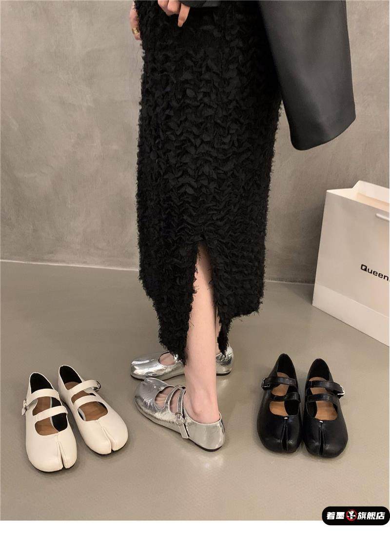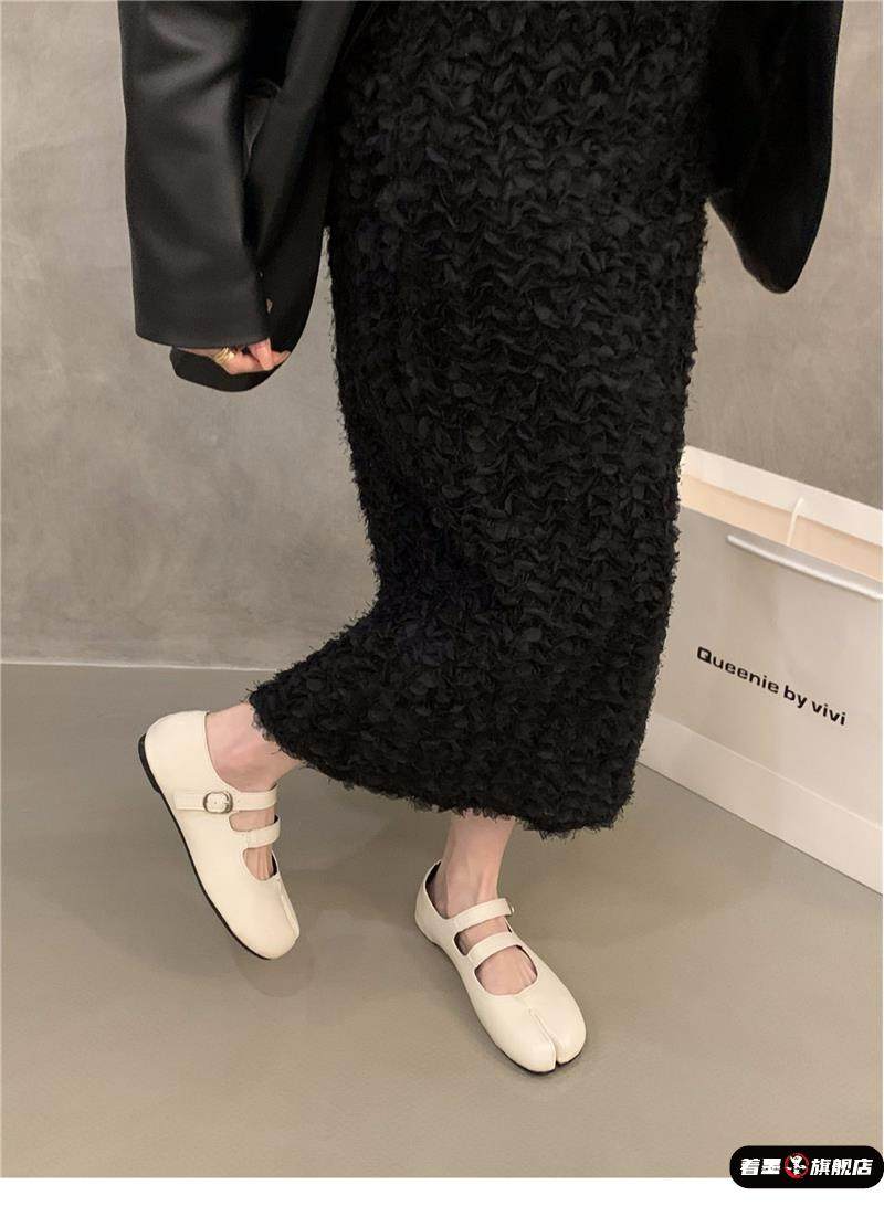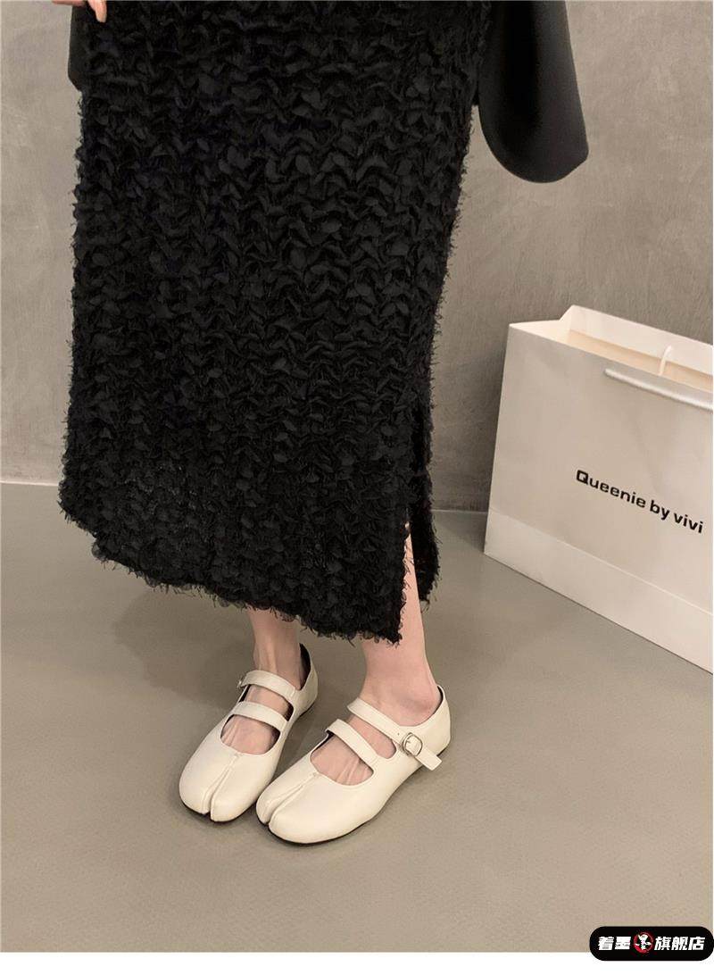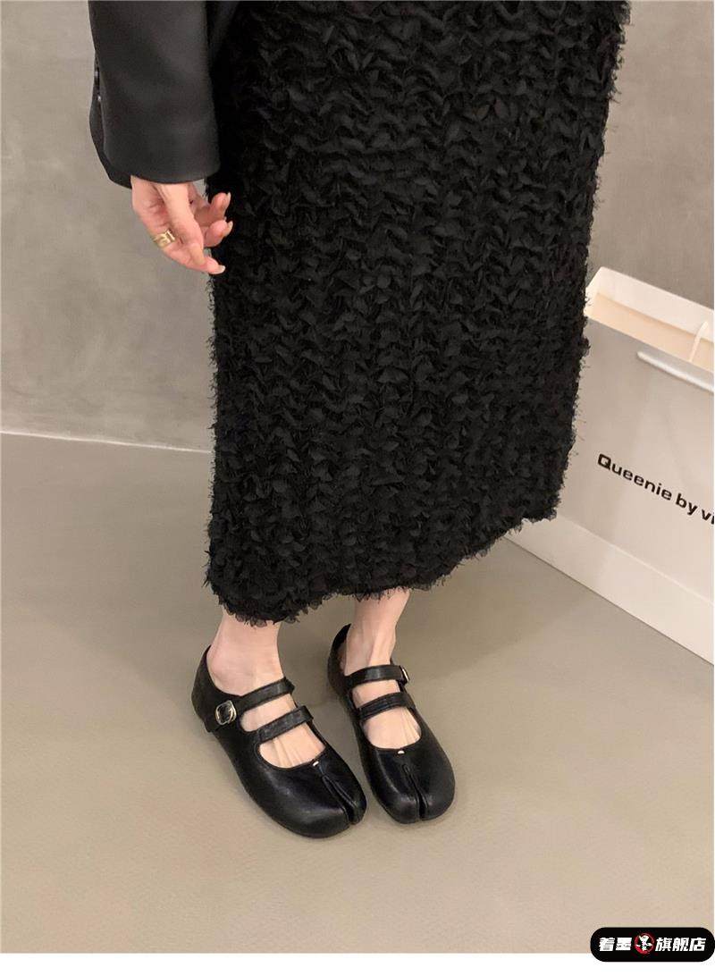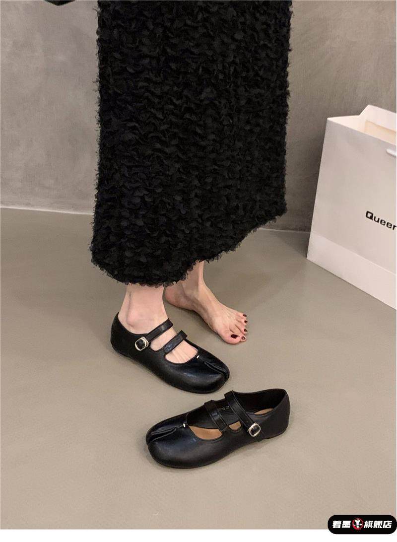Flat Split-Toe Mary Jane Shoes for Women, Spring and Autumn 2025 New Style, Summer Shallow Mouth Horseshoe Pig's Foot Shoes