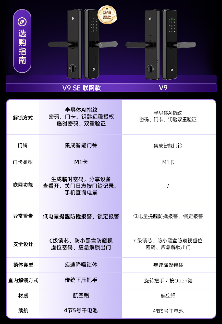 | Finish Color | 11 [Fingerprint Networking Model] V9Se-Three-Year Warranty, Free Disassembly and Assembly,11 [Fingerprint Privacy Model] V9 - Three-Year Warranty, Free Disassembly and Assembly,[Fingerprint Privacy Model] V9-Three-Year Warranty, Free Disassembly and Assembly,[Fingerprint Networking Model] V9Se-Three-Year Warranty, Free Disassembly and Assembly,11 [Fingerprint Smart Connected Model] V9Se-App Remote Temporary Password + Ai Fingerprint + Electronic Doorbell + Super Long Battery Life,11V9Se [Fingerprint Smart Connected Model] - Three-Year Warranty, Free Disassembly and Assembly,11V9 [Fingerprint Model] - Three-Year Warranty, Free Disassembly and Assembly |