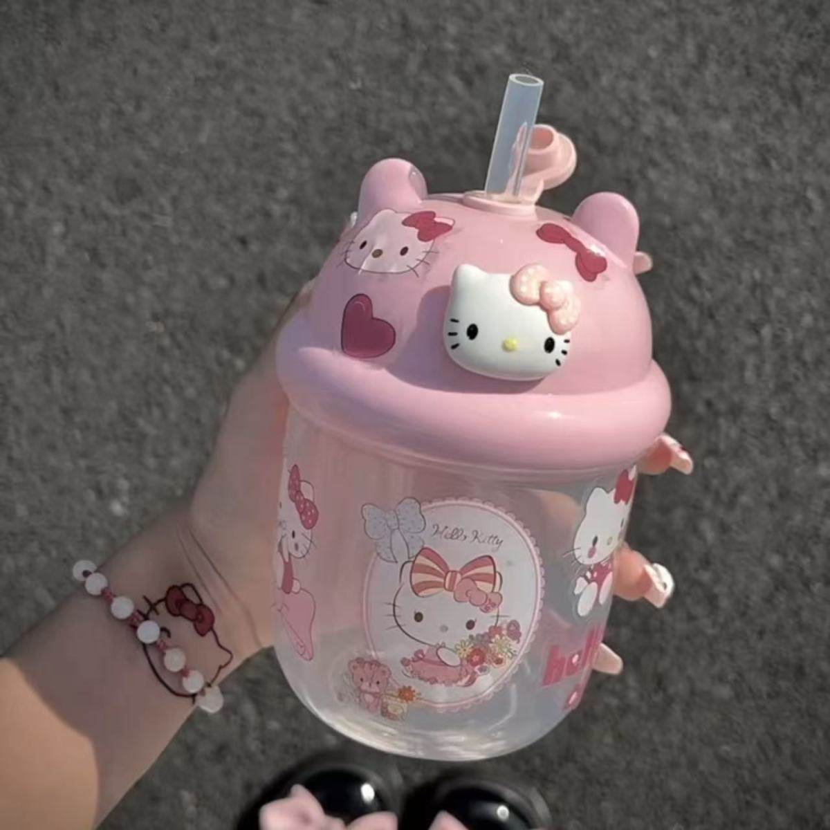 Summer Kt New Model High-Value Cute Portable Water Bottle for Girls, Children, and Students with Straw, Plastic Cup