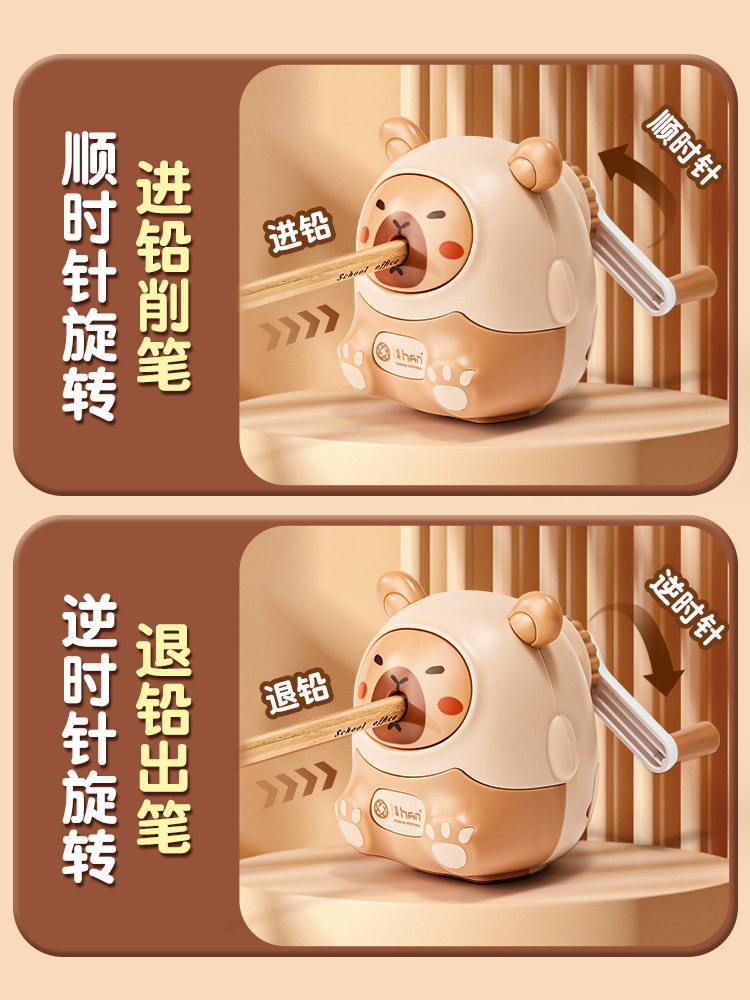 Kapibala-Shaped Pencil Sharpener, Small Portable Pencil Sharpener, Pencil Sharpener for Children and Students, Multifunctional Art Pencil Sharpener, Simple Cartoon Pencil Sharpener, Pencil Sharpener for First-Grade Students