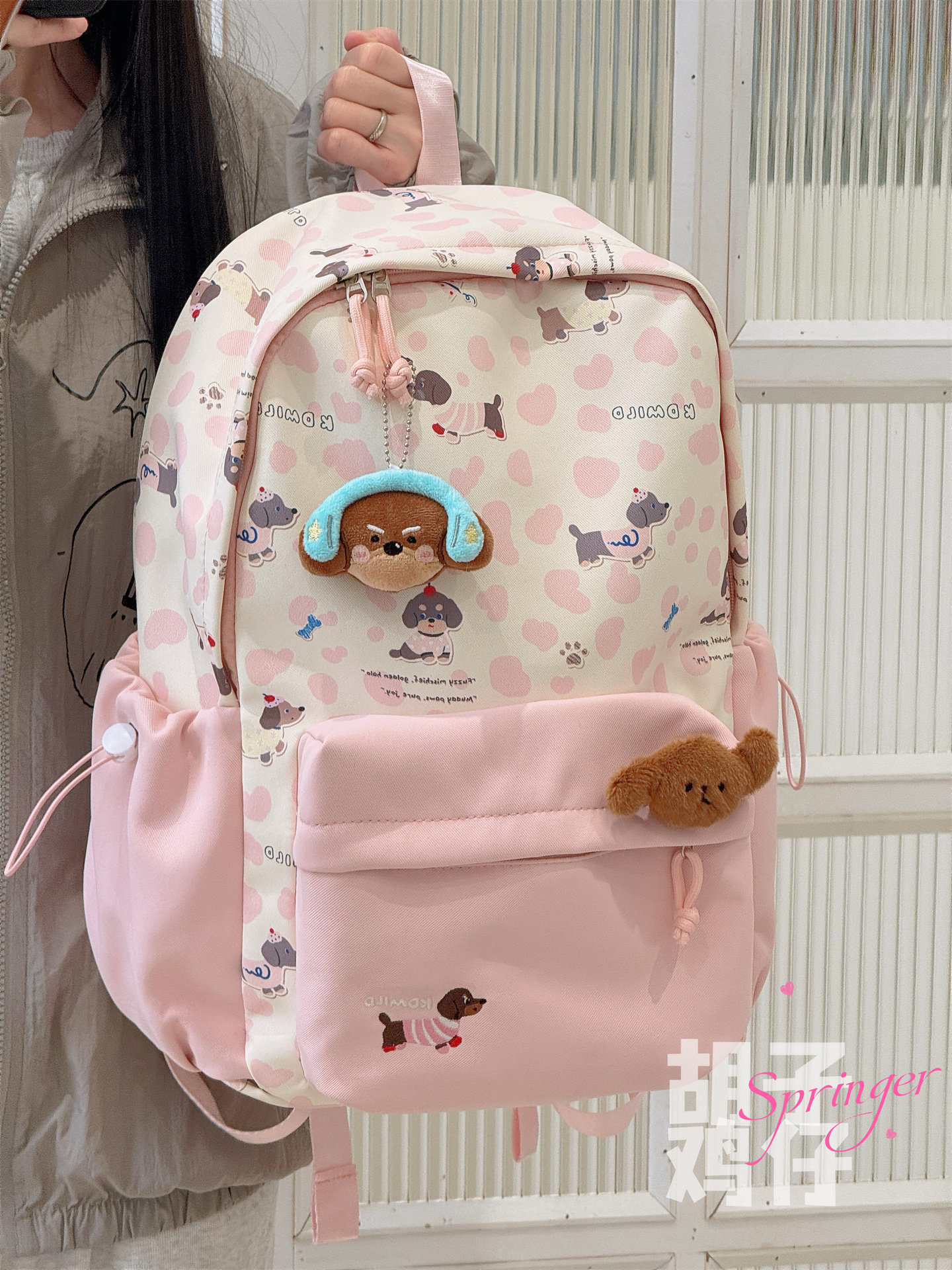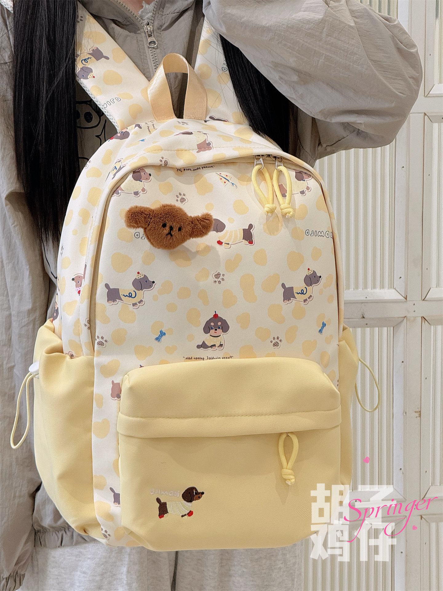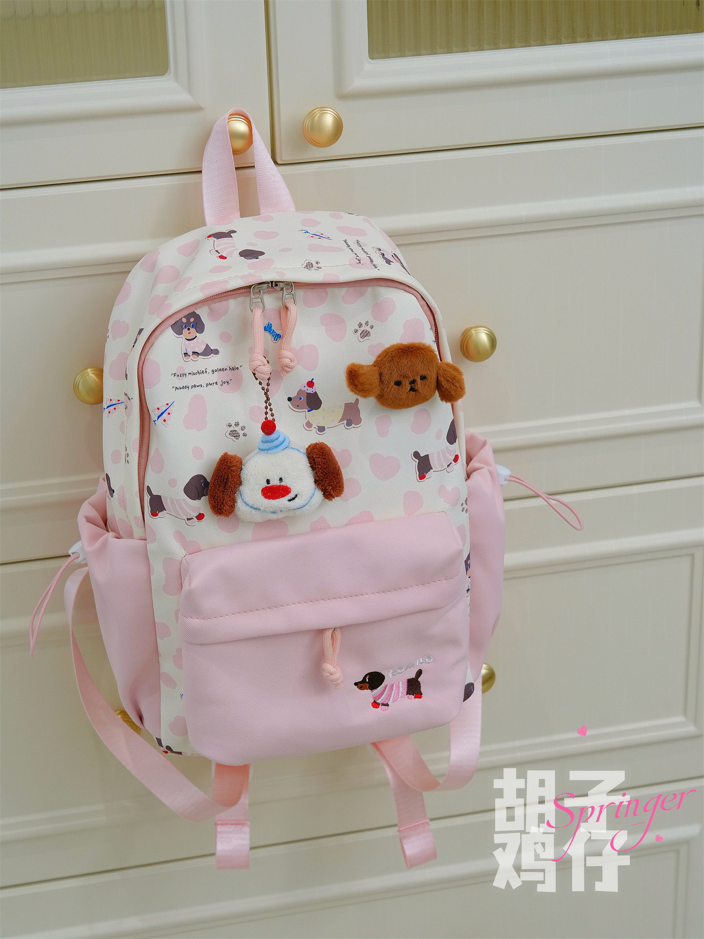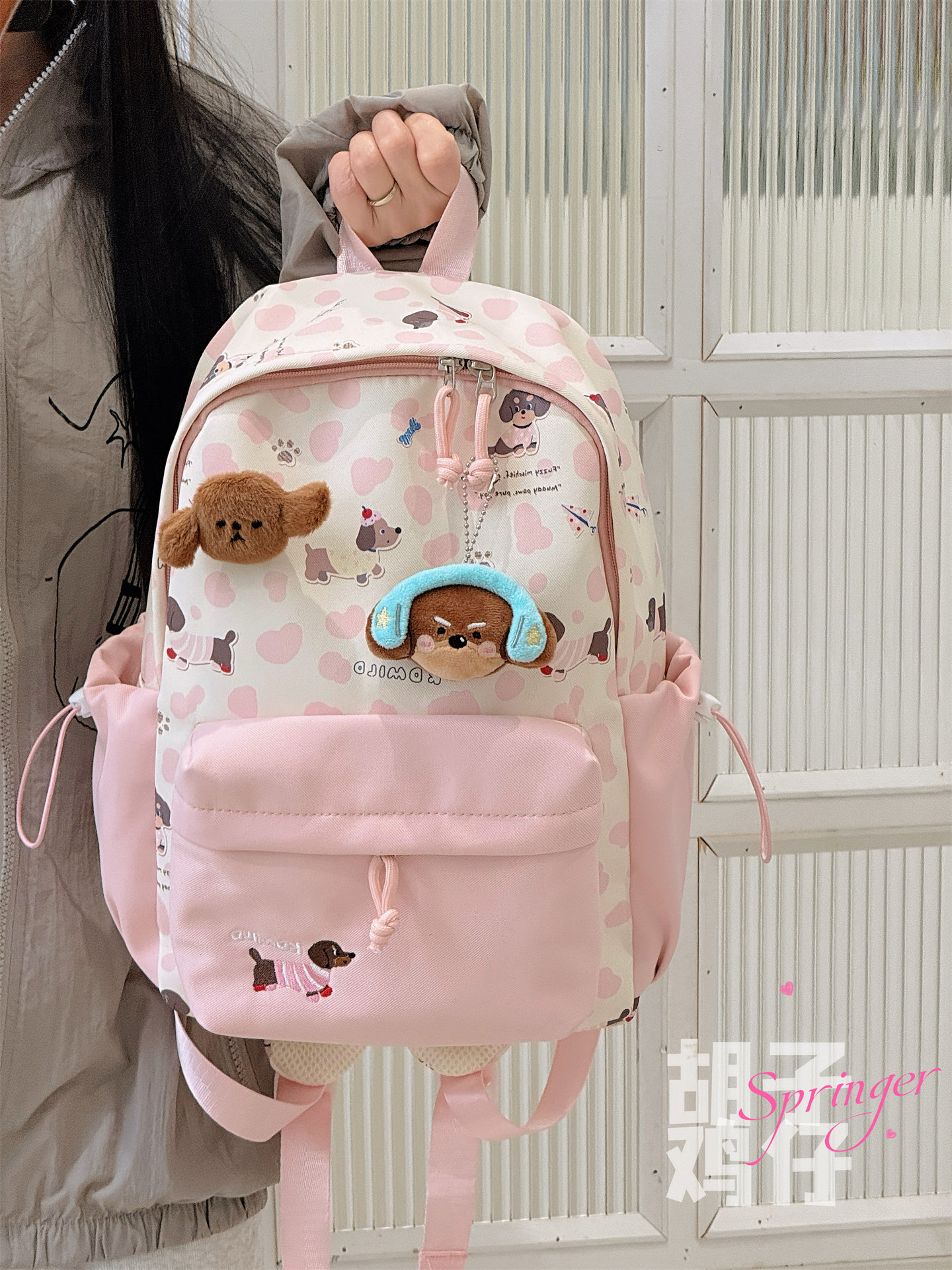 Bearded Chicken Backpack for Junior High School Girls, Niche High-Value Backpack for Girls, Cute Puppy High School Student Backpack