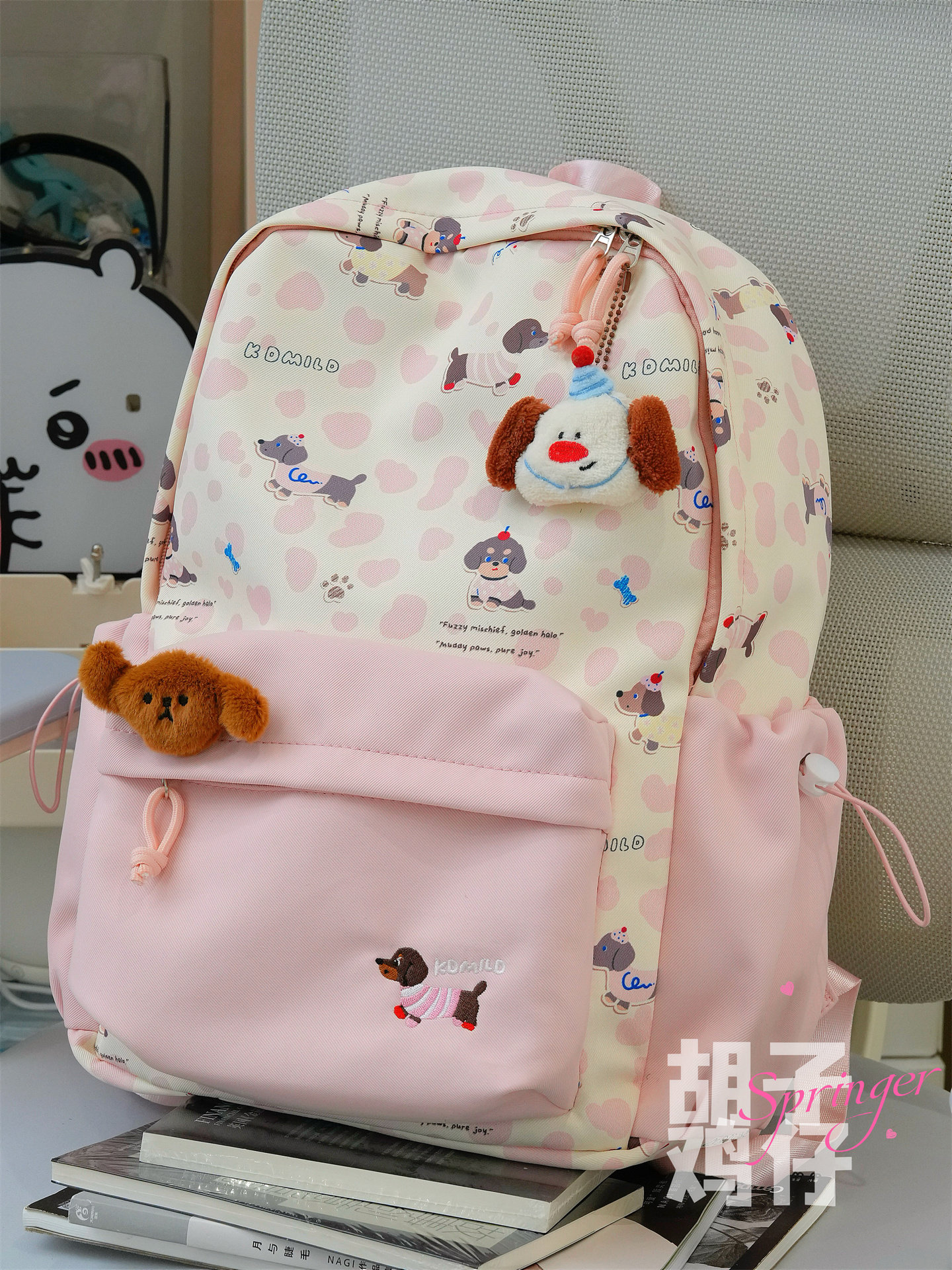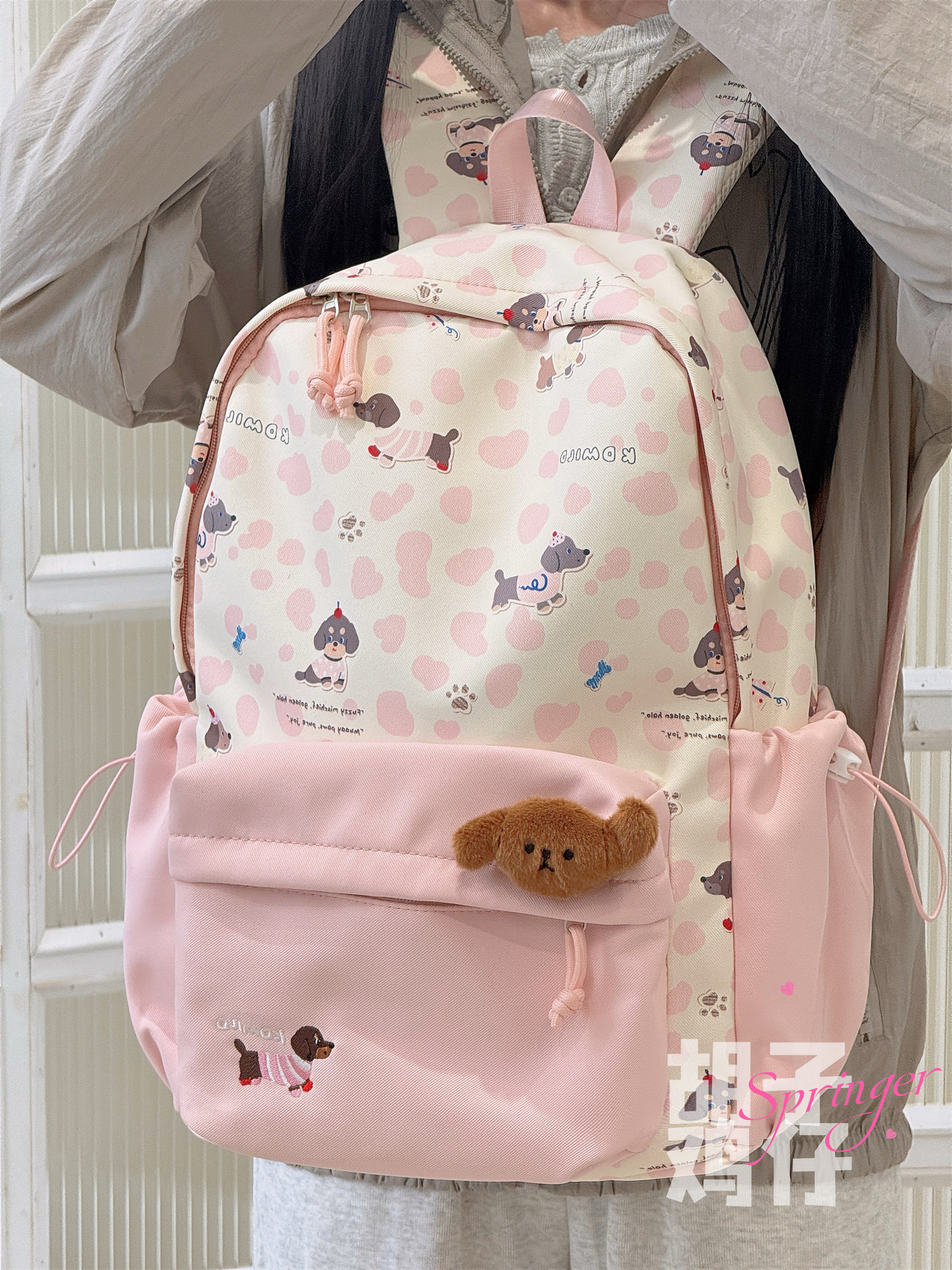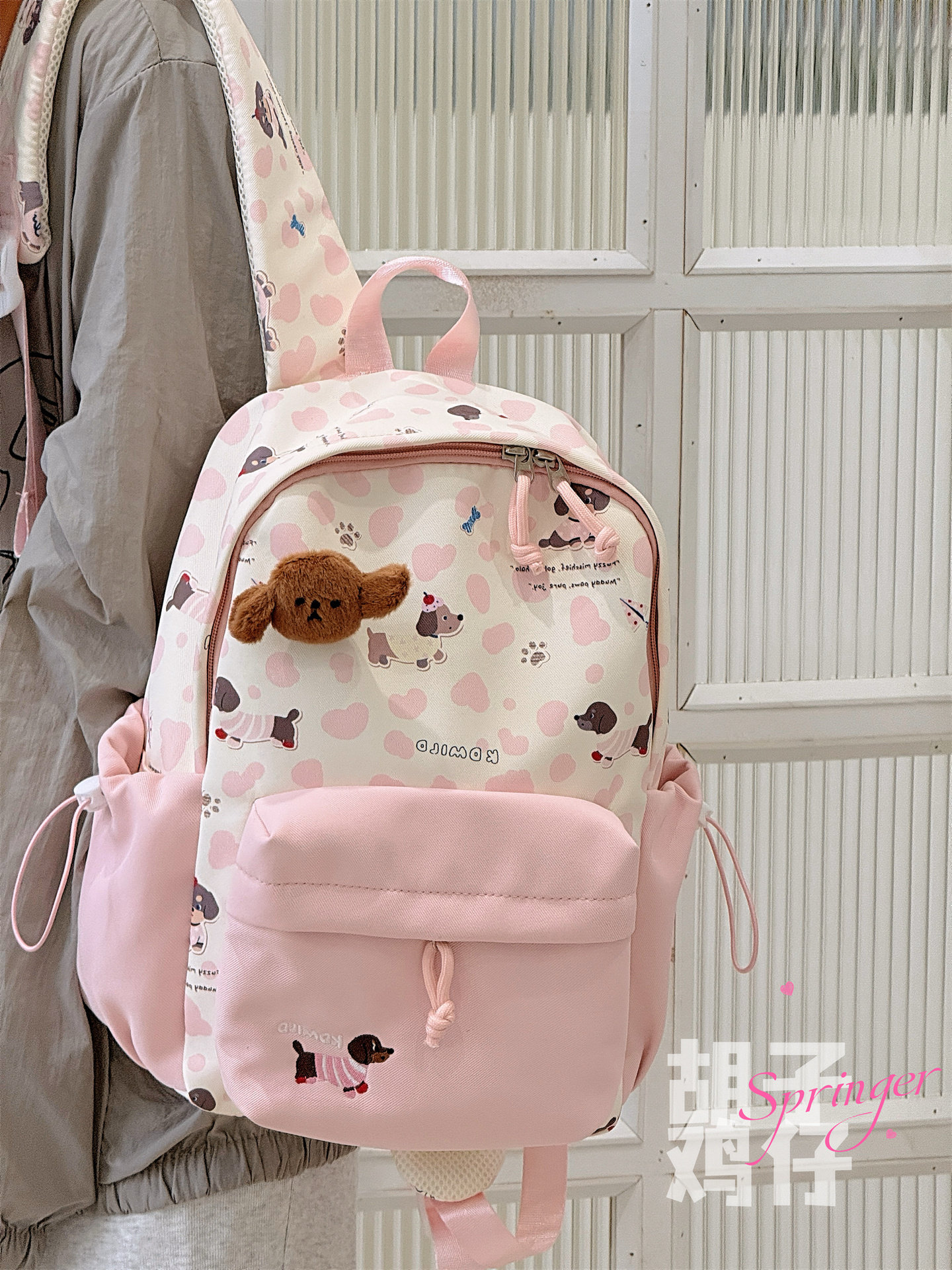 Bearded Chicken Backpack for Junior High School Girls, Niche High-Value Backpack for Girls, Cute Puppy High School Student Backpack