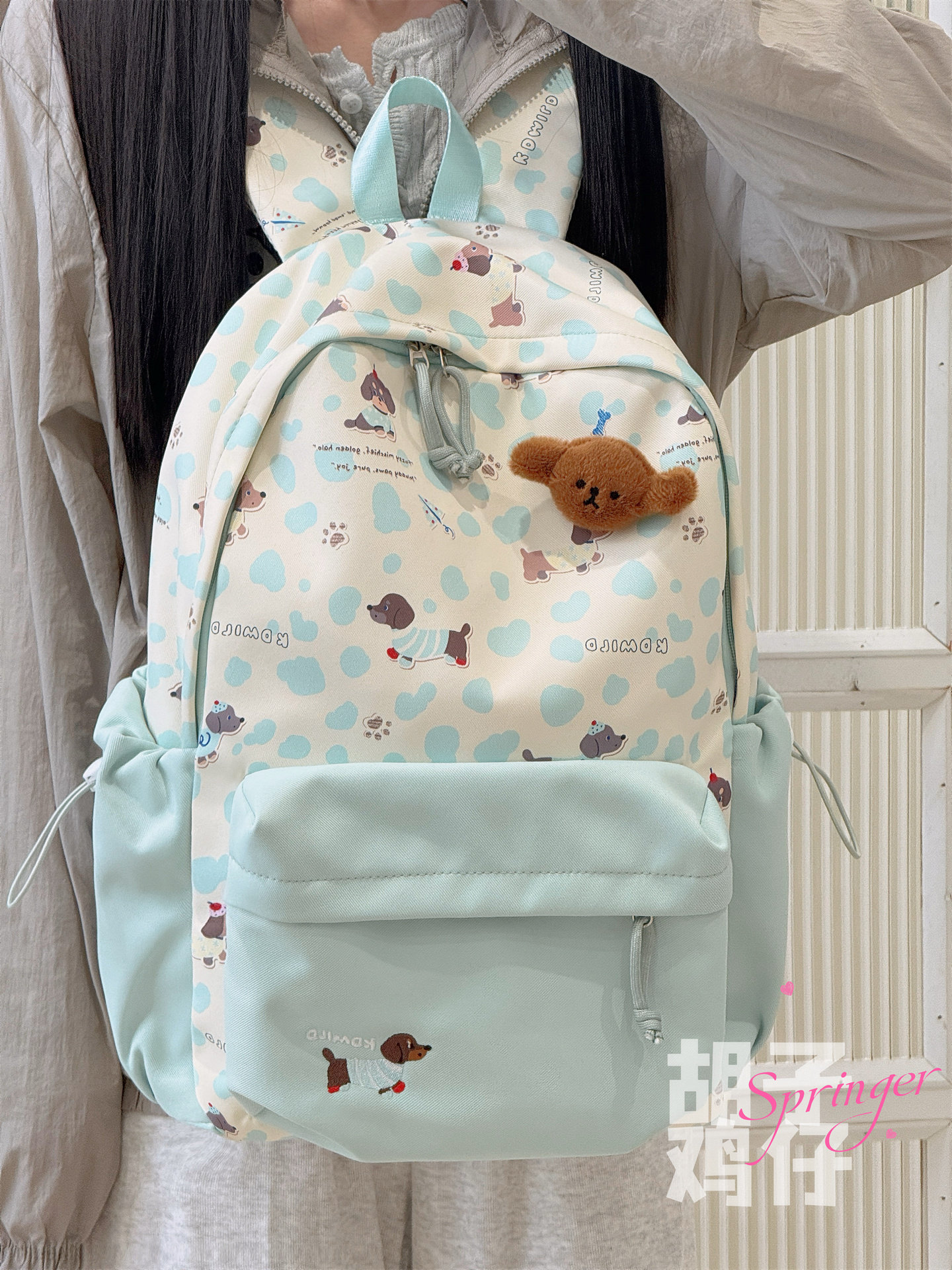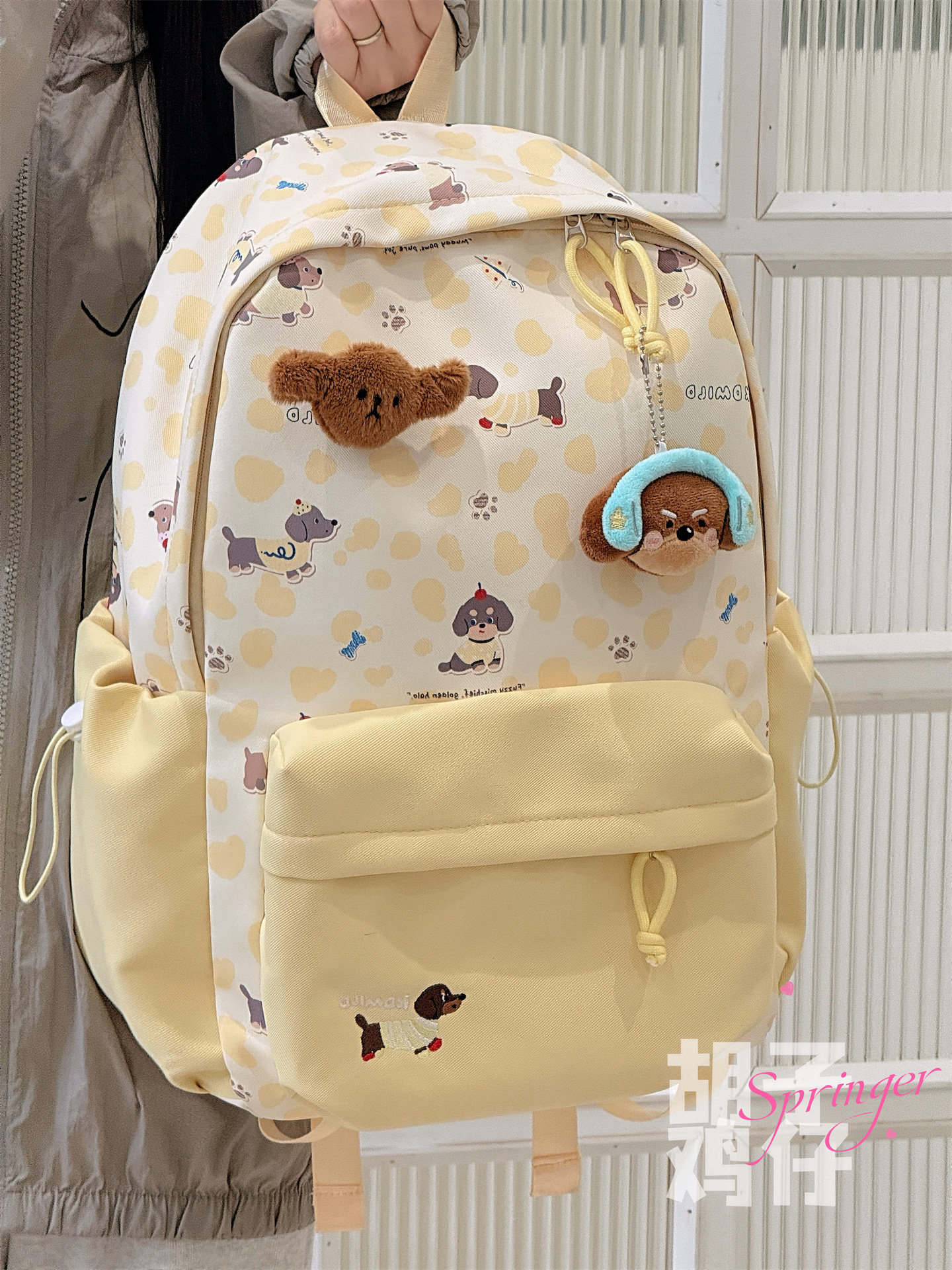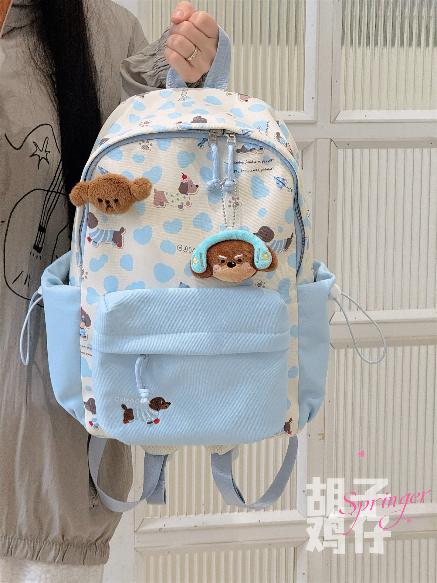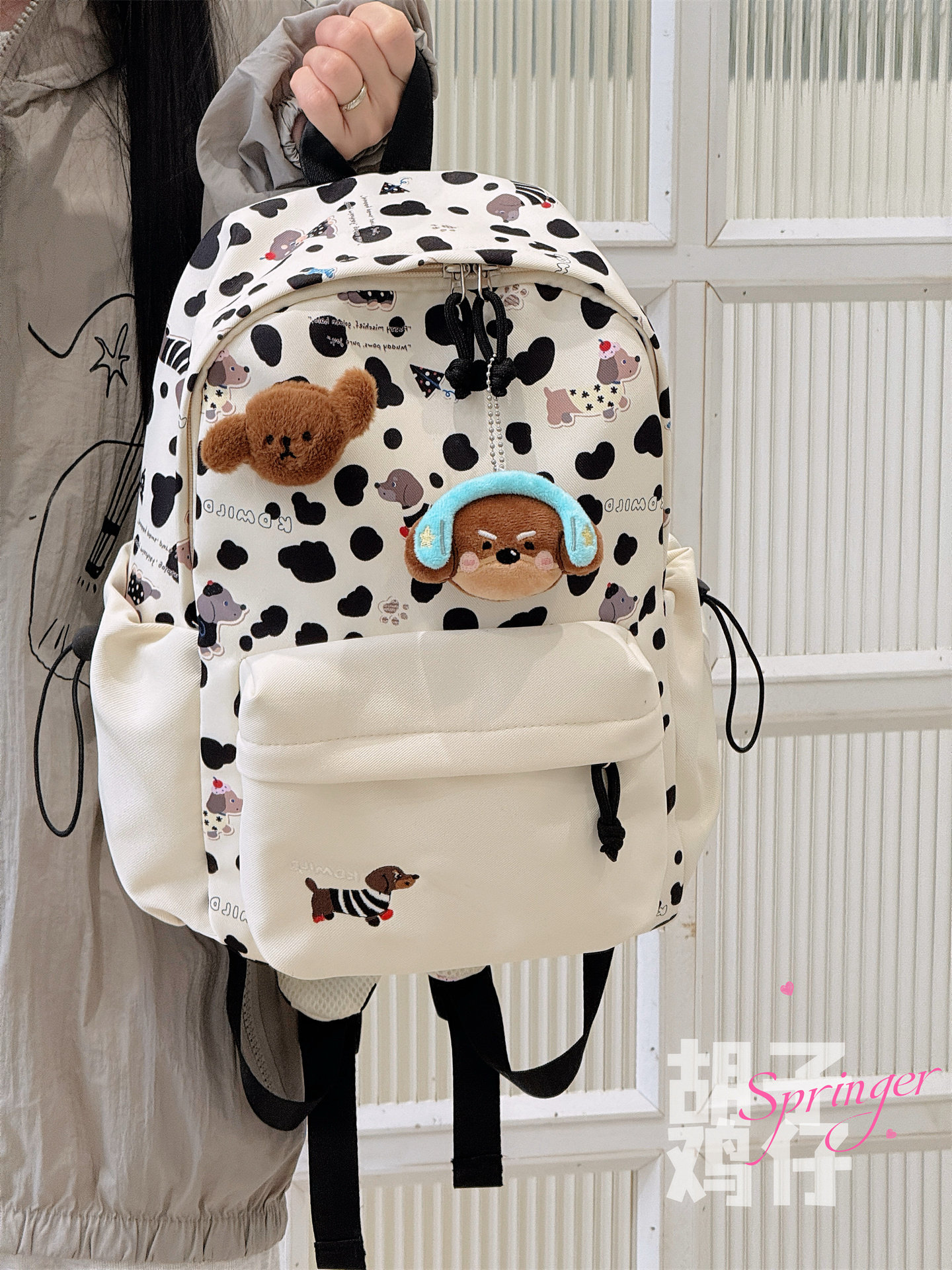 Bearded Chicken Backpack for Junior High School Girls, Niche High-Value Backpack for Girls, Cute Puppy High School Student Backpack