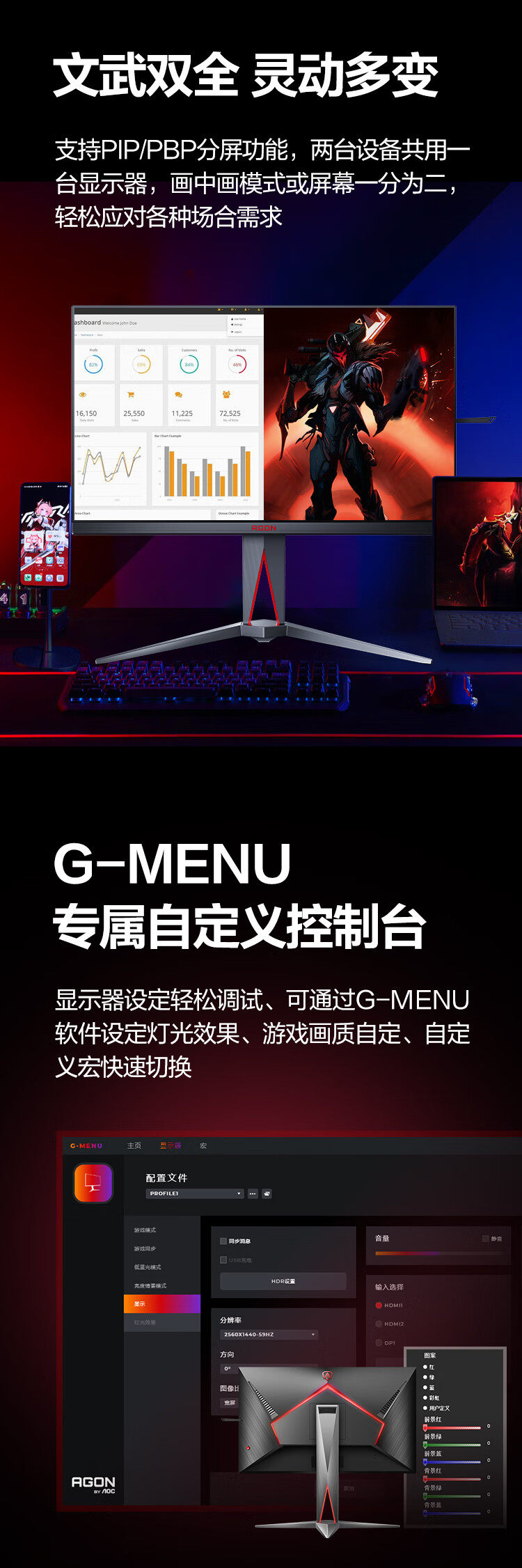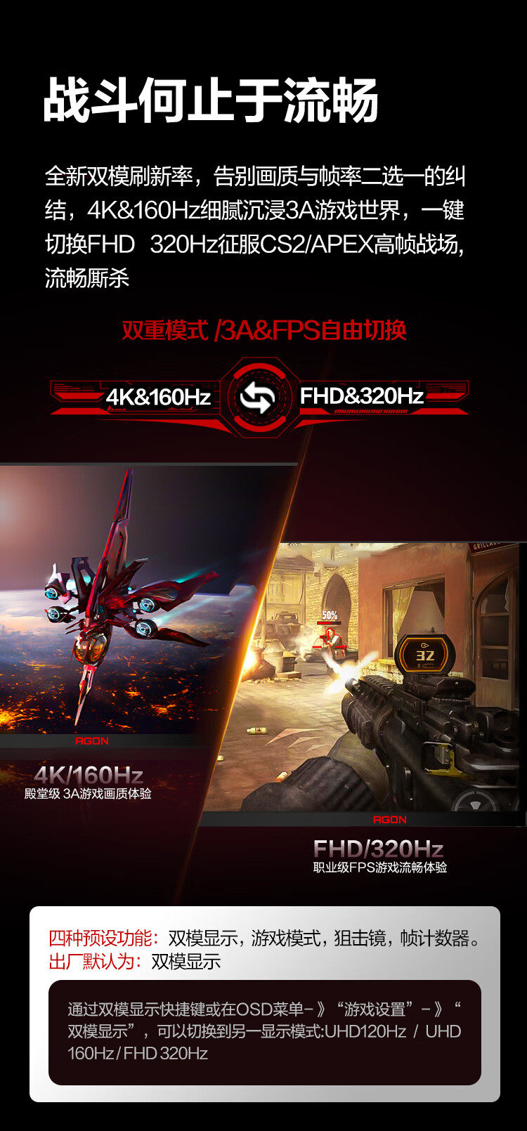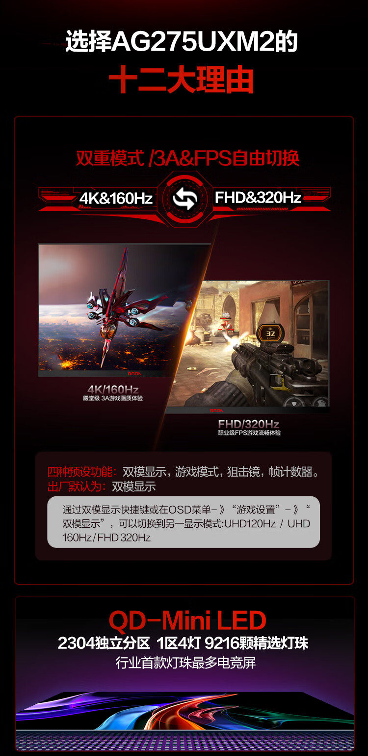 | Color Classification | 27"Qd-Miniled Dual Mode [2304 Partition/ 4K 160Hz&1K 320Hz/10Bit/Hdr1400] Ag275Uxm2,Bracket Set [Ag275Uxm2+Am700Cb Black Column Model] |