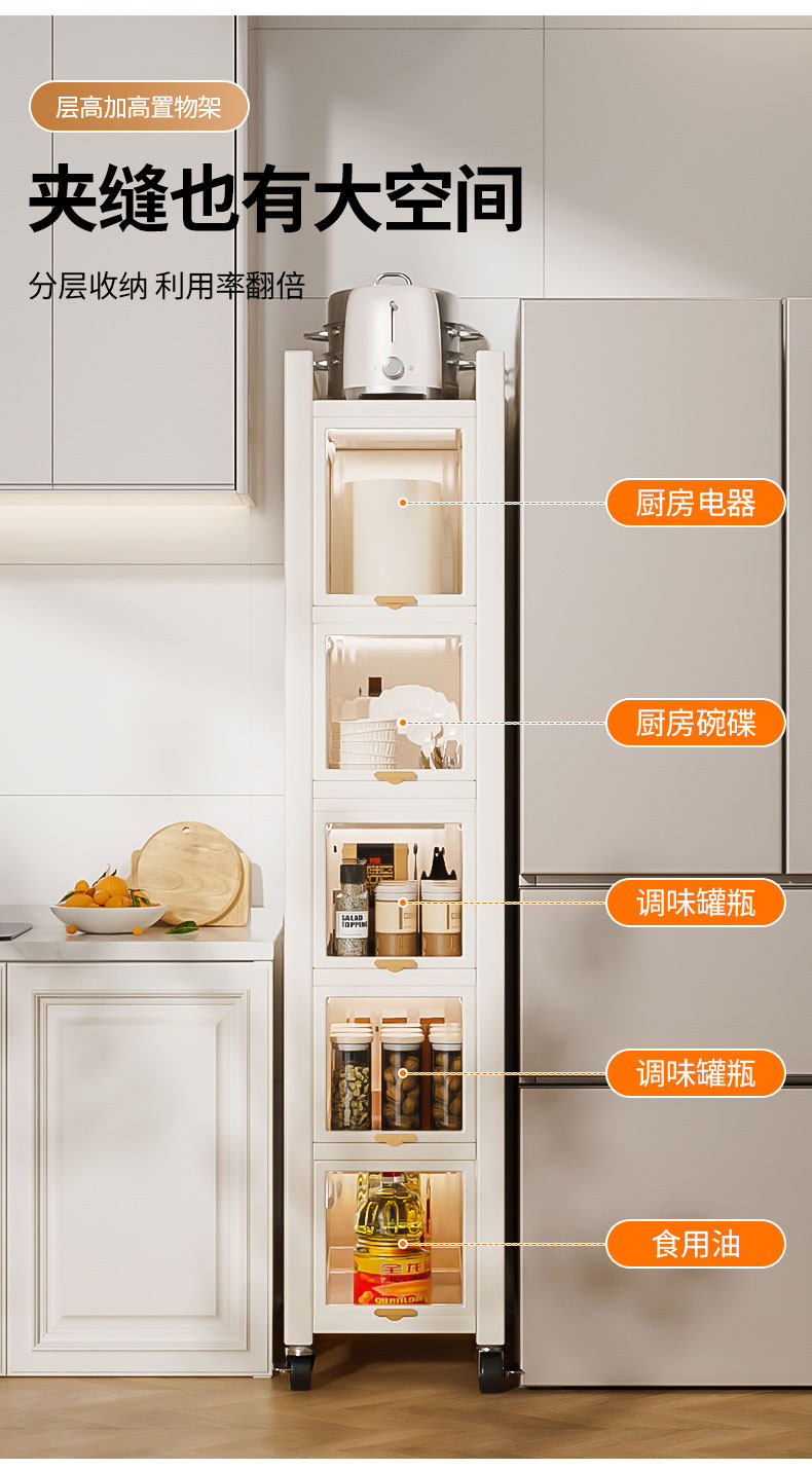 Storage Rack for Narrow Gaps Behind Kitchen Doors, Pull-Out Cabinet for Refrigerator Side, Storage Basket for Extremely Narrow Gaps in Bathroom