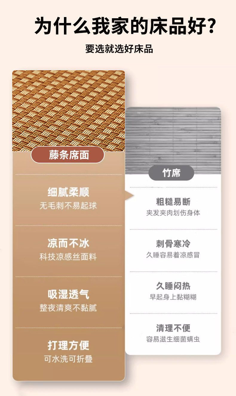 Cooling Mat, Dual-Use for Winter and Summer, Rattan Mat, Student Dormitory Mat, Suitable for Bunk Beds, Double-Sided, Can Be Used for Napping and Sleeping on the Floor