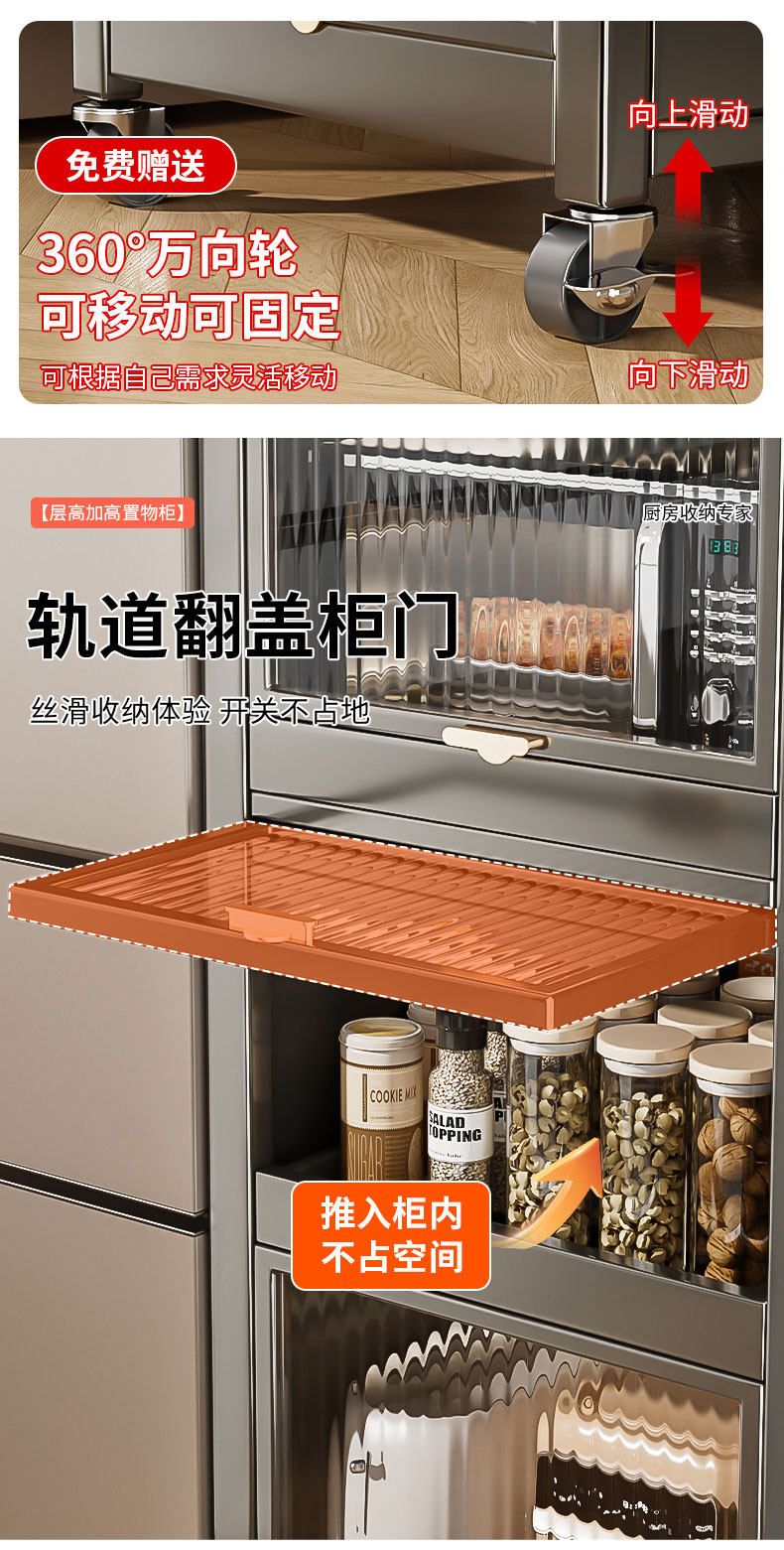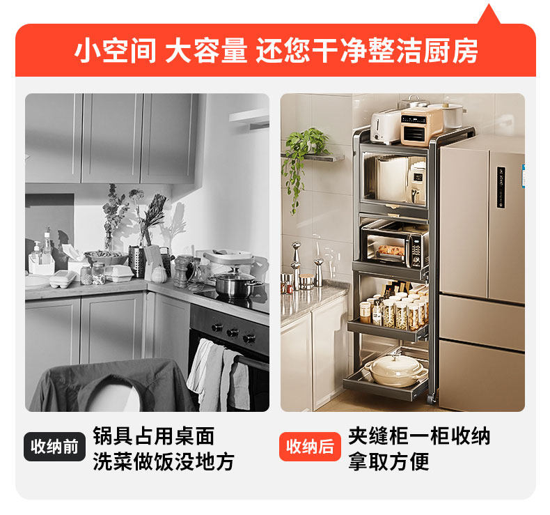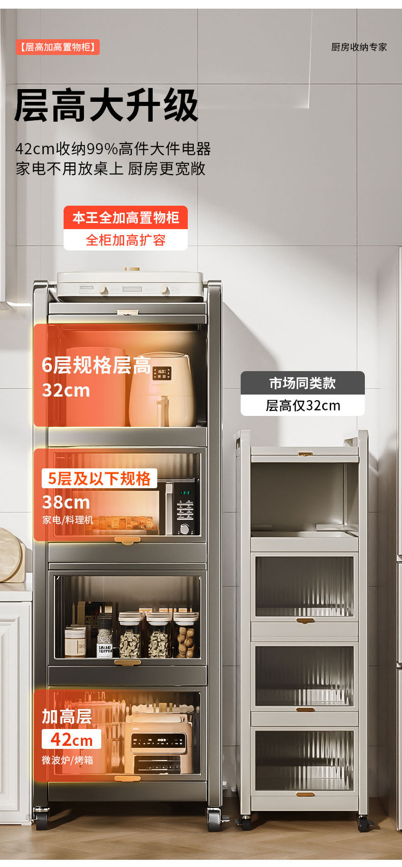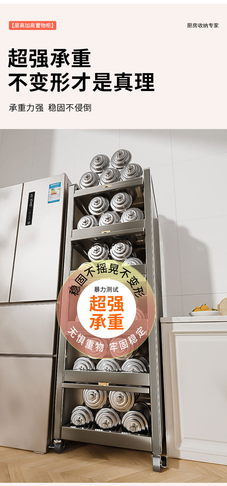 Kitchen Storage Rack, Floor-Standing, Multi-Layer, Multi-Functional, Behind-The-Door, Pull-Out Storage Cabinet, Gap Storage Rack for Rice Cooker