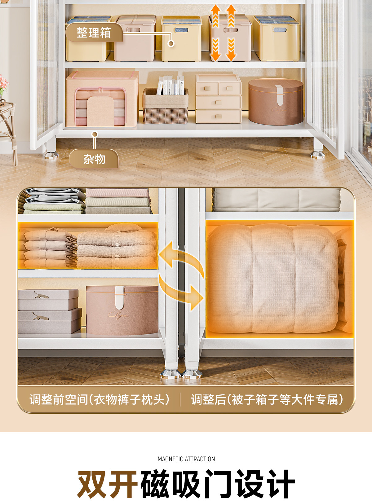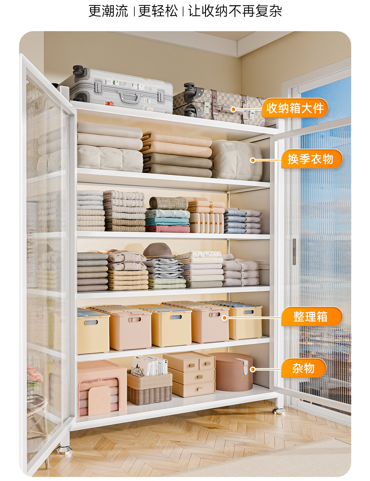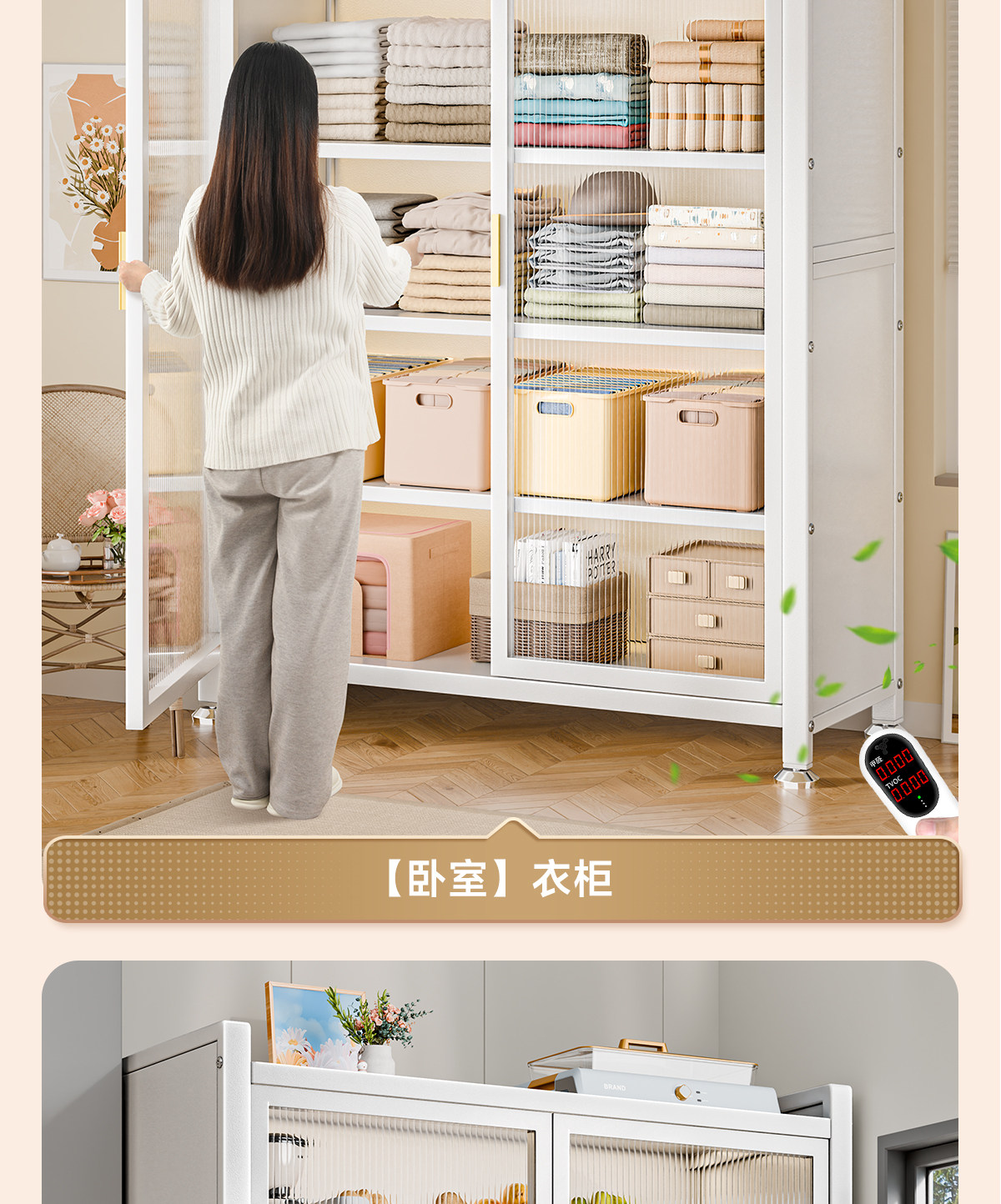 Multi-Layer Household Storage Rack, Bedroom Wardrobe, Large-Capacity Storage Rack, Snack Cabinet, Clothes Organizer with Flip Door