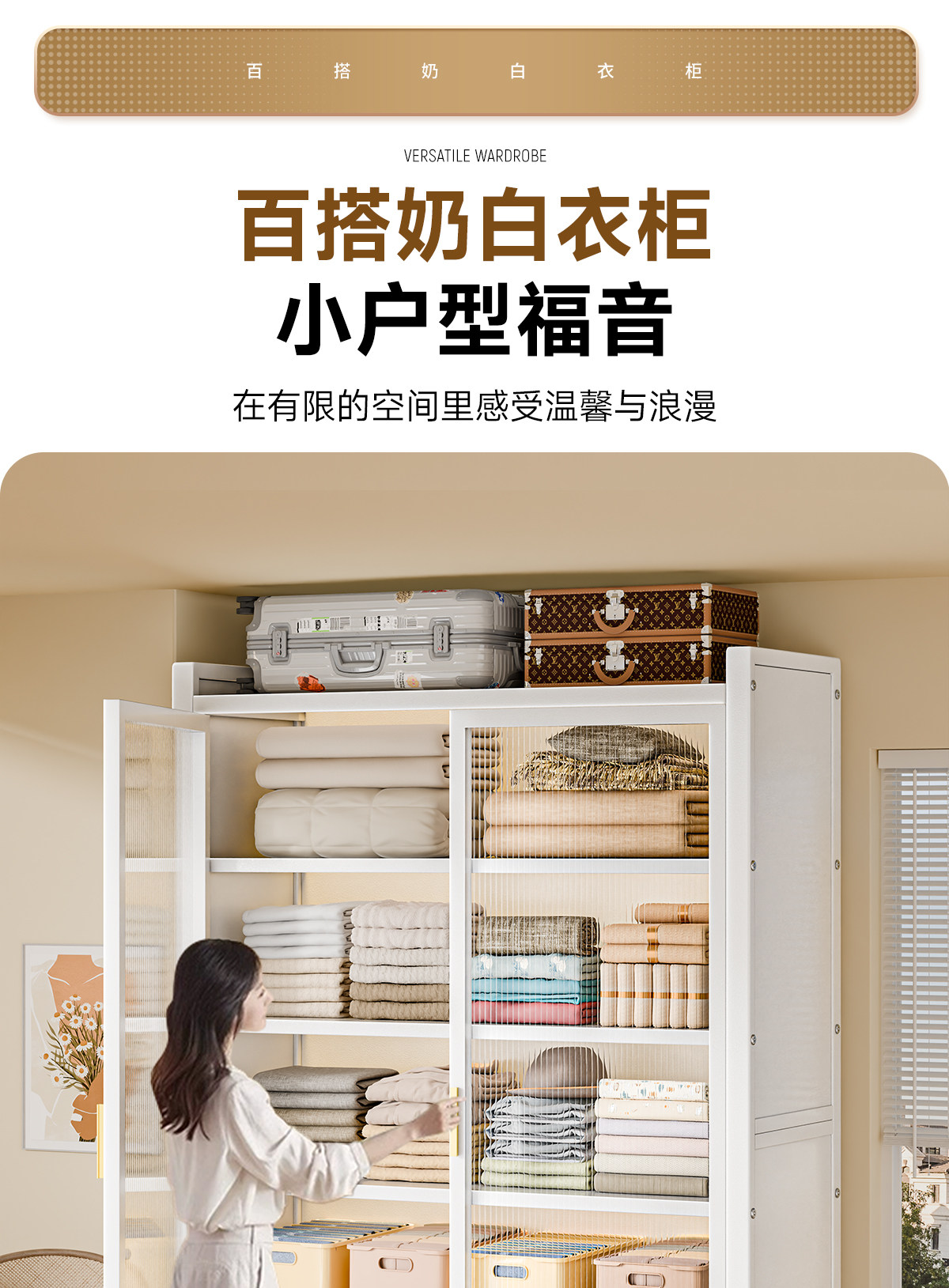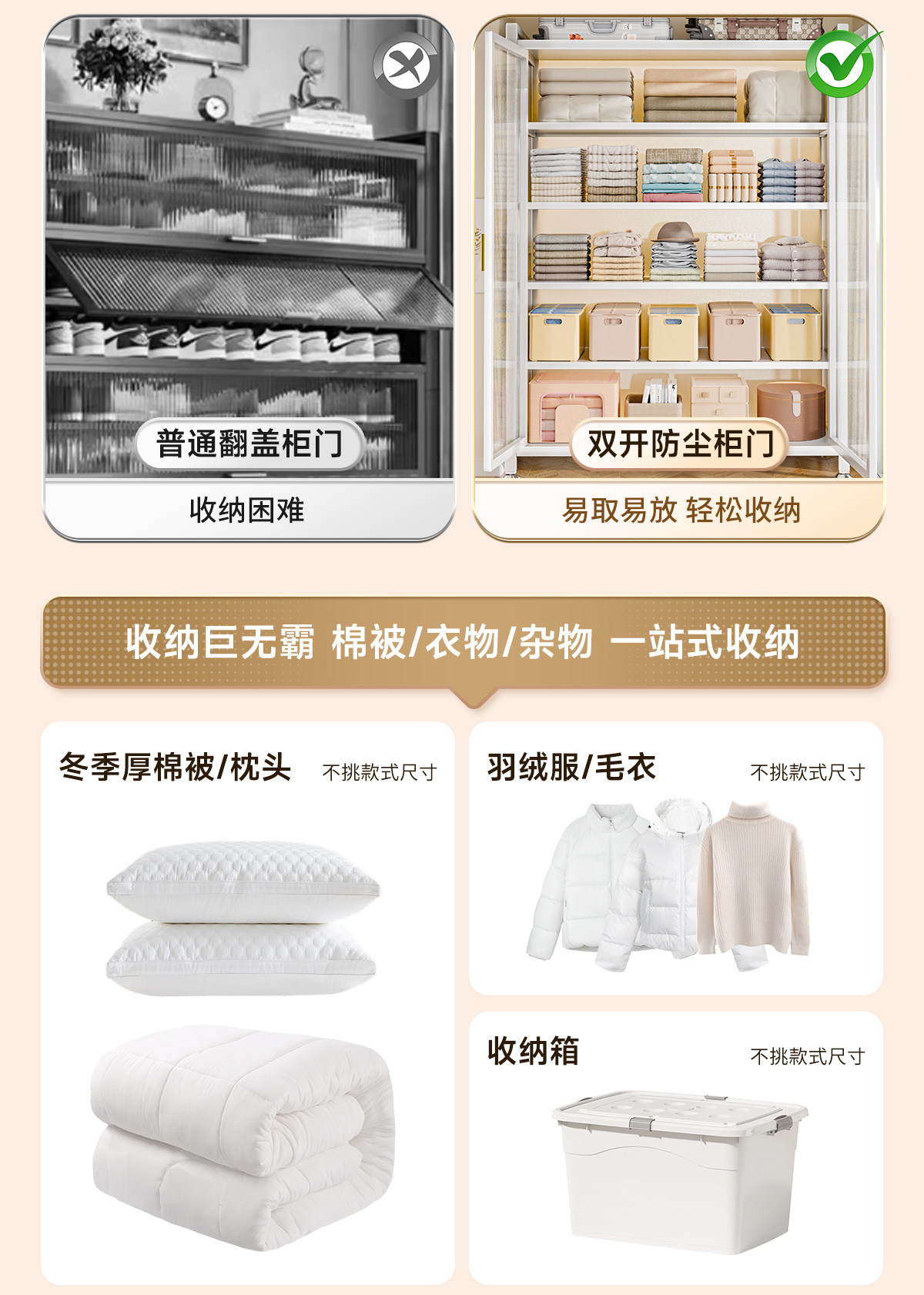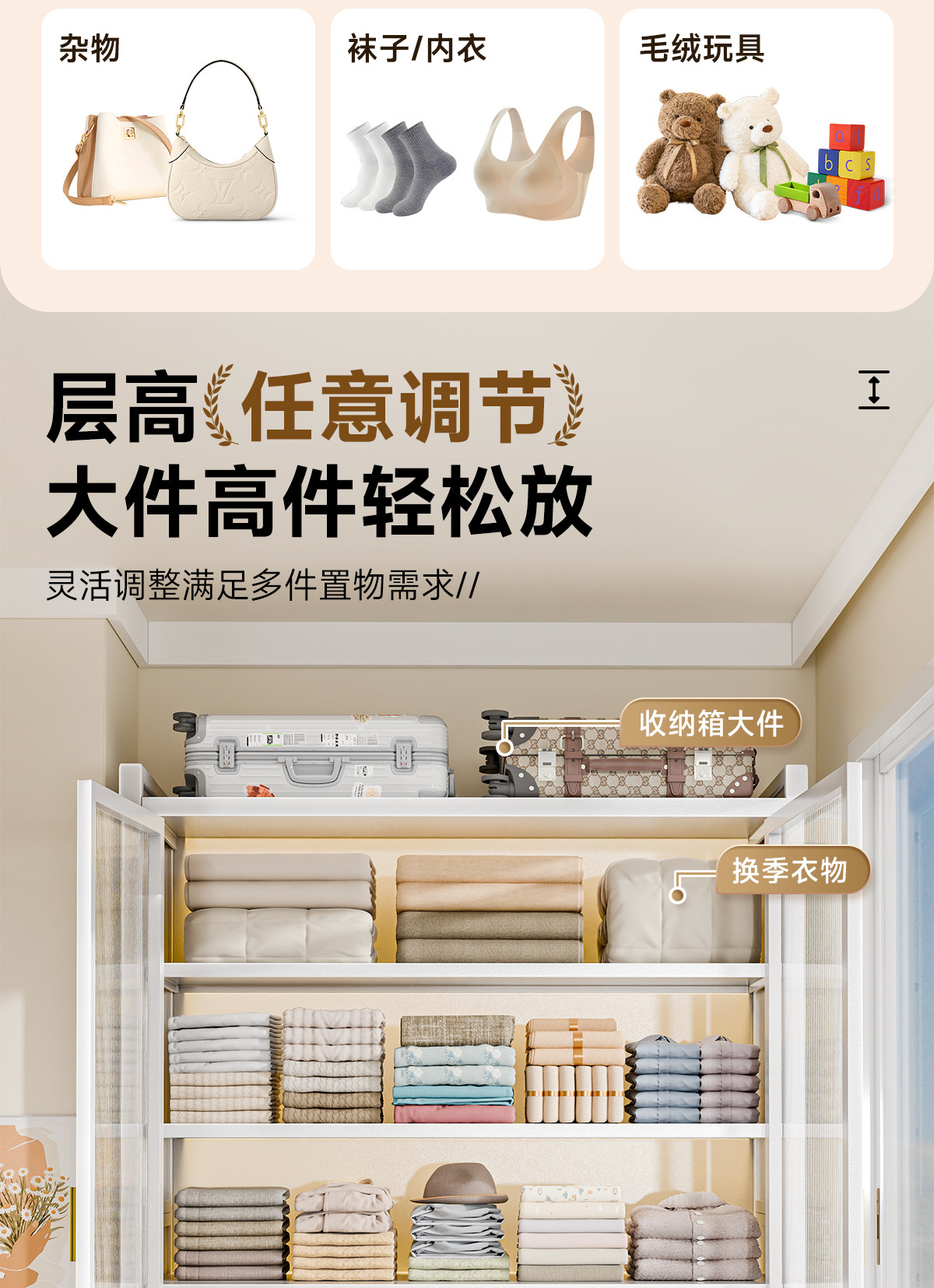 Multi-Layer Household Storage Rack, Bedroom Wardrobe, Large-Capacity Storage Rack, Snack Cabinet, Clothes Organizer with Flip Door