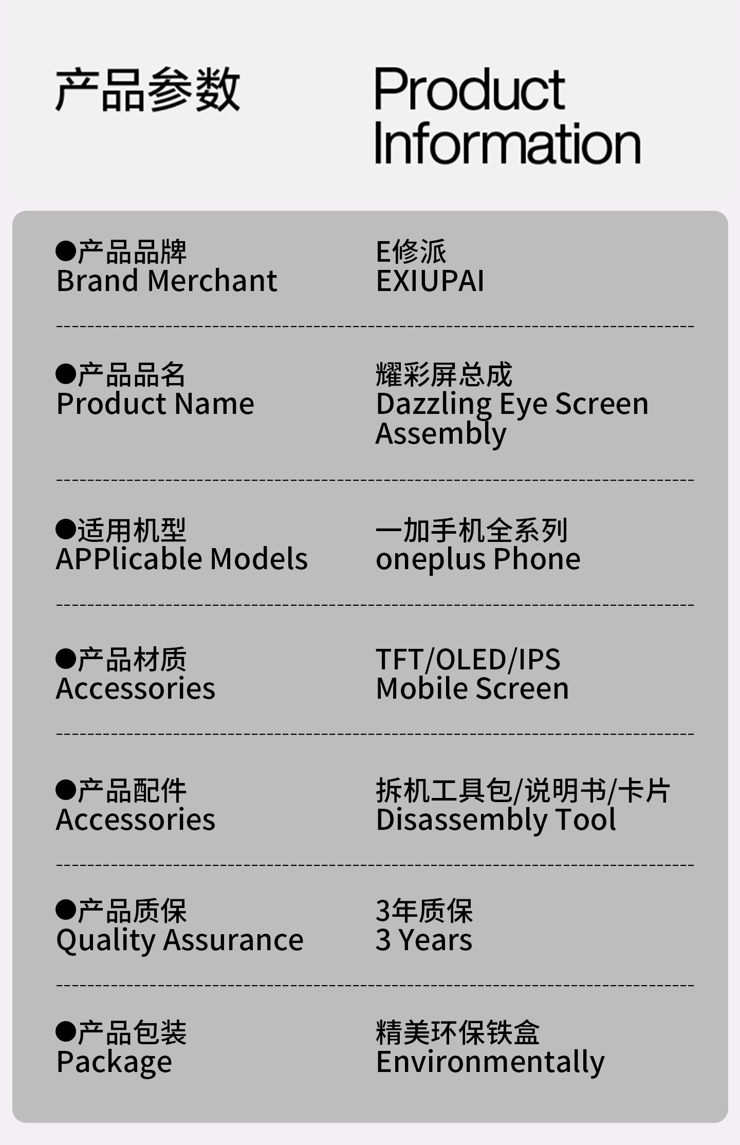 | Color Classification | Applicable to Oneplus 6[Face to Face Assembly]★Hd Tft★Free Tools + Tutorials + 3-Year Warranty,Applicable to Oneplus 6[Face to Face Assembly]★Yaocai Ips★Free Tools + Tutorials + 3-Year Warranty,Applicable to Oneplus 6[Face to Face Assembly]★Colorful Oled|Support Fingerprint★Tools + 3-Year Warranty,Applicable to Oneplus 6t[Face to Face Assembly]★Hd Tft★Free Tools + Tutorials + 3-Year Warranty,Applicable to Oneplus 6t[Face to Face Assembly]★Yaocai Ips★Free Tools + Tutorials + 3-Year Warranty,Applicable to Oneplus 6t[Face to Face Assembly]★Colorful Oled|Support Fingerprint★Tools + 3-Year Warranty,Applicable to Oneplus 7[Face to Face Assembly]★Hd Tft★Free Tools + Tutorials + 3-Year Warranty,Applicable to Oneplus 7[Face to Face Assembly]★Yaocai Ips★Free Tools + Tutorials + 3-Year Warranty,Applicable to Oneplus 7t[Face to Face Assembly]★Hd Tft★Free Tools + Tutorials + 3-Year Warranty,Applicable to Oneplus 7t[Face to Face Assembly]★Yaocai Ips★Free Tools + Tutorials + 3-Year Warranty,Applicable to Oneplus 7Pro[Face to Face Assembly]★Hd Tft★Free Tools + Tutorials + 3-Year Warranty,Applicable to Oneplus 7Pro[Face to Face Assembly]★Yaocai Ips★Free Tools + Tutorials + 3-Year Warranty,Applicable to Oneplus 7Tpro[Face to Face Assembly]★Hd Tft★Free Tools + Tutorials + 3-Year Warranty,Applicable to Oneplus 7Tpro[Face to Face Assembly]★Yaocai Ips★Free Tools + Tutorials + 3-Year Warranty,Applicable to Oneplus 8t[Face to Face Assembly]★Hd Tft★Free Tools + Tutorials + 3-Year Warranty,Applicable to Oneplus 8t[Face to Face Assembly]★Yaocai Ips★Free Tools + Tutorials + 3-Year Warranty,Applicable to Oneplus 8t[Face to Face Assembly]★Colorful Oled|Support Fingerprint★Free Tools + 3-Year Warranty,Applicable to Oneplus 9[Face to Face Assembly]★Hd Tft★Free Tools + Tutorials + 3-Year Warranty,Applicable to Oneplus 9[Face to Face Assembly]★Yaocai Ips★Free Tools + Tutorials + 3-Year Warranty,Applicable to Oneplus 9[Face to Face Assembly]★Colorful Oled|Support Fingerprint★Free Tools + 3-Year Warranty,Applicable to Oneplus 9R[Face to Face Assembly]★Hd Tft★Free Tools + Tutorials + 3-Year Warranty,Applicable to Oneplus 9R[Face to Face Assembly]★Yaocai Ips★Free Tools + Tutorials + 3-Year Warranty,Applicable to Oneplus 9R[Face to Face Assembly]★Colorful Oled|Support Fingerprint★Free Tools + 3-Year Warranty,Applicable to Oneplus 9Rt[Face to Face Assembly]★Hd Tft★Free Tools + Tutorials + 3-Year Warranty,Applicable to Oneplus 9Rt[Face to Face Assembly]★Yaocai Ips★Free Tools + Tutorials + 3-Year Warranty,Applicable to Oneplus 9Rt[Face to Face Assembly]★Colorful Oled|Support Fingerprint★Free Tools + 3-Year Warranty,Applicable to Oneplus 9Pro[Face to Face Assembly]★Hd Tft★Free Tools + Tutorials + 3-Year Warranty,Applicable to Oneplus 9Pro[Face to Face Assembly]★Yaocai Ips★Free Tools + Tutorials + 3-Year Warranty,Applicable to Oneplus 10R[Face to Face Assembly]★Hd Tft★Free Tools + Tutorials + 3-Year Warranty,Applicable to Oneplus 10R[Face to Face Assembly]★Yaocai Ips★Free Tools + Tutorials + 3-Year Warranty,Applicable to Oneplus 10R[Face to Face Assembly]★Colorful Oled|Support Fingerprint★Free Tools + 3-Year Warranty,Applicable to Oneplus 10t[Face to Face Assembly]★Hd Tft★Free Tools + Tutorials + 3-Year Warranty,Applicable to Oneplus 10t[Face to Face Assembly]★Yaocai Ips★Free Tools + Tutorials + 3-Year Warranty,Applicable to Oneplus 10Pro[Face to Face Assembly]★Hd Tft★Free Tools + Tutorials + 3-Year Warranty,Applicable to Oneplus 10Pro[Face to Face Assembly]★Yaocai Ips★Free Tools + Tutorials + 3-Year Warranty,Applicable to Oneplus 11[Face to Face Assembly]★Hd Tft★Free Tools + Tutorials + 3-Year Warranty,Applicable to Oneplus 11[Face to Face Assembly]★Yaocai Ips★Free Tools + Tutorials + 3-Year Warranty,Applicable to Oneplus 11R[Face to Face Assembly]★Hd Tft★Free Tools + Tutorials + 3-Year Warranty,Applicable to Oneplus 11R[Face to Face Assembly]★Yaocai Ips★Free Tools + Tutorials + 3-Year Warranty,Applicable to Oneplus Ace[Face to Face Assembly]★Hd Tft★Free Tools + Tutorials + 3-Year Warranty,Applicable to Oneplus Ace[Face to Face Assembly]★Yaocai Ips★Free Tools + Tutorials + 3-Year Warranty,Applicable to Oneplus Ace[Face to Face Assembly]★Colorful Oled|Support Fingerprint★Free Tools + 3-Year Warranty,Applicable to Oneplus Ace Pro[Face to Face Assembly]★Hd Tft★Free Tools + Tutorials + 3-Year Warranty,Applicable to Oneplus Ace Pro[Face to Face Assembly]★Yaocai Ips★Free Tools + Tutorials + 3-Year Warranty,Applicable to Oneplus Ace2[Face to Face Assembly]★Hd Tft★Free Tools + Tutorials + 3-Year Warranty,Applicable to Oneplus Ace2[Face to Face Assembly]★Yaocai Ips★Free Tools + Tutorials + 3-Year Warranty,Applicable to Oneplus Ace2V[Face to Face Assembly]★Hd Tft★Free Tools + Tutorials + 3-Year Warranty,Applicable to Oneplus Ace2V[Face to Face Assembly]★Yaocai Ips★Free Tools + Tutorials + 3-Year Warranty,Applicable to Oneplus Ace2V[Face to Face Assembly]★Colorful Oled|Support Fingerprint★Free Tools + 3-Year Warranty,Applicable to Oneplus Ace2Pro[Curved Surface Assembly]★Colorful Oled|Support Fingerprint★Tools + 3-Year Warranty,Applicable to Oneplus Ace3[Curved Surface Assembly]★Colorful Oled|Support Fingerprint★Tools + 3-Year Warranty |