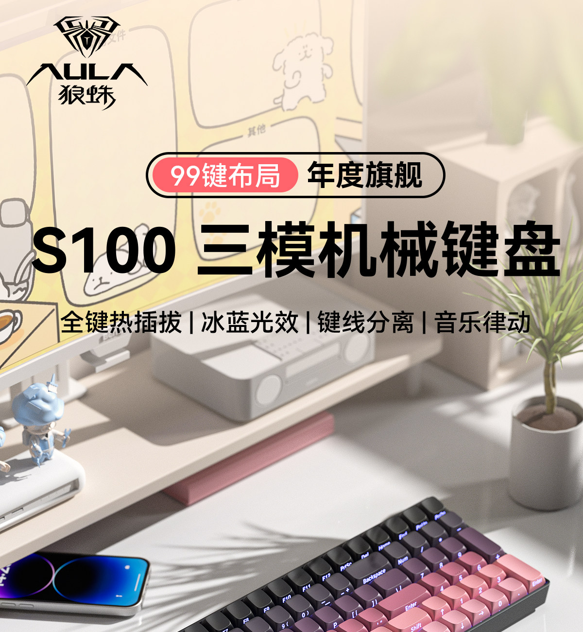 Wolf Spider S100 Wireless Three-Mode Mechanical Keyboard and Mouse Set for E-Sports Gaming, Bluetooth, Office, Computer, Tablet, Desktop