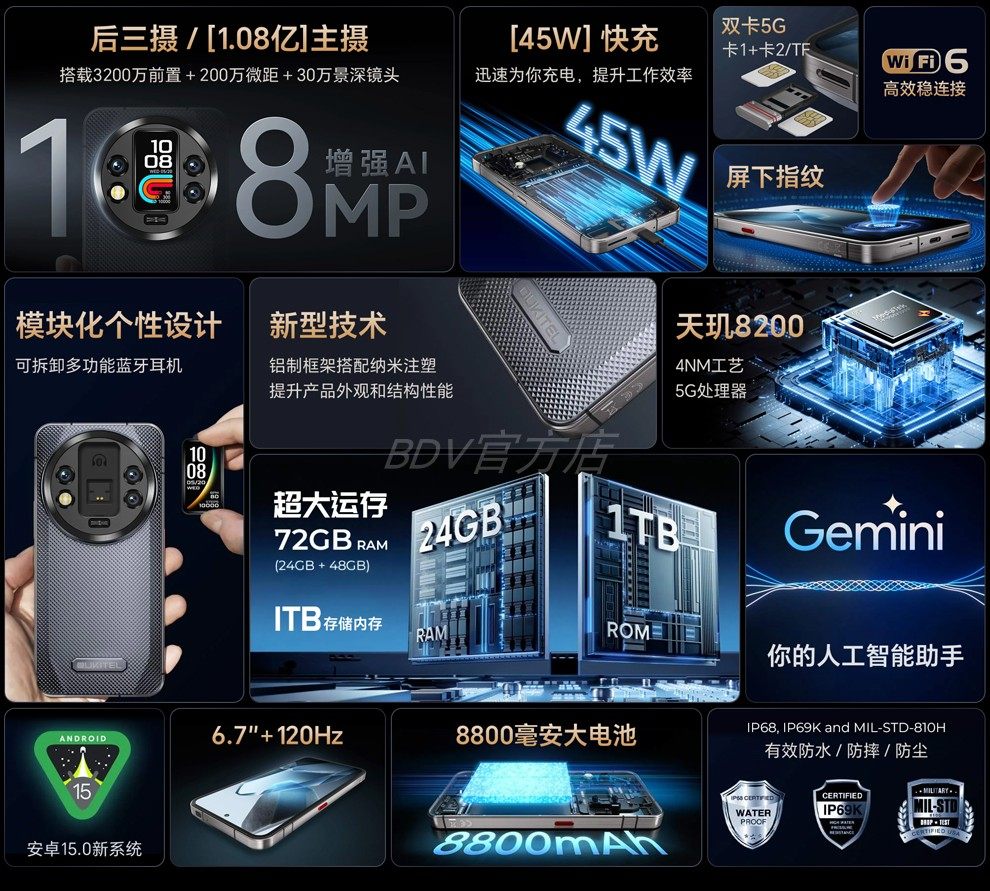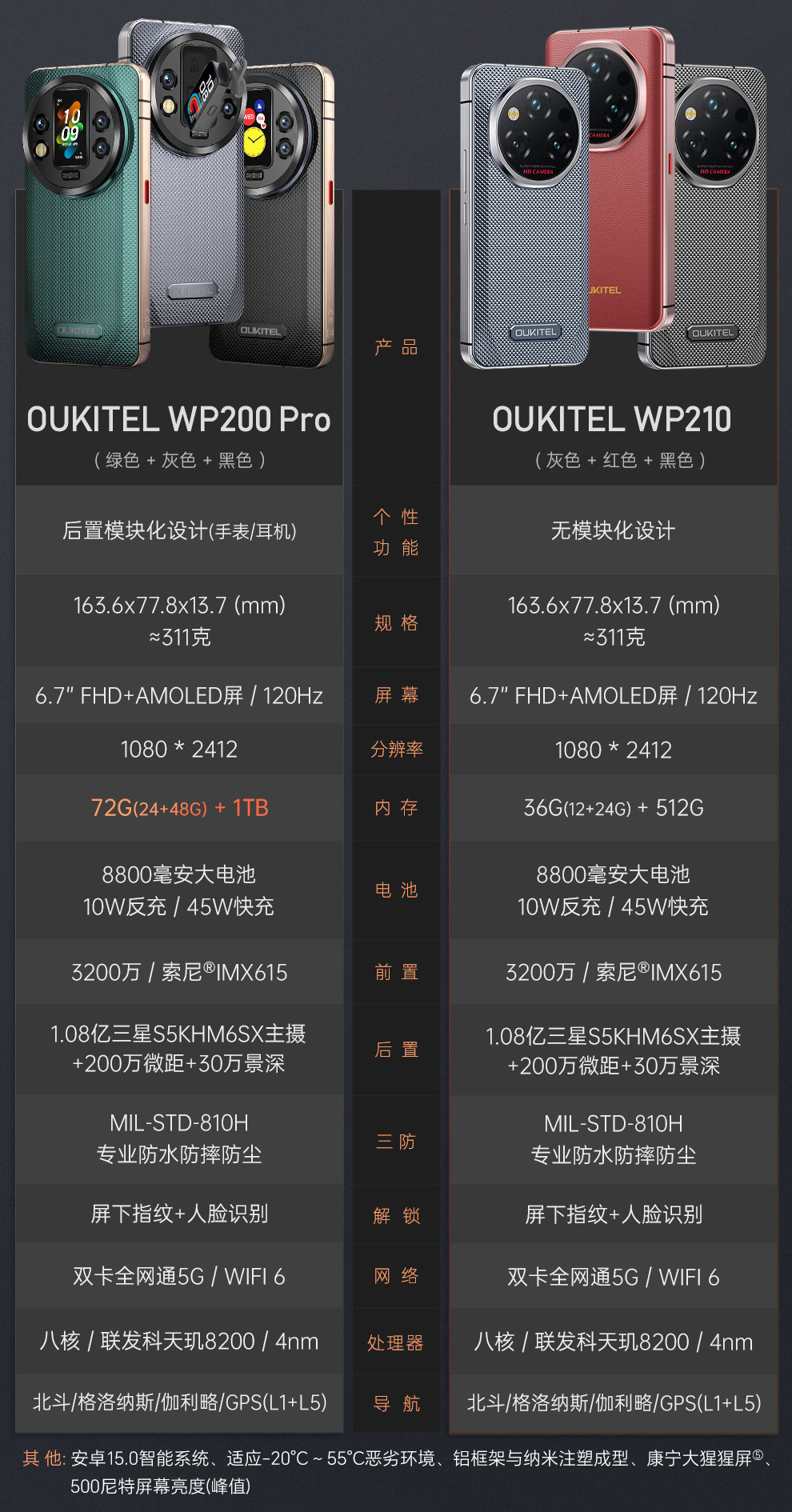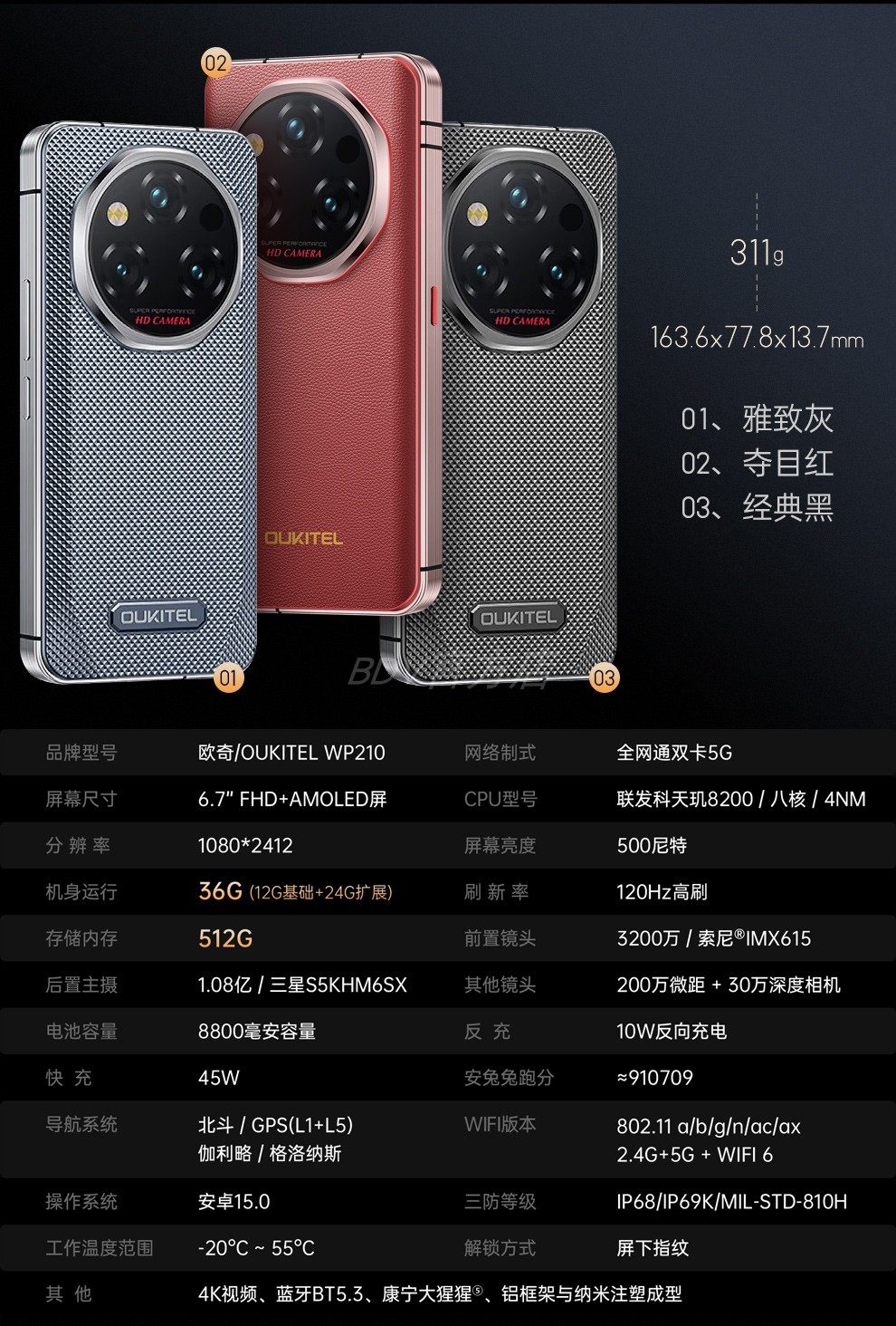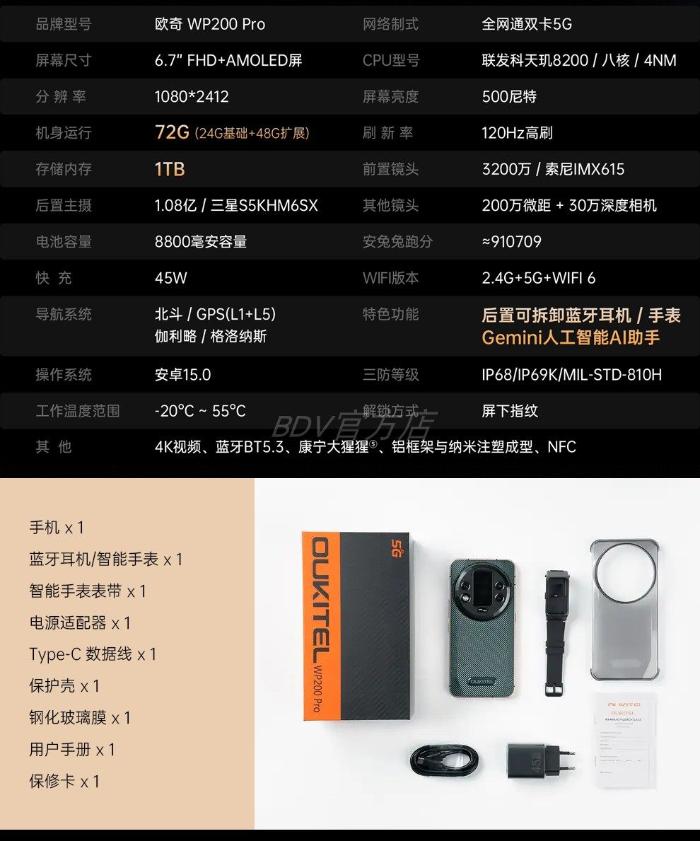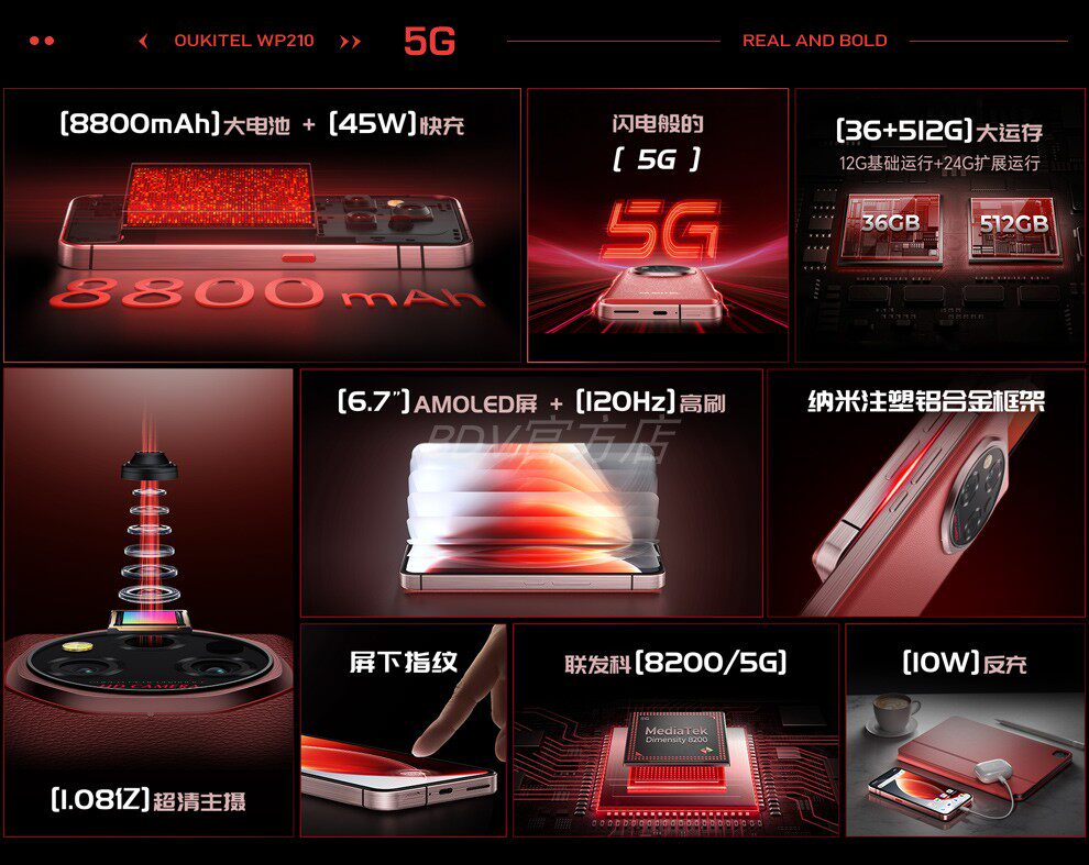 Ouktei Wp210 Rugged Smartphone 5g Dual Sim Thin Waterproof Large Memory 1Tb Memory International Version