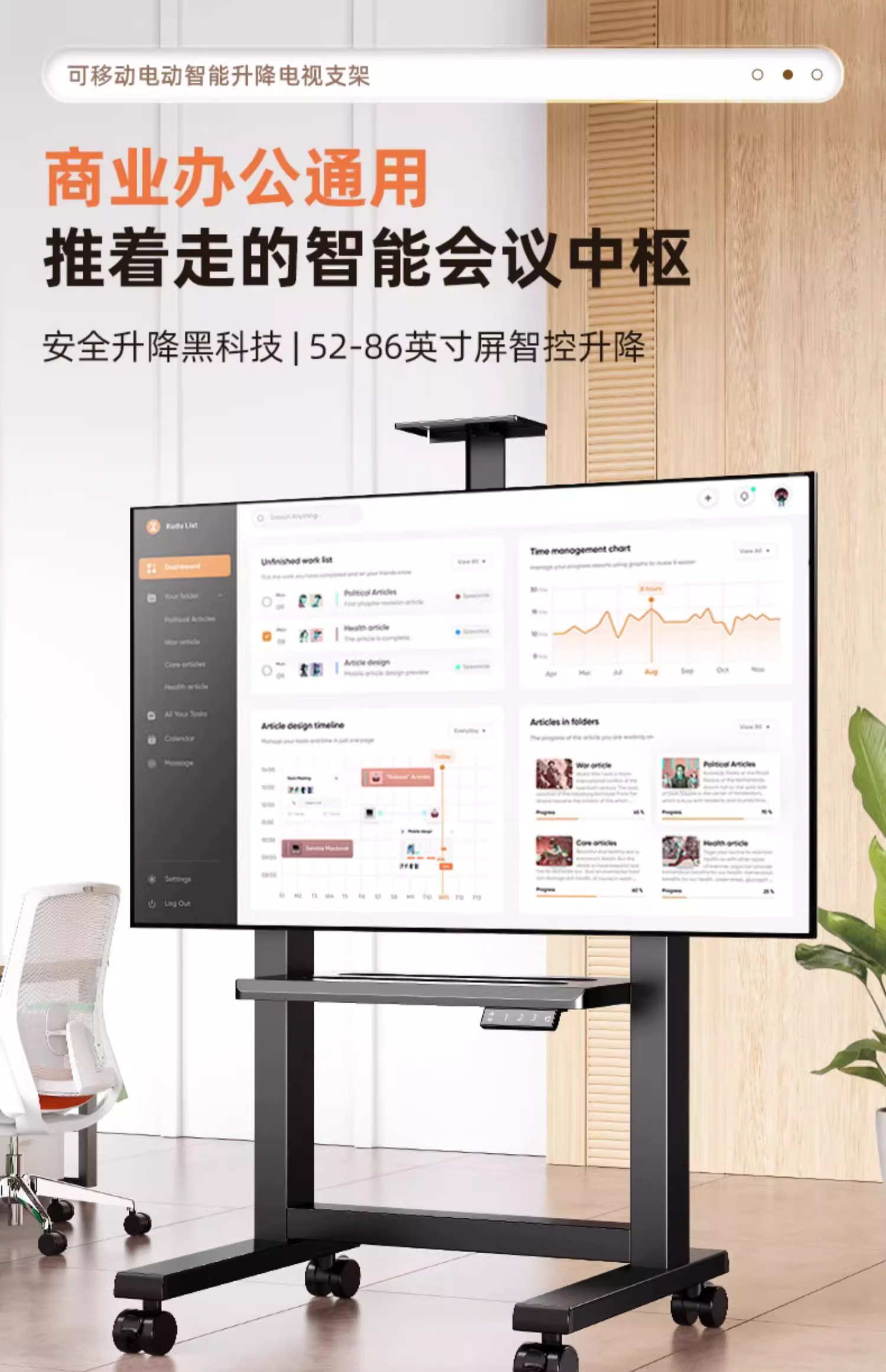 Remote-Controlled Adjustable Electric Tv Mobile Floor Stand 32-86inch Floor-Standing Conference All-In-One Machine Mount