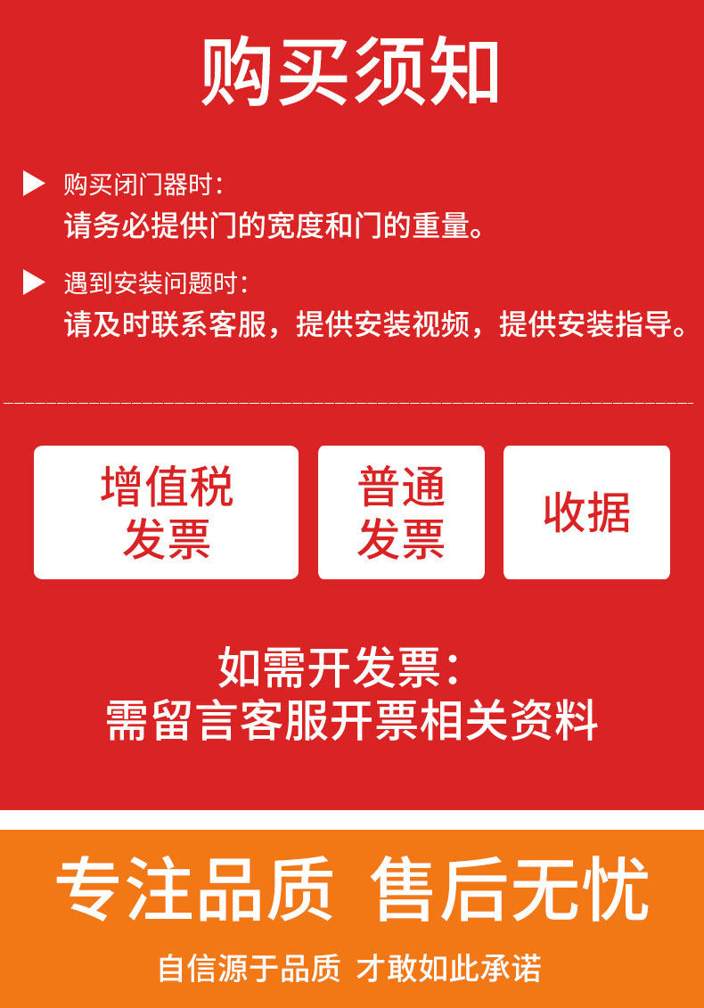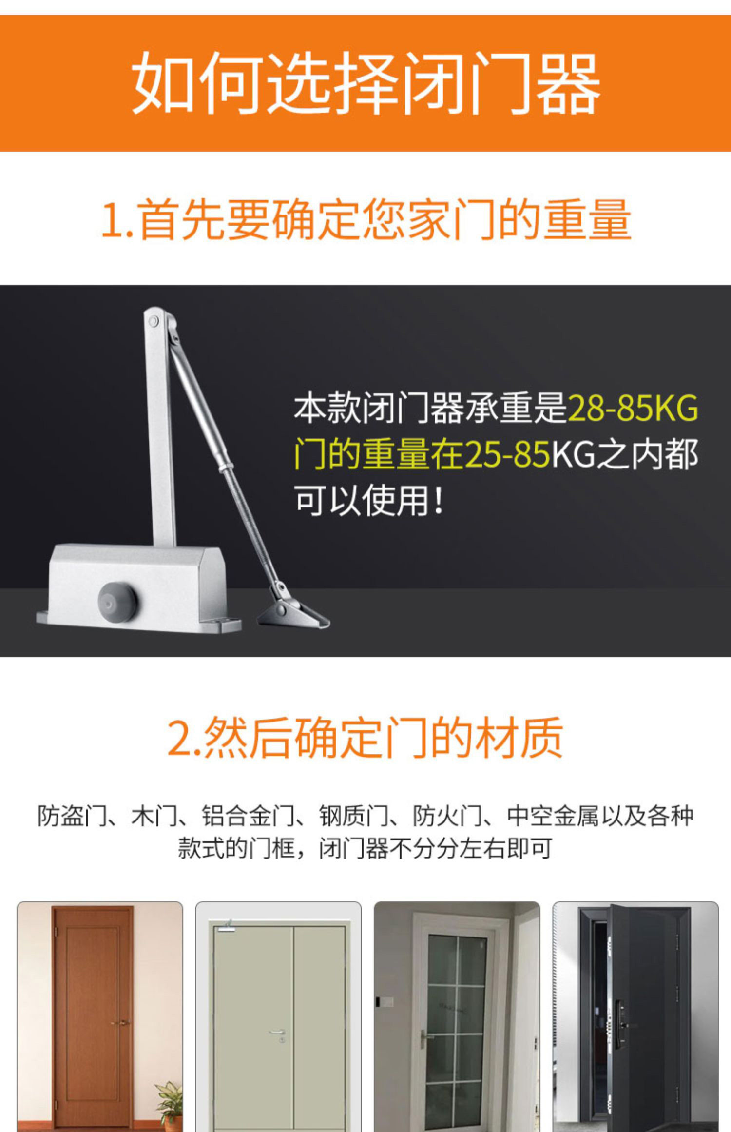 | Color Classification | Made in China, Direct from the Factory. 10-Year Quality Guarantee. Bulk Discounts Available. Contact Customer Service for Details,[Recommended Model]Small Size, Non-Positioning / Suitable for 25-65kg Doors / 10-Year Replacement Guarantee,[Recommended Model]Small Size 90 Degree Positioning / 25-65kg Door Applicable / 10 Years Replacement,[Recommended Model]Large Size, Non-Positioning / Suitable for 65-85kg Doors / 10-Year Replacement Guarantee,[Recommended Model]Large 90-Degree Positioning / Suitable for 65-85kg Doors / 10-Year Replacement,[Recommended Model]Extra Large Non-Positioning / Suitable for 85-120kg Doors / 10-Year Replacement,[Recommended Model]Extra Large 90 Degree Positioning / Suitable for 85-120kg Doors / 10 Years Replacement,[Star Model]Small Size, No Fixed Placement / Suitable for 25-65kg Doors / Lifetime Replacement Guarantee,[Star Model]Small Size 90 Degree Positioning / 25-65kg Door Applicable / Lifetime Replacement,[Star Model]Large Size, Non-Positioning / Fits 65-85kg Doors / Lifetime Replacement Guarantee,[Star Model]Large 90-Degree Positioning / Suitable for 65-85kg Doors / Lifetime Replacement,[Star Model]Extra Large Non-Positioning / Suitable for 85-120kg Doors / Lifetime Replacement,[Star Model]Extra Large 90 Degree Positioning / Suitable for 85-120kg Doors / Lifetime Replacement,[Recommended Model]Matt Black Small Size Not Fixed/ 25-65kg Doors Applicable/10 Years Replacement,[Recommended Model]Matt Black Small Size 90 Degree Positioning / Suitable for 25-65kg Doors / 10 Years Replacement,[Recommended Model]Matt Black Large Size Not Fixed/ 65-85kg Doors Applicable/10 Years Replacement,[Recommended Model]Matt Black Large Size 90 Degree Positioning / Suitable for 65-85kg Doors / 10 Years Replacement,[Recommended Model]Matt Black Extra Large Non-Positioning / Suitable for 85-120kg Doors / 10-Year Replacement,[Recommended Model]Matt Black Extra Large 90 Degree Positioning / Suitable for 85-120kg Doors / 10 Years Replacement,[Star Model]Matt Black Small Size Not Fixed/ 25-65kg Doors Applicable/Lifetime Replacement,[Star Model]Matt Black Small Size 90 Degree Positioning / Suitable for 25-65kg Doors / Lifetime Replacement,[Star Model]Matt Black Large Size Not Fixed/ 65-85kg Doors Applicable/Lifetime Replacement,[Star Model]Matt Black Large Size 90 Degree Positioning / Suitable for 65-85kg Doors / Lifetime Replacement,[Star Model]Matt Black Extra Large Size Not Fixed/ 85-120kg Doors Applicable/Lifetime Replacement,[Star Model]Matt Black Extra Large 90 Degree Positioning / Suitable for 85-120kg Doors / Lifetime Replacement,[Hidden Door Closer]Circular Knitting Machine Model (Hydraulic Buffer) 65Kg/Lifetime Replacement,[Hidden Door Closer]Square Machine Model (Hydraulic Buffer) 75Kg/Lifetime Replacement |