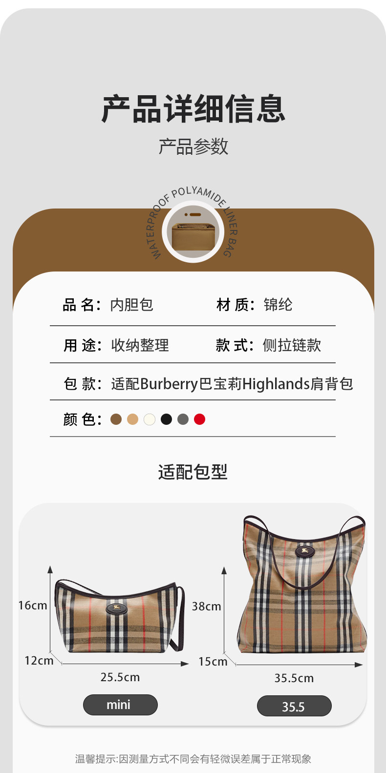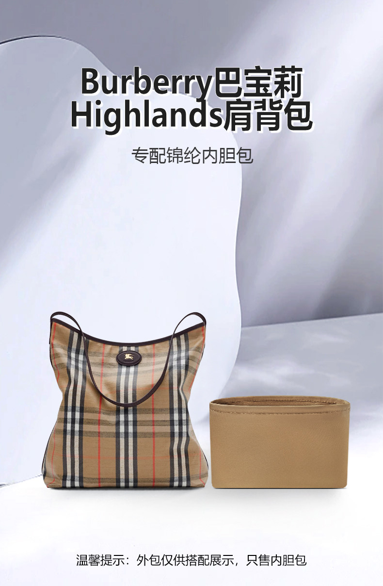 Suitable for the New Burberry Highlands Shoulder Bag with a Lightweight Nylon Inner Lining