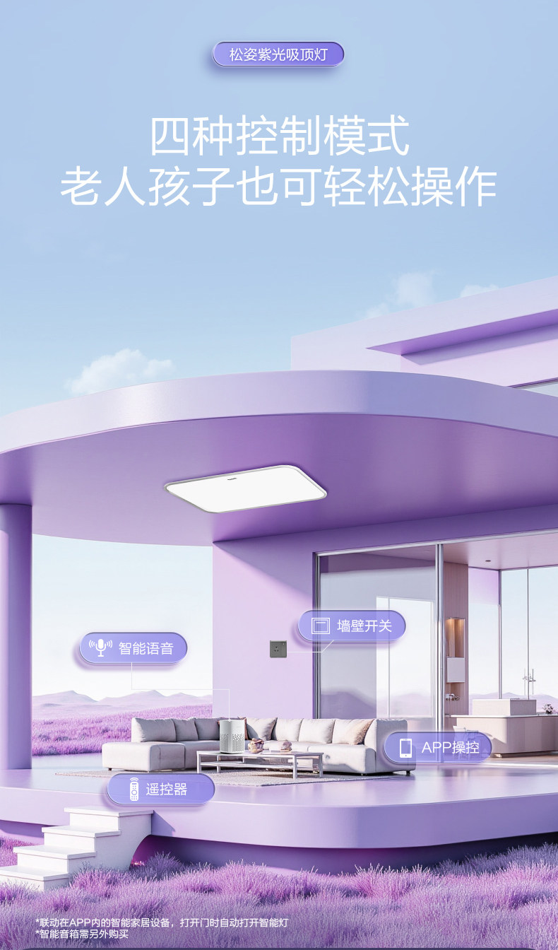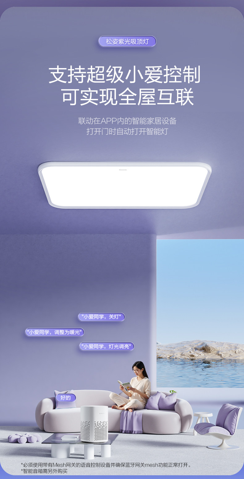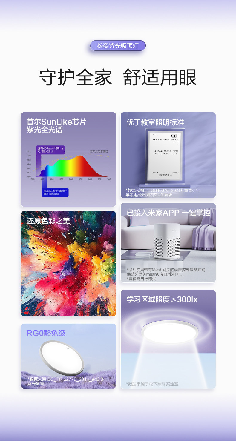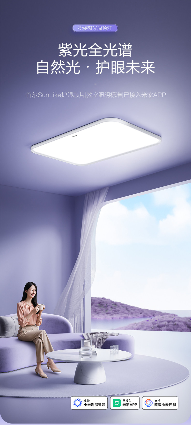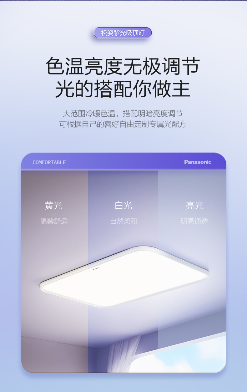 Panasonic Songzi Purple Light Ceiling Lamp Living Room Main Light Full Spectrum Eye Protection Bedroom Light Smart Lighting New Model