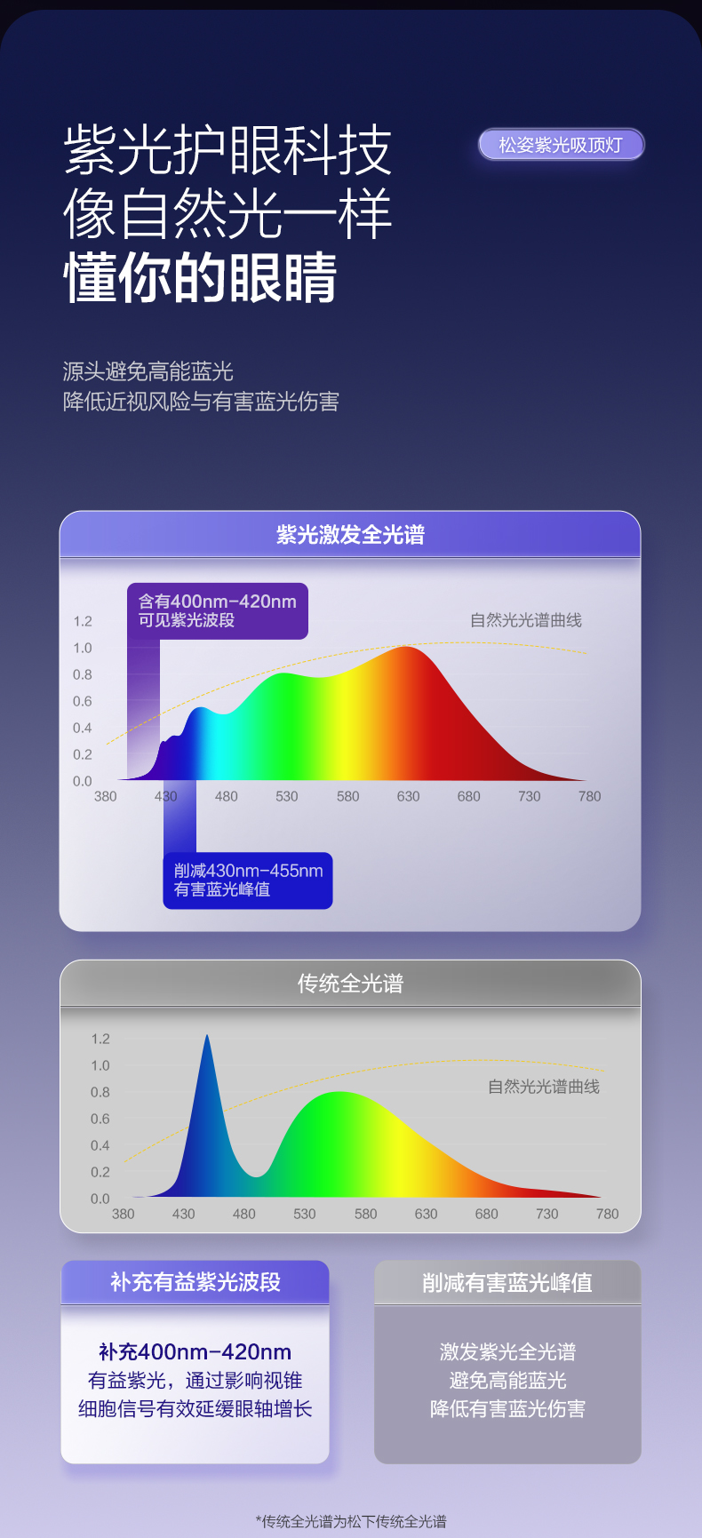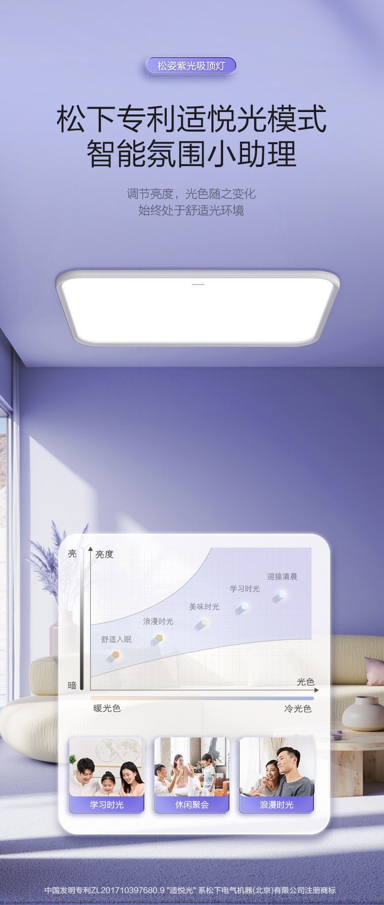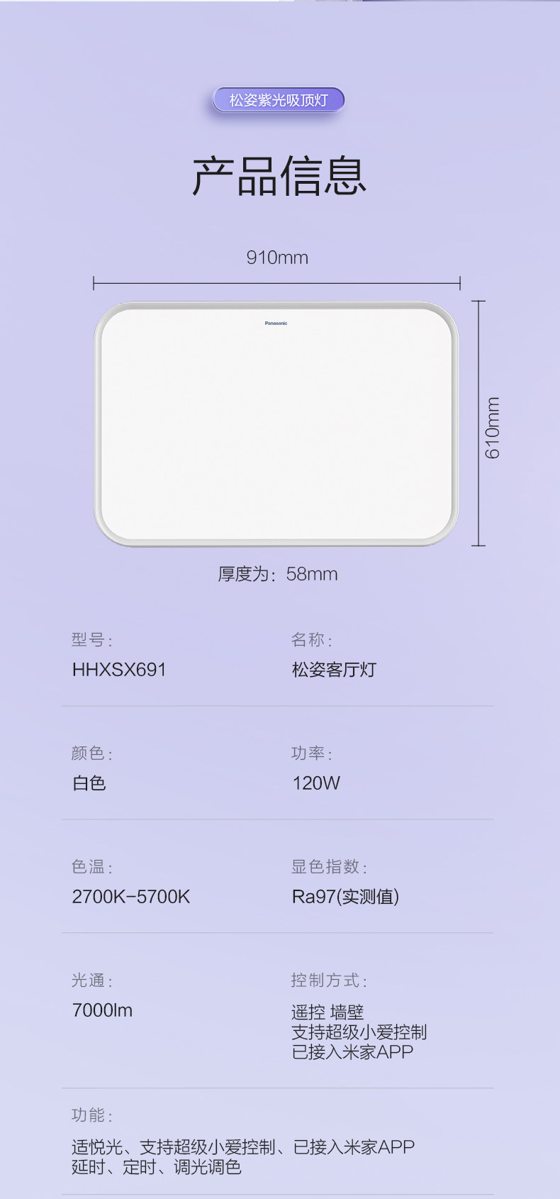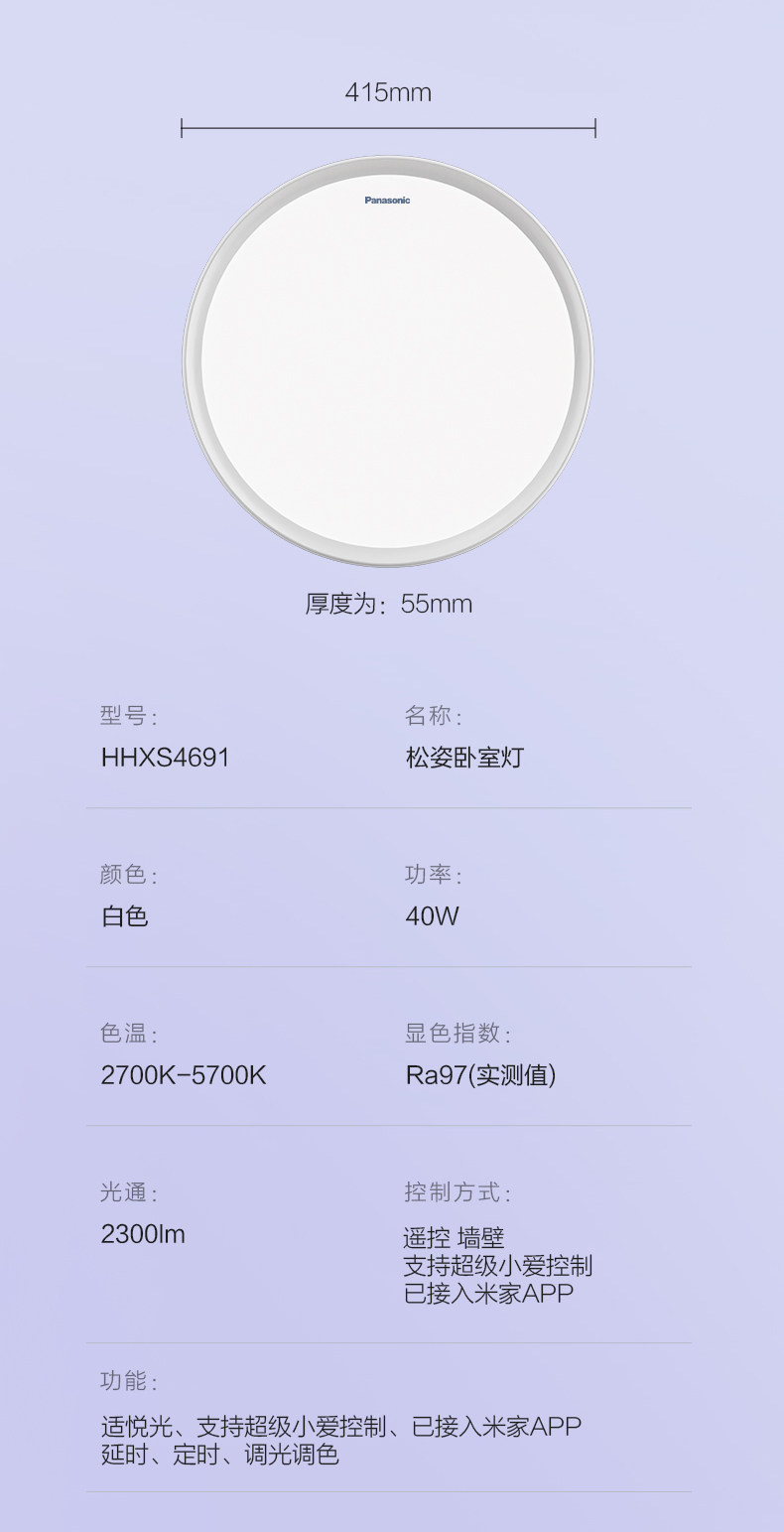 Panasonic Songzi Purple Light Ceiling Lamp Living Room Main Light Full Spectrum Eye Protection Bedroom Light Smart Lighting New Model