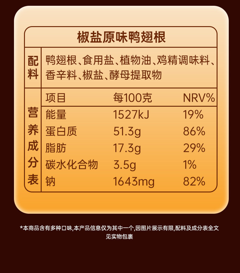 | Taste | 【Salt & Pepper Combo】Duck Frame + Duck Drumettes,[Spicy Combination] Duck Rack + Duck Shanks,Sweet and Spicy Duck Rack + Salt and Pepper Duck Legs,Sweet and Spicy Duck Rack + Spicy Duck Drumsticks,Sweet and Spicy Duck Rack + Vine Pepper Duck Drumstick,Spicy Duck Rack + Salt and Pepper Duck Shank,Spicy Duck Rack + Vine Pepper Duck Shank,Salt and Pepper Duck Rack + Spicy Duck Shank,Salt and Pepper Duck Rack + Vine Pepper Duck Shank |
