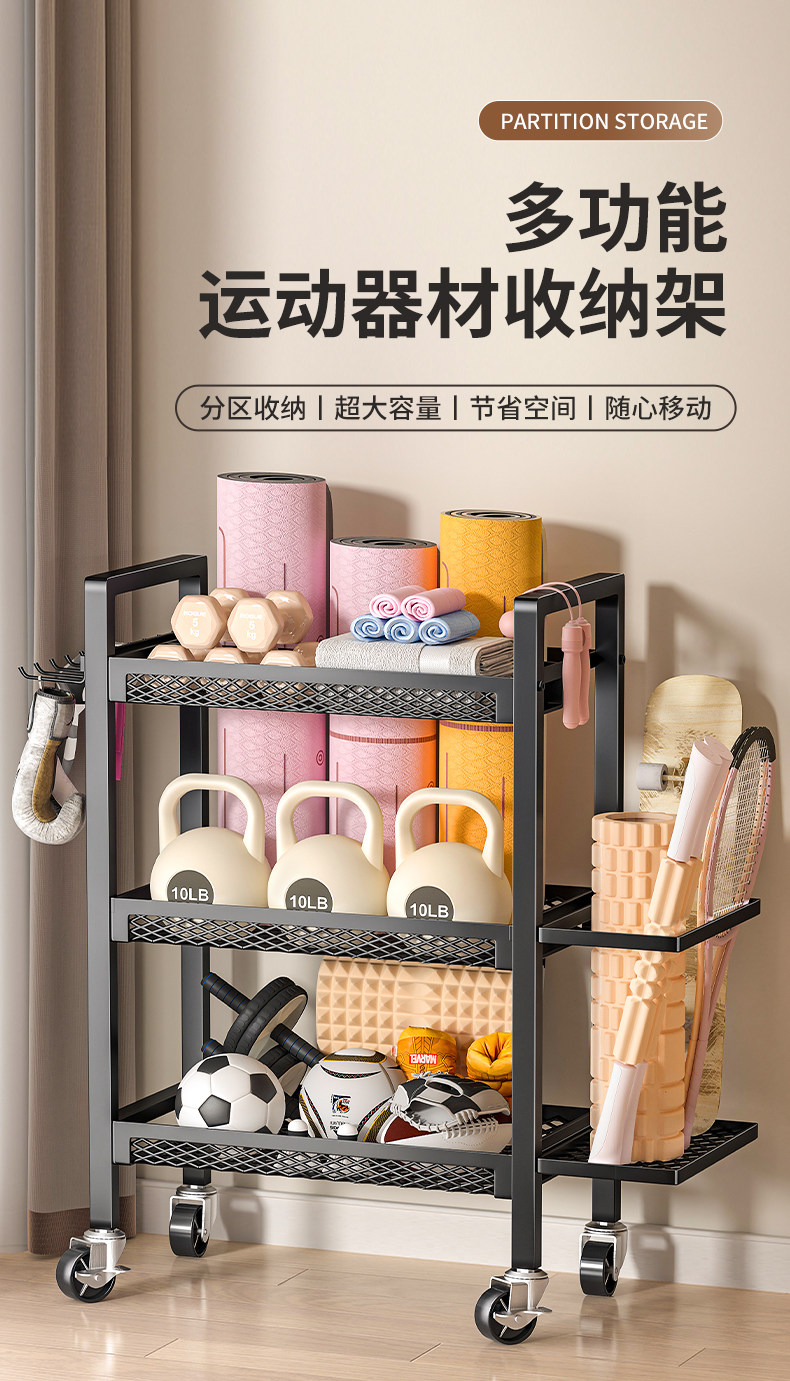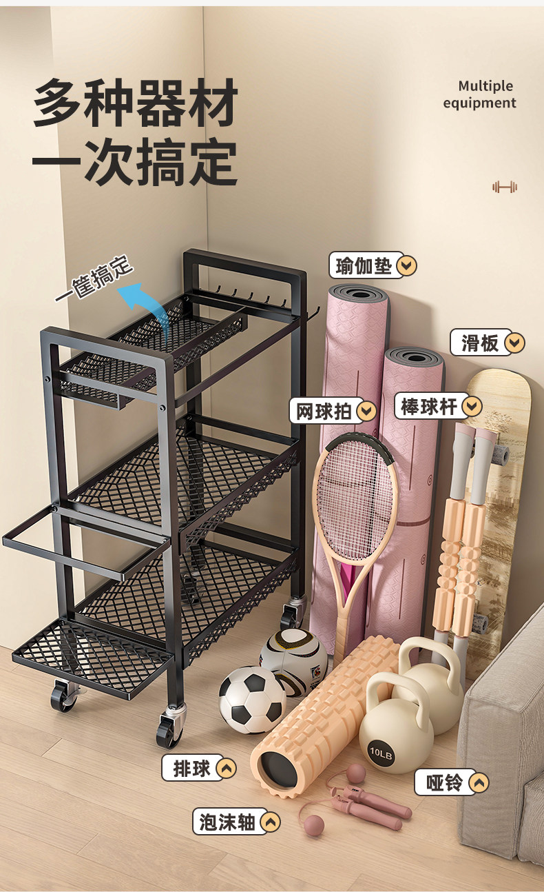 Fitness Equipment Storage, Yoga Mat Storage Basket, Home Sports Equipment Storage Rack, Storage Solution for Sporting Goods