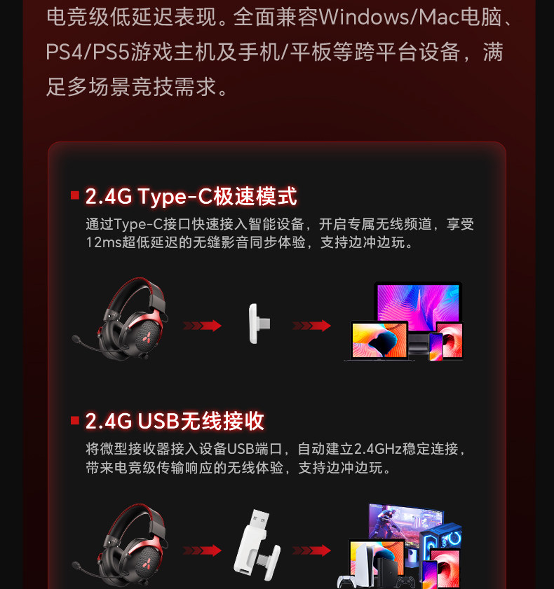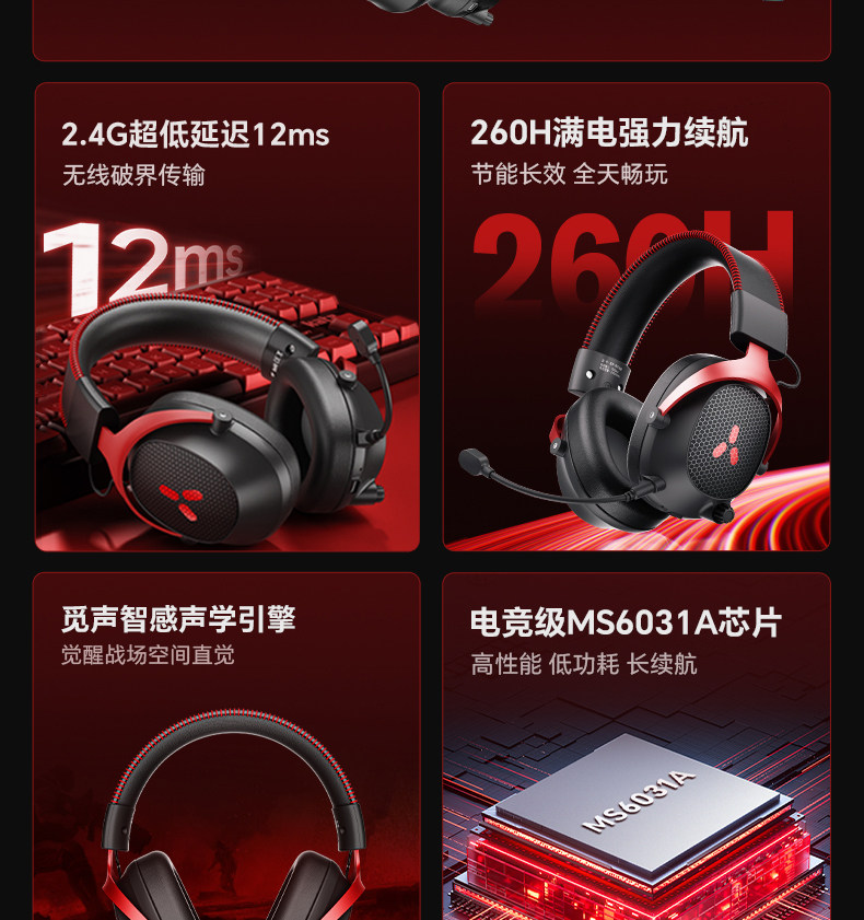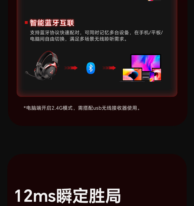Misheng Alpha 2.4g Three-Mode Wireless Gaming Headset, Head-Mounted Bluetooth, Dedicated for Desktop Computers and Fps E-Sports