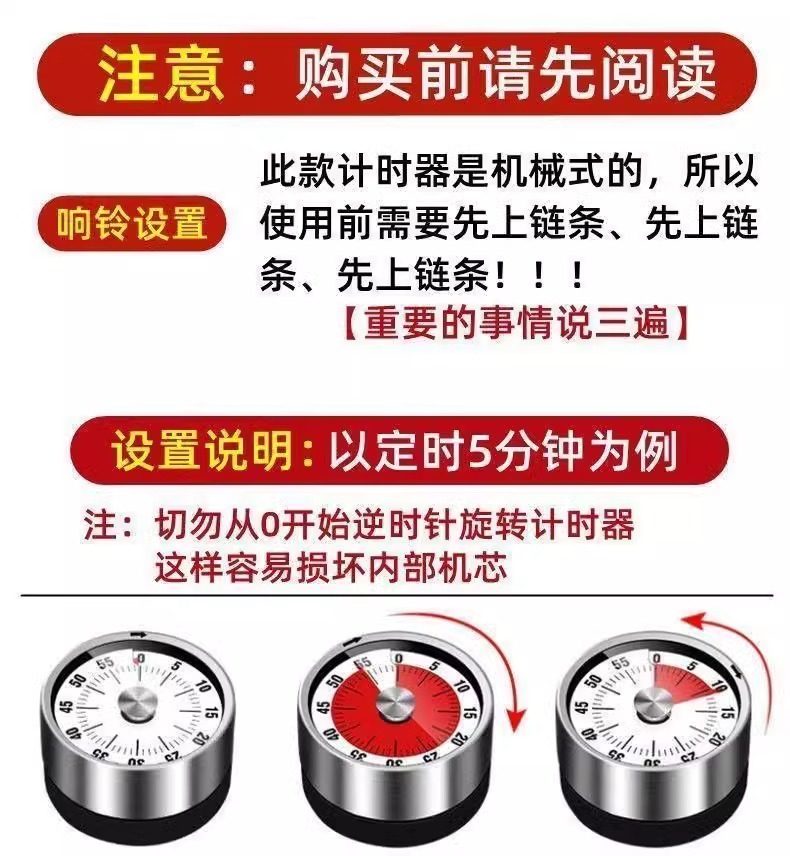 Visual Timer Kitchen Mechanical Timer Learning Children's Kitchen Reminder Magnetic Cooking Stopwatch Alarm Clock