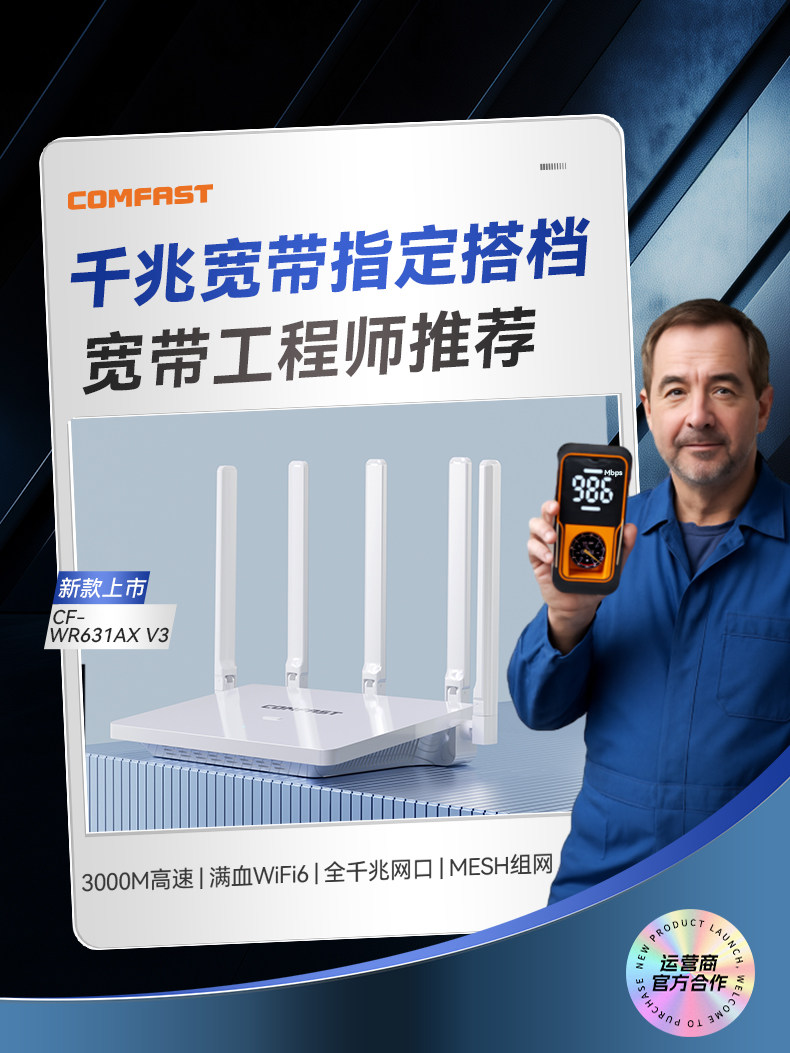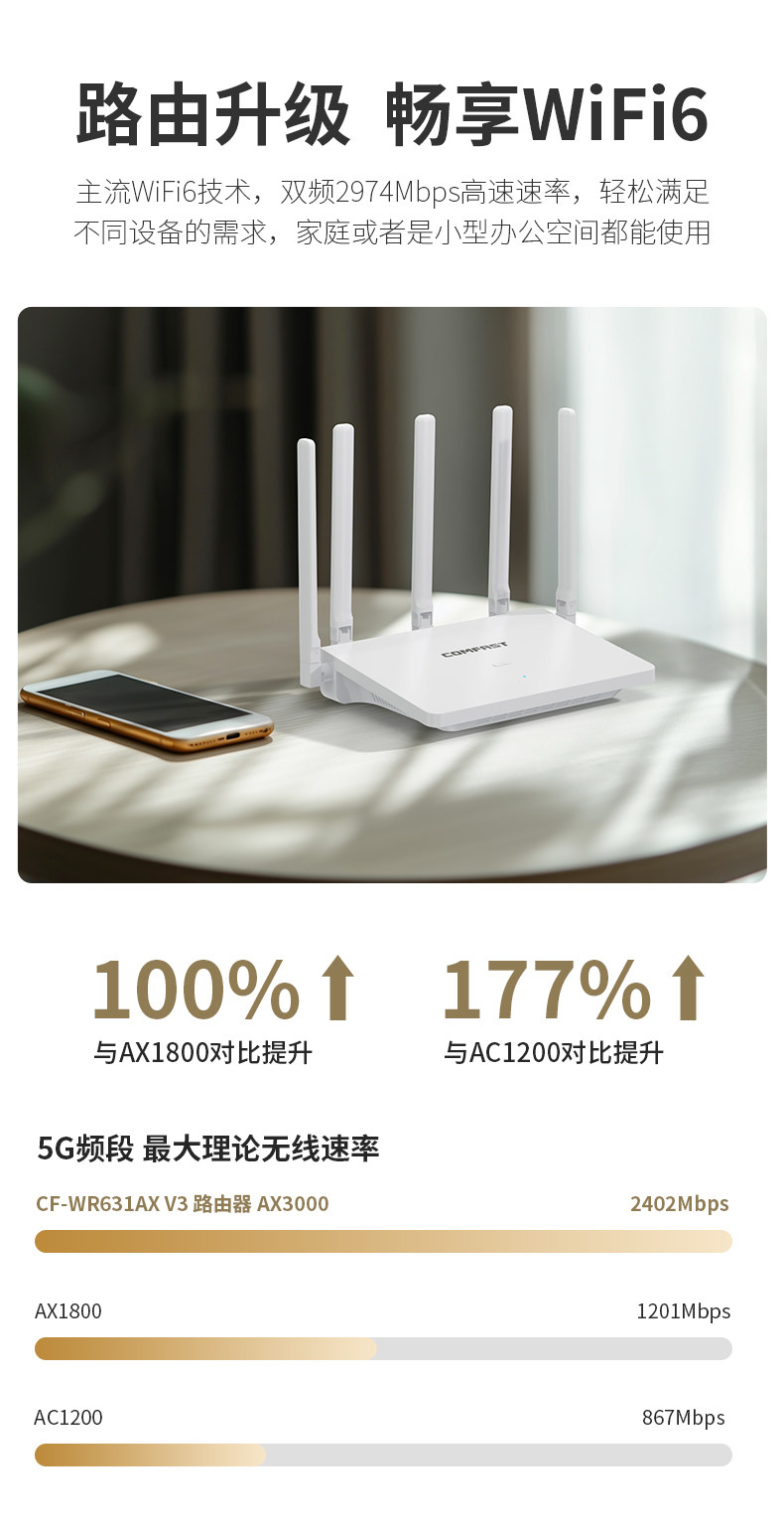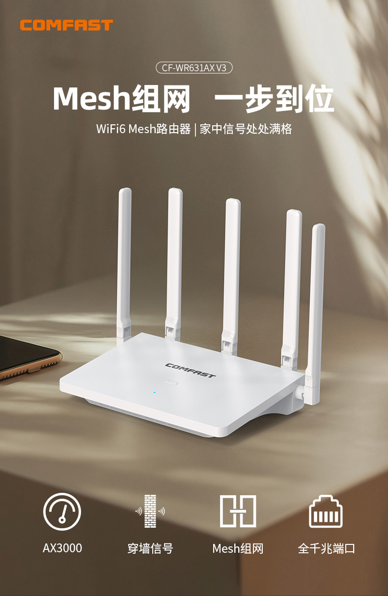 Comfast Router Wifi6 High-Speed 3000m Wireless Router Home Gigabit Wall-Penetrating 5g Gigabit Dual-Band Student Dormitory Home Router Cf-Wr631Ax V2