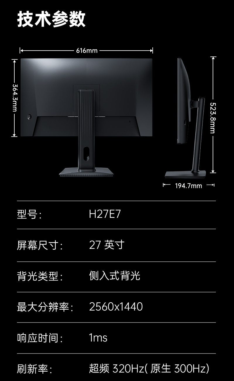 Ktc 27-Inch 2K Fast 320Hz Gaming Display Hardware Low Blue Light Gaming Computer Monitor H27E7
