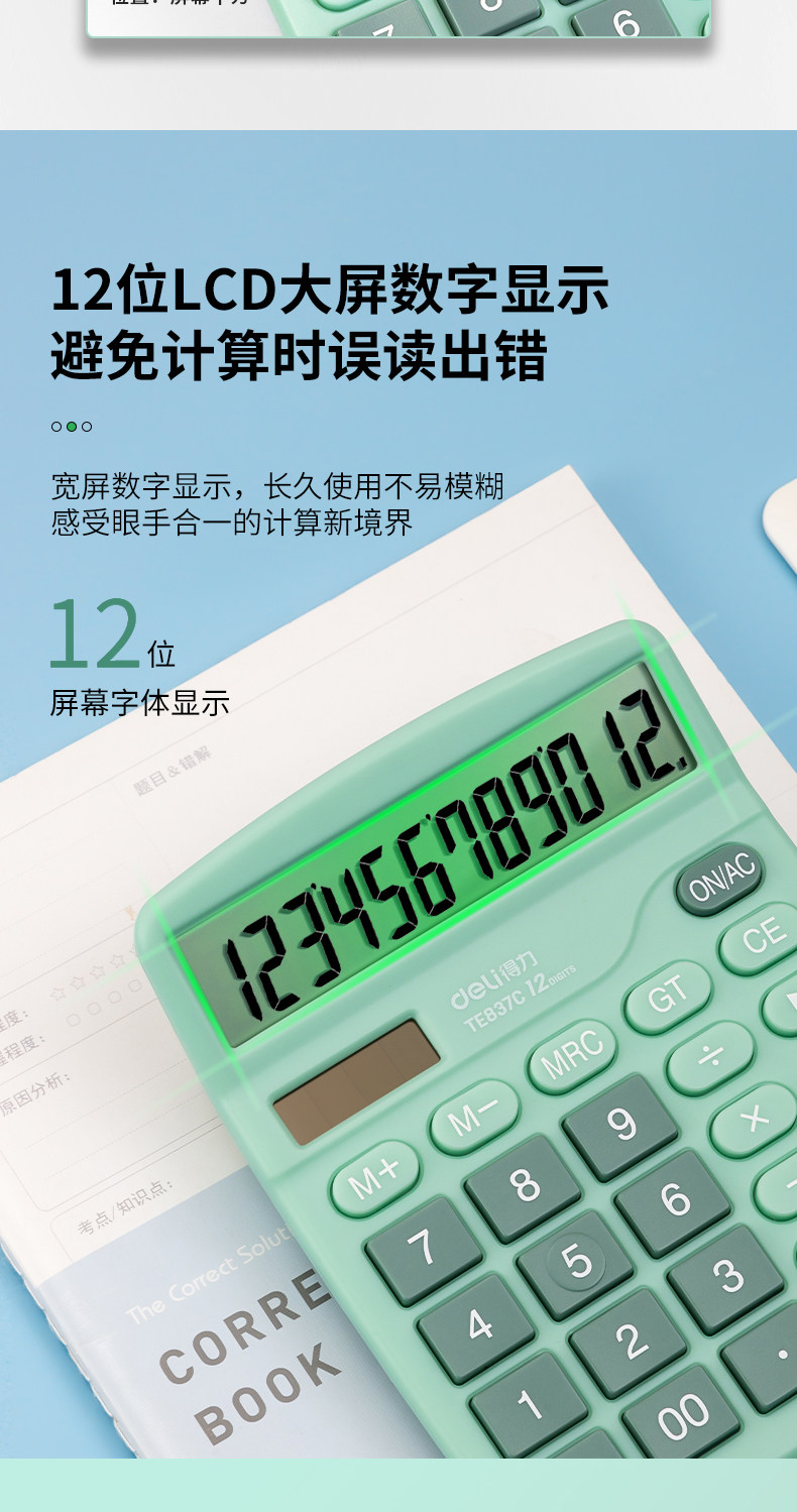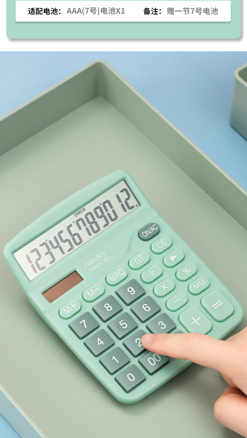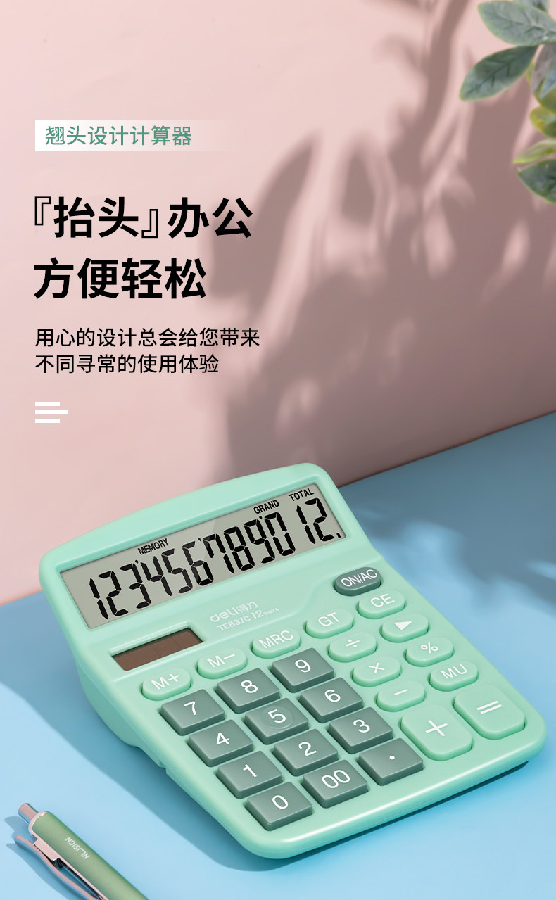 Deli Green Calculator, Fresh and Stylish Design, Large Screen Display, Crystal Buttons, Portable, Fast Calculation, Cute Color Scheme, High Appearance Value, Essential for Accounting, Finance, Office, Student Exams, Multifunctional Calculator