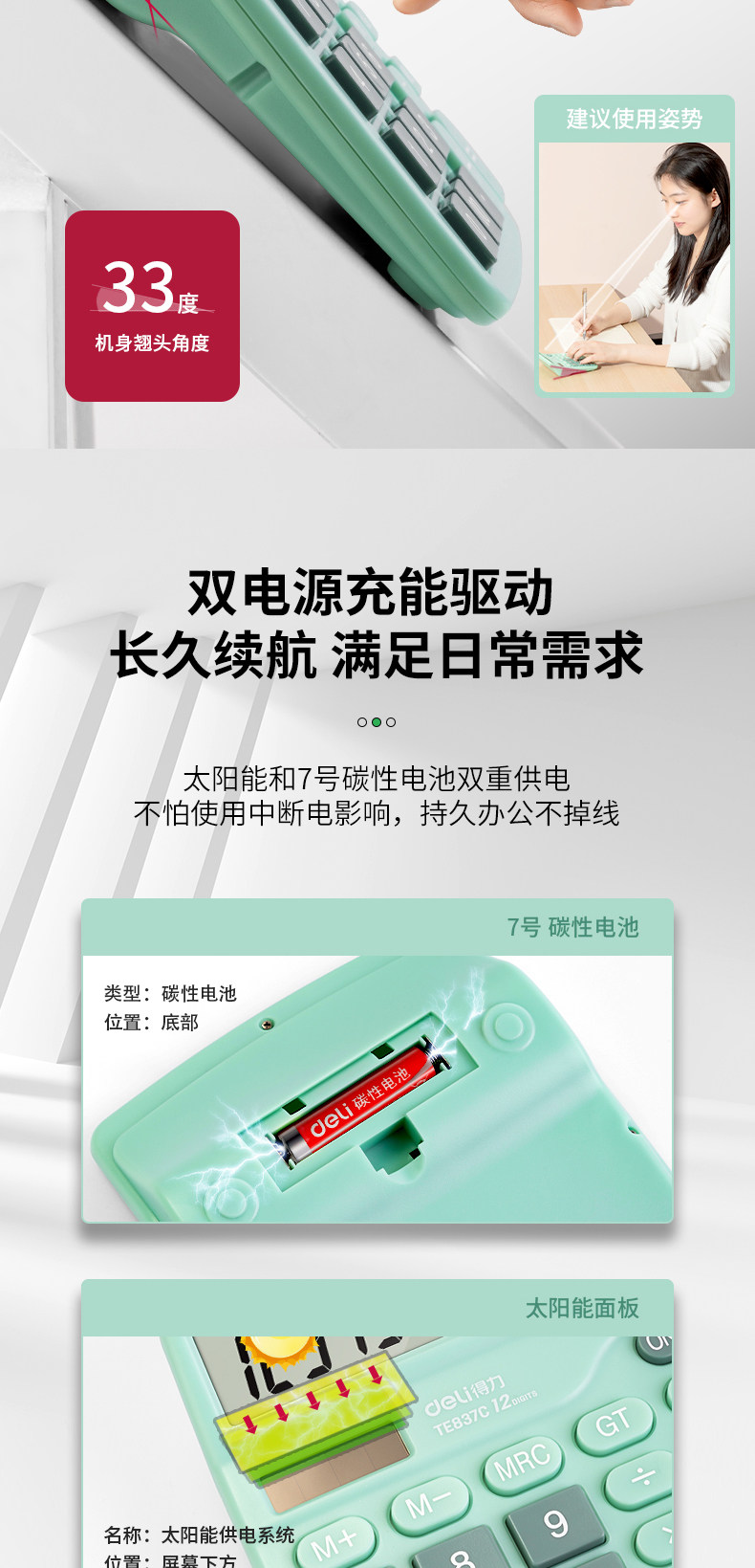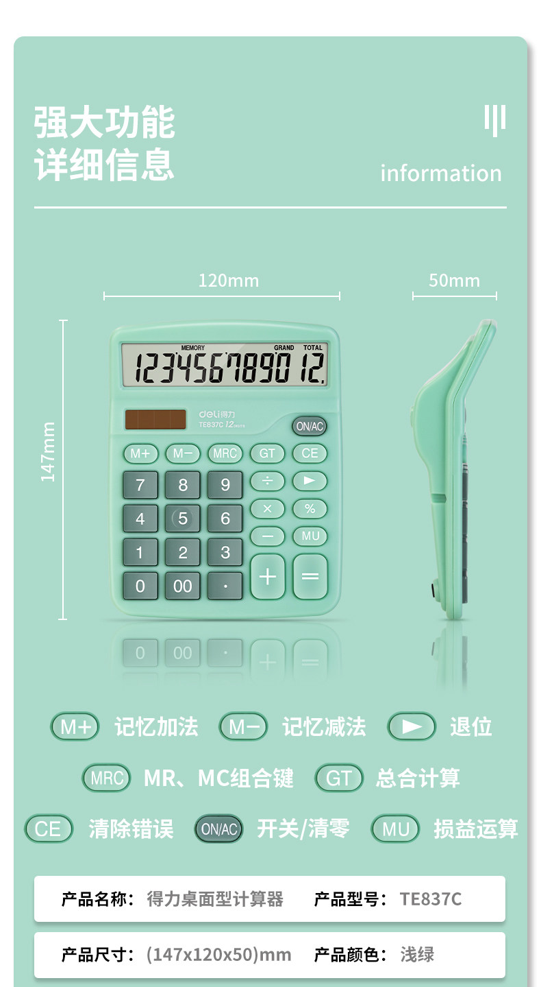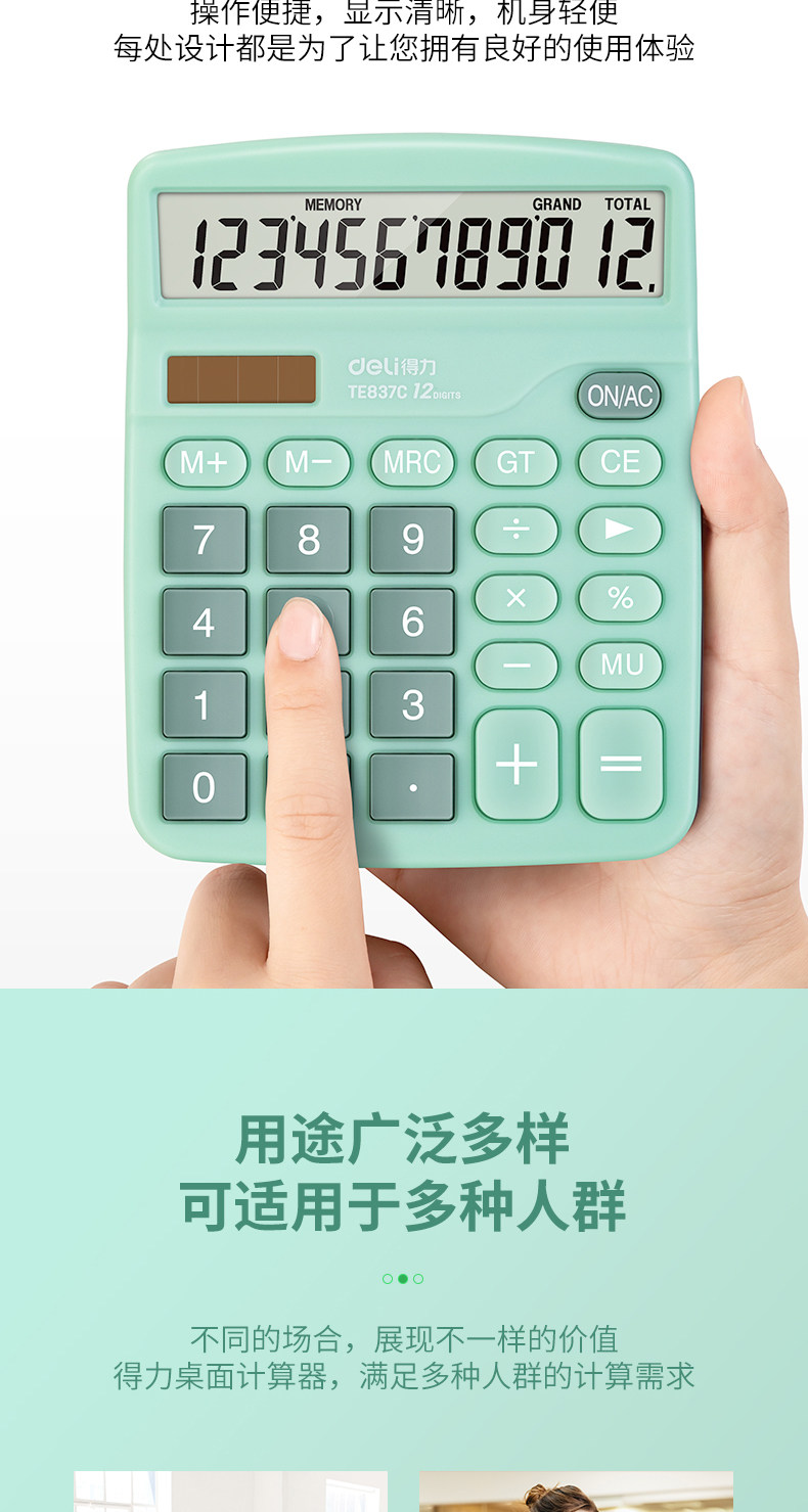 Deli Green Calculator, Fresh and Stylish Design, Large Screen Display, Crystal Buttons, Portable, Fast Calculation, Cute Color Scheme, High Appearance Value, Essential for Accounting, Finance, Office, Student Exams, Multifunctional Calculator